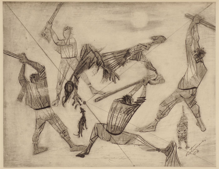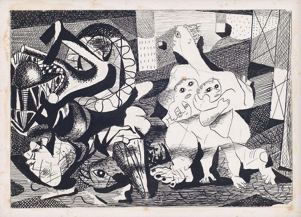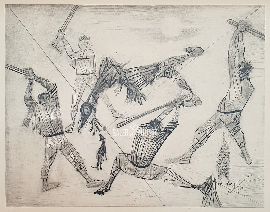 1947-1954: Participante da intelectualidade brasileira numa época de notável mudança na atitude estética e na cultura do País e influenciado pelos problemas da nossa realidade nacional é levado à militância política e como consequência exilou-se no Uruguai. Em 1951 já o vemos de volta ao Brasil figurando com relevância na Iª. Bienal de São Paulo, em uma sala particular. Apareceram, porém os primeiros problemas de saúde; o mais grave em 1954 caracterizado como uma grave intoxicação pelo chumbo presente nas tintas que usava.