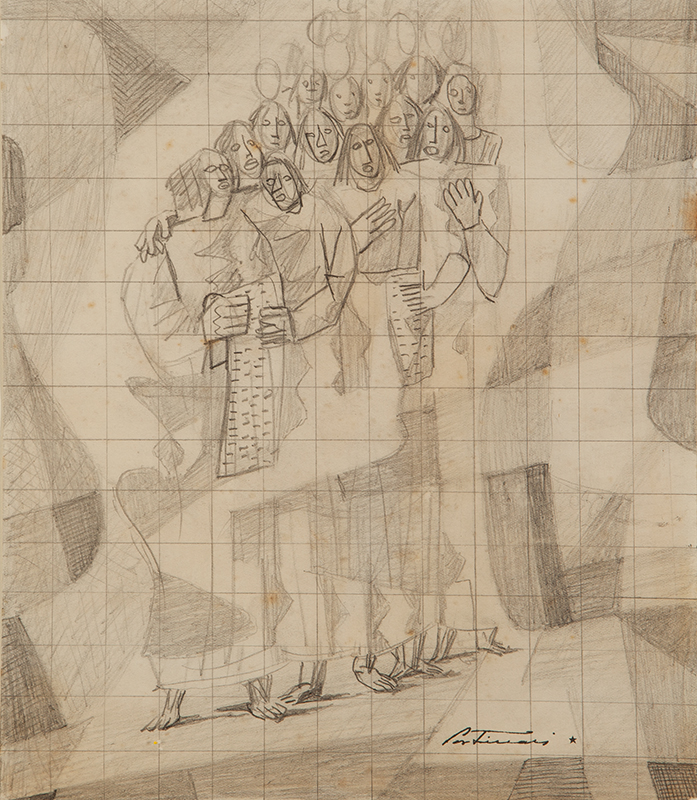 1937-1945: Vivíamos um período que insistentemente Gustavo Capanema – Ministro da Educação e Saúde Pública – queria dar visibilidade às propostas “modernas” que circulavam nos ambientes intelectuais da capital federal durante o Estado Novo, materializada através da construção de um “moderno” edifício para o MEC – Lúcio Costa, Oscar Niemeyer, et allis – e importante na vida de Portinari que compôs afrescos mostrando nosso “Ciclo Econômico” além dos cartões para os azulejos que revestem as paredes externas do edifício, que foram fabricados pela Osirarte, em São Paulo (1943, ca.). Em 1944, um acontecimento maior com a realização mural e azulejos sobre a vida de São Francisco para a Capela do Complexo da Pampulha em Belo Horizonte – leia-se Oscar Niemeyer – que completaria com a “Via Sacra” em 1945[6].
