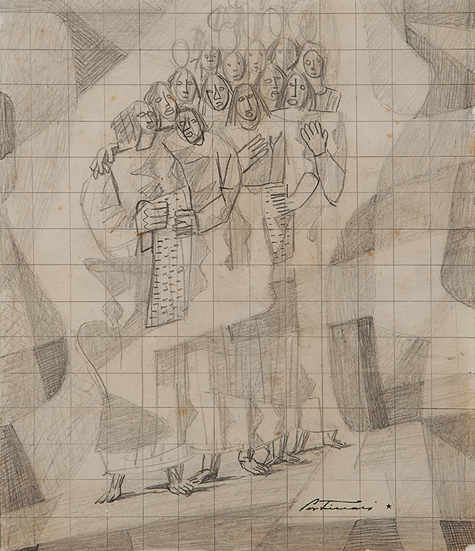 Cândido Portinari - Galo - 1970 - Grafite sobre cartão - Assinado canto inferior direito - 24 x 18 cm. Coleção Múcio Bandeira de Mello.