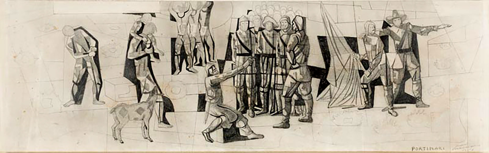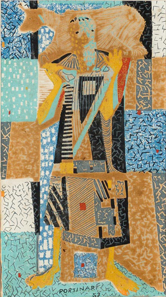 1937-1945: Vivíamos um período que insistentemente Gustavo Capanema – Ministro da Educação e Saúde Pública – queria dar visibilidade às propostas “modernas” que circulavam nos ambientes intelectuais da capital federal durante o Estado Novo, materializada através da construção de um “moderno” edifício para o MEC – Lúcio Costa, Oscar Niemeyer, et allis – e importante na vida de Portinari que compôs afrescos mostrando nosso “Ciclo Econômico” além dos cartões para os azulejos que revestem as paredes externas do edifício, que foram fabricados pela Osirarte, em São Paulo (1943, ca.). Em 1944, um acontecimento maior com a realização mural e azulejos sobre a vida de São Francisco para a Capela do Complexo da Pampulha em Belo Horizonte – leia-se Oscar Niemeyer – que completaria com a “Via Sacra” em 1945[6].