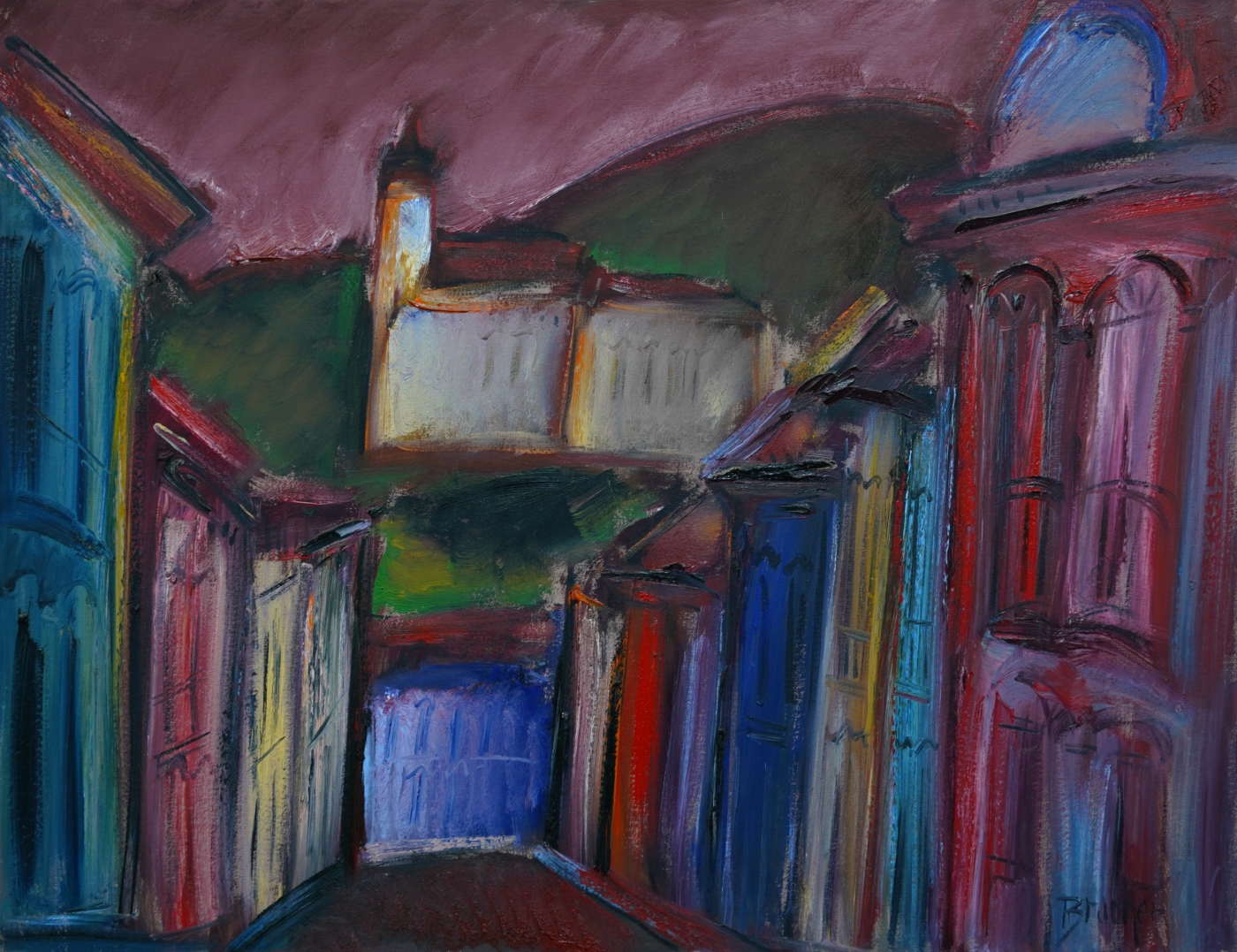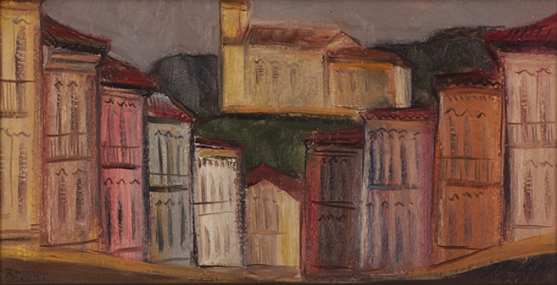 Carlos Bracher - Igreja do Senhor Bom Jesus do Matosinhos e Colégio Arquidiocesano - 54 x 73 cm - Óleo sobre tela - Assinatura verso e Data 1979