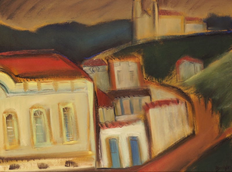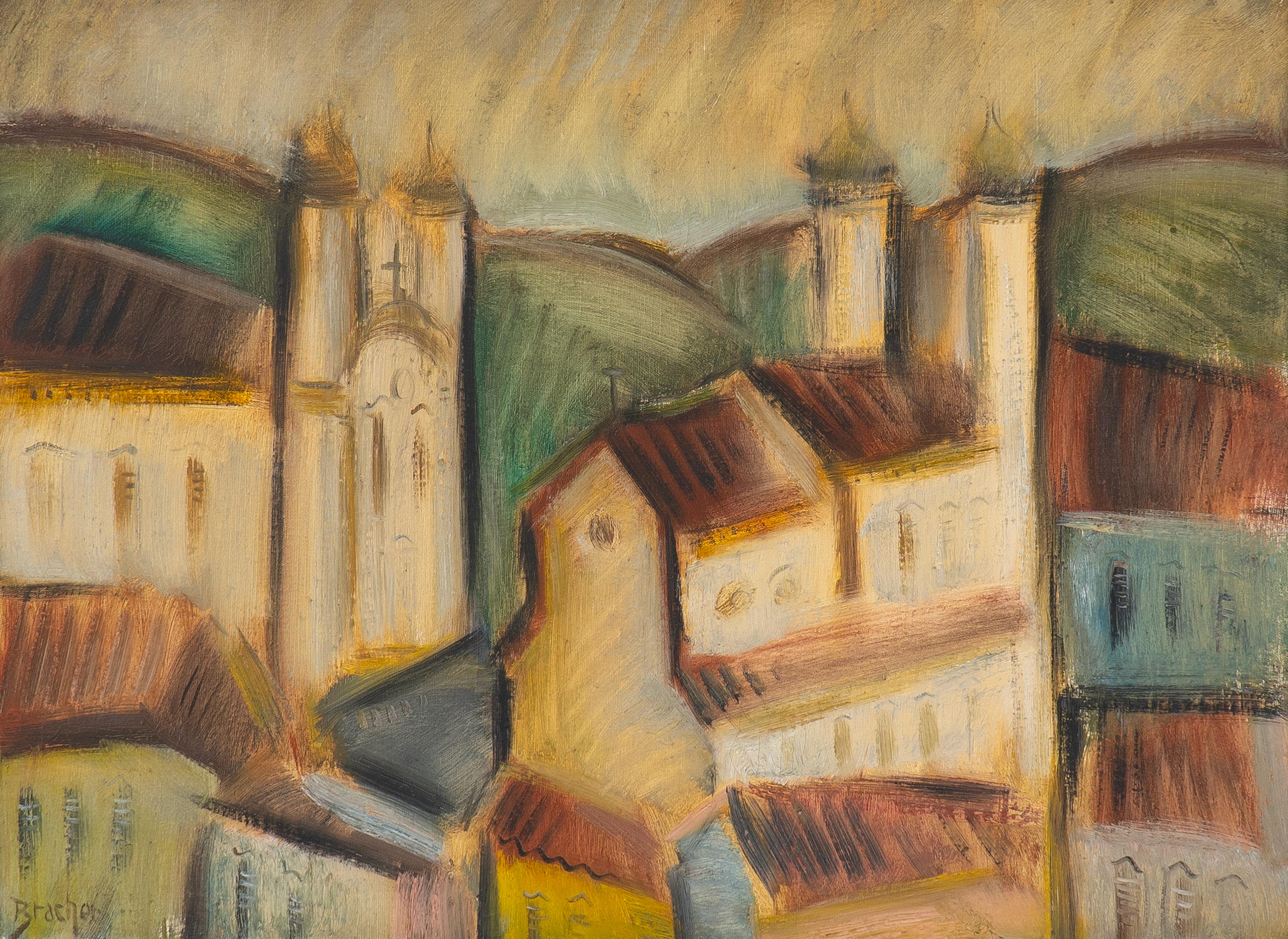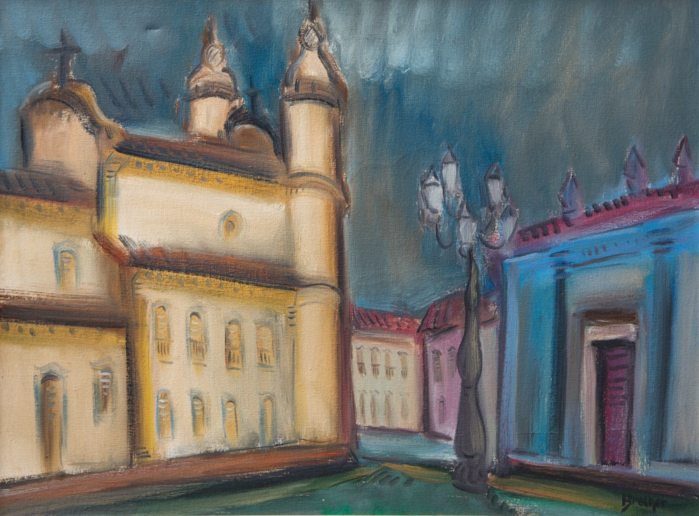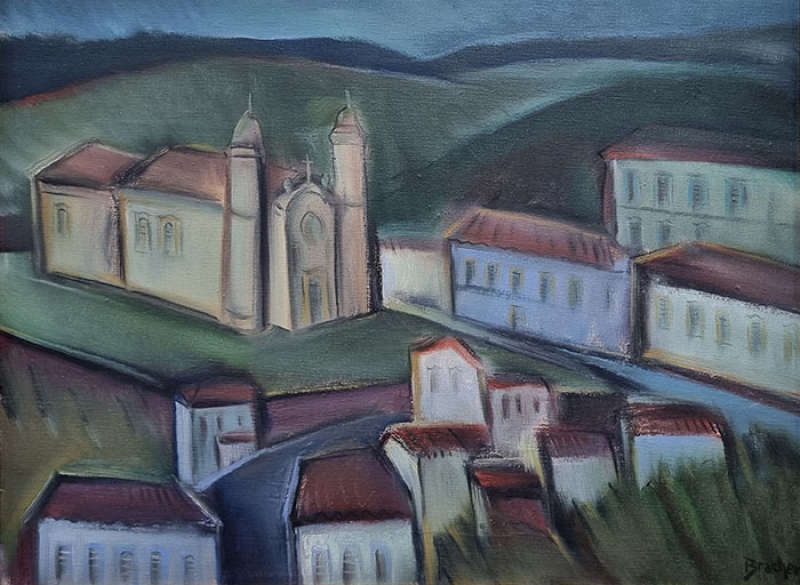 Carlos Bracher - Igreja do Senhor Bom Jesus do Matosinhos e Colégio Arquidiocesano - 54 x 73 cm - Óleo sobre tela - Assinatura verso e Data 1979