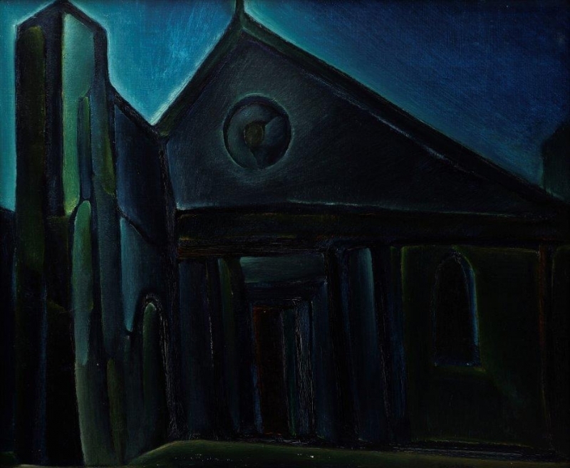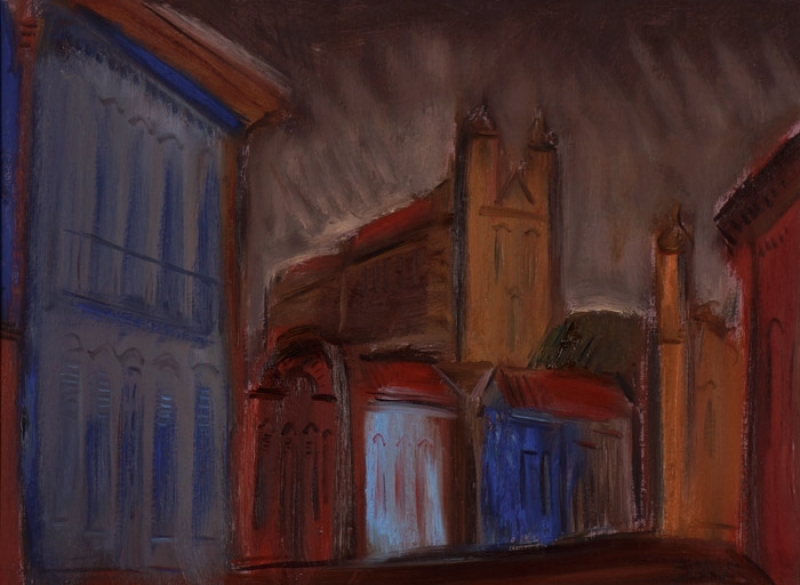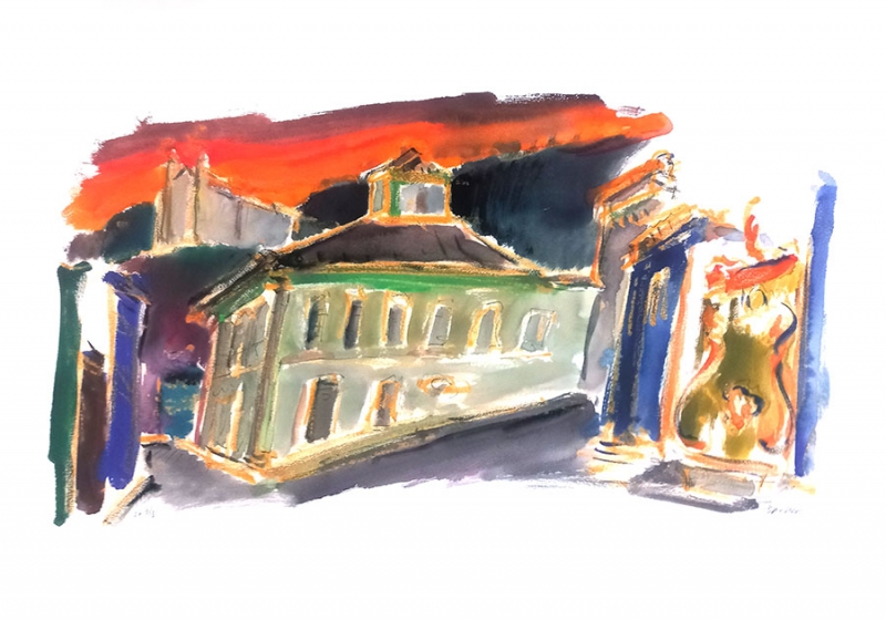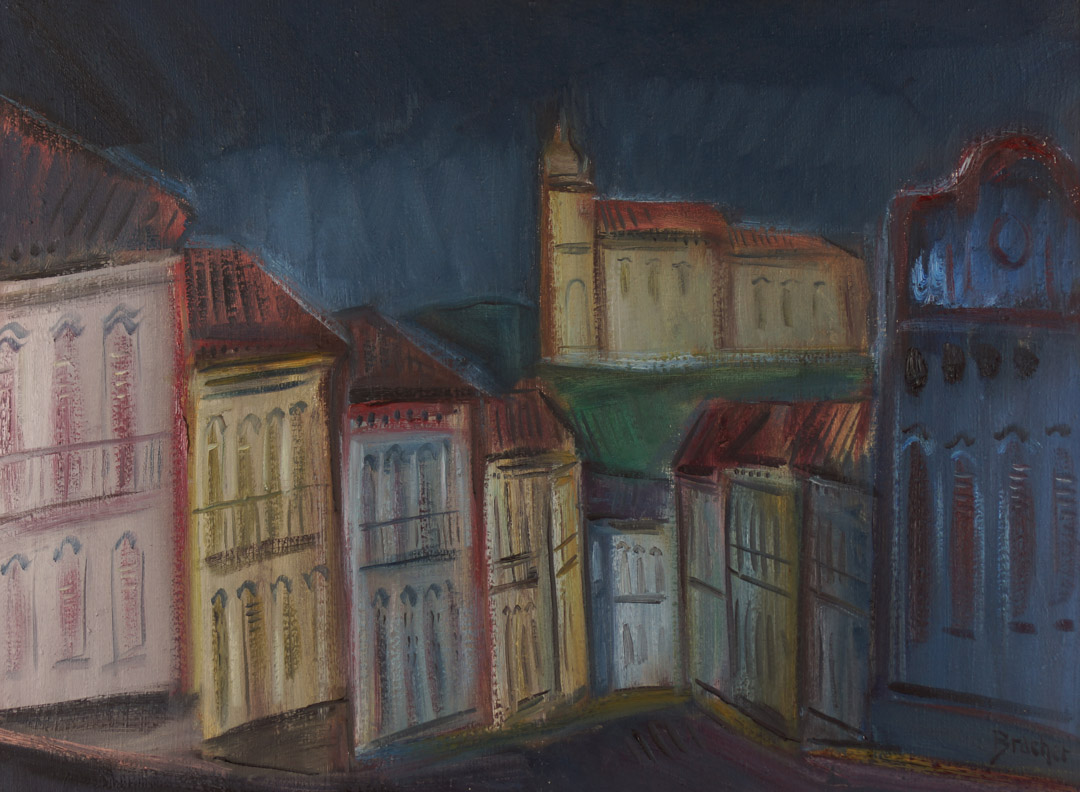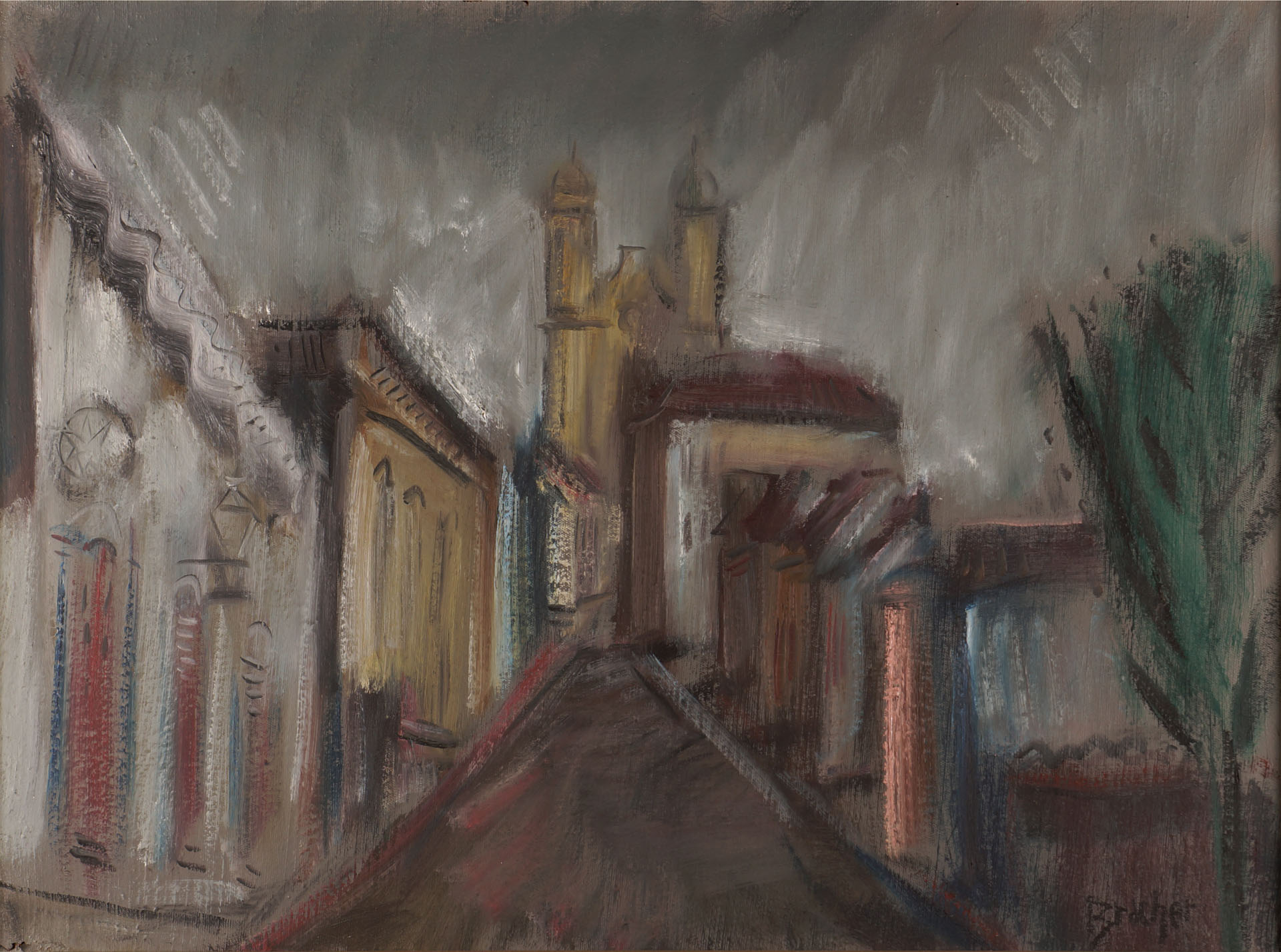 Carlos Bracher - Igreja do Senhor Bom Jesus do Matosinhos e Colégio Arquidiocesano - 54 x 73 cm - Óleo sobre tela - Assinatura verso e Data 1979