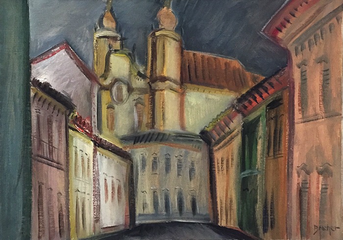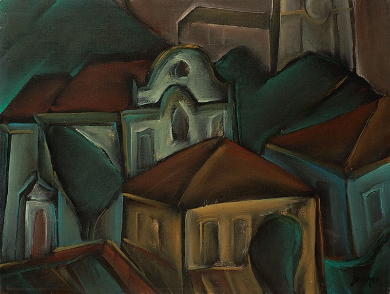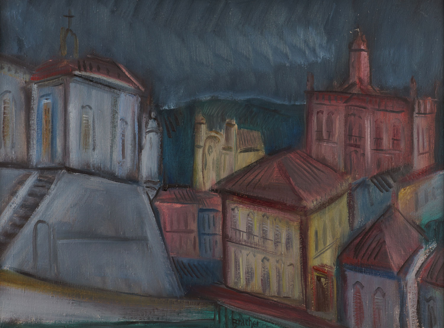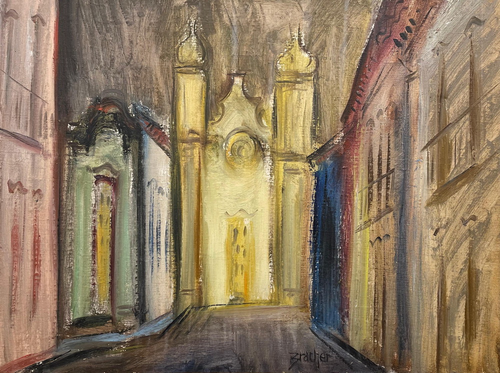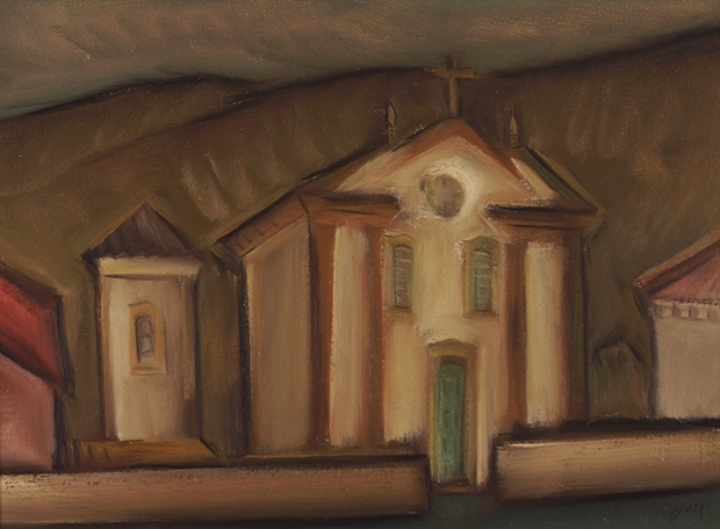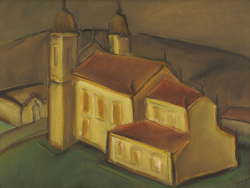 Carlos Bracher - Igreja do Senhor Bom Jesus do Matosinhos e Colégio Arquidiocesano - 54 x 73 cm - Óleo sobre tela - Assinatura verso e Data 1979