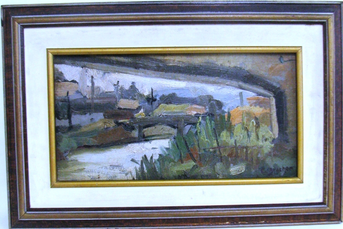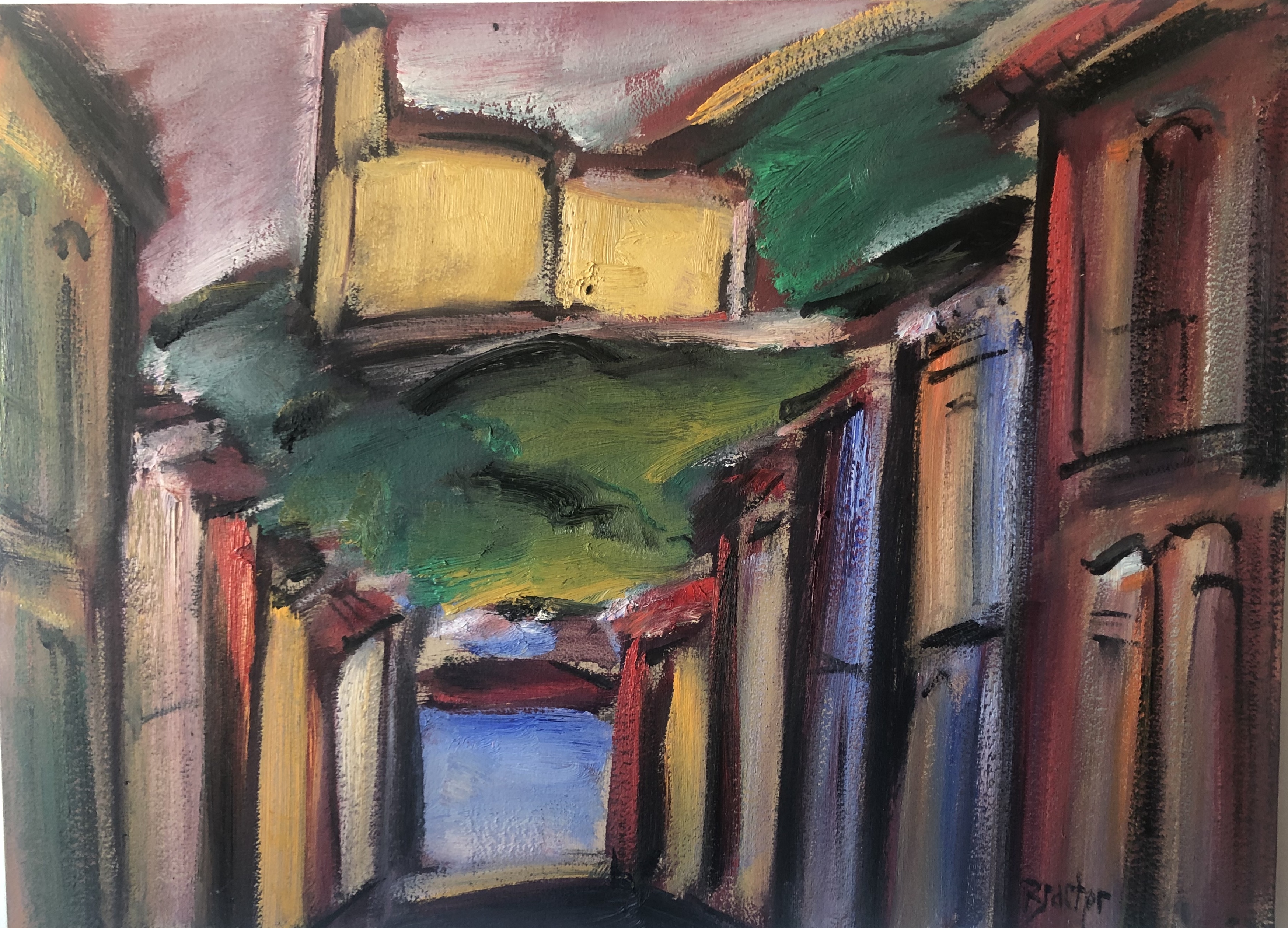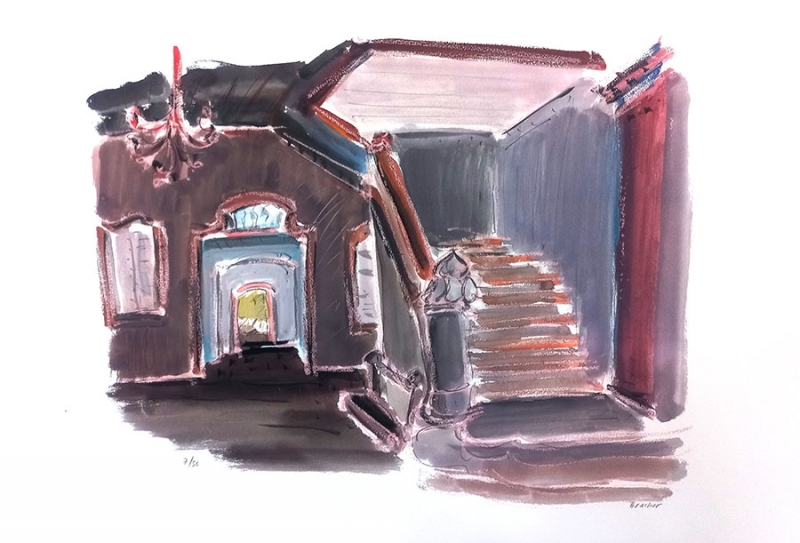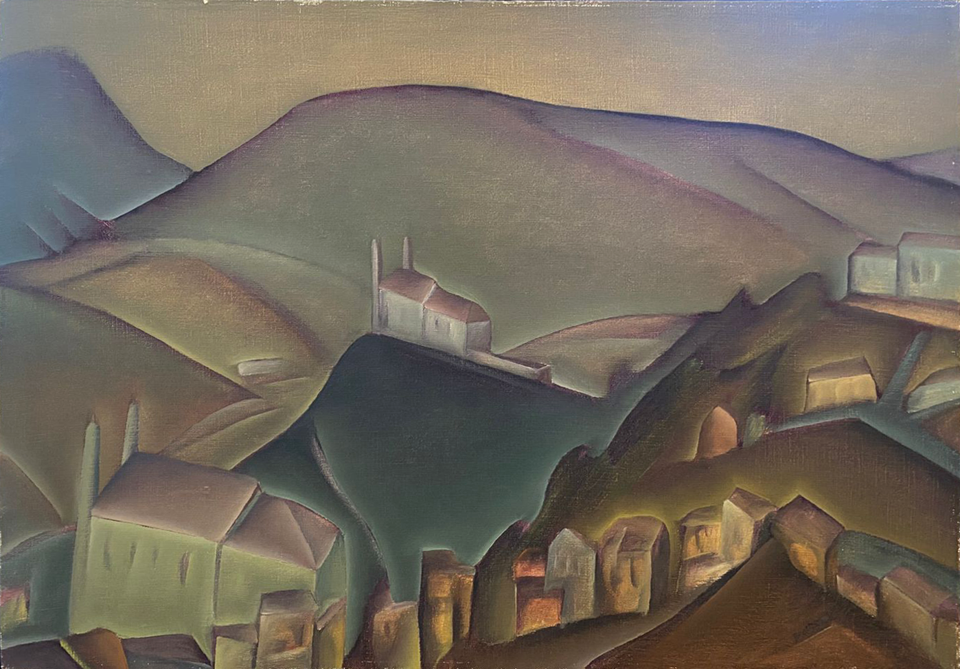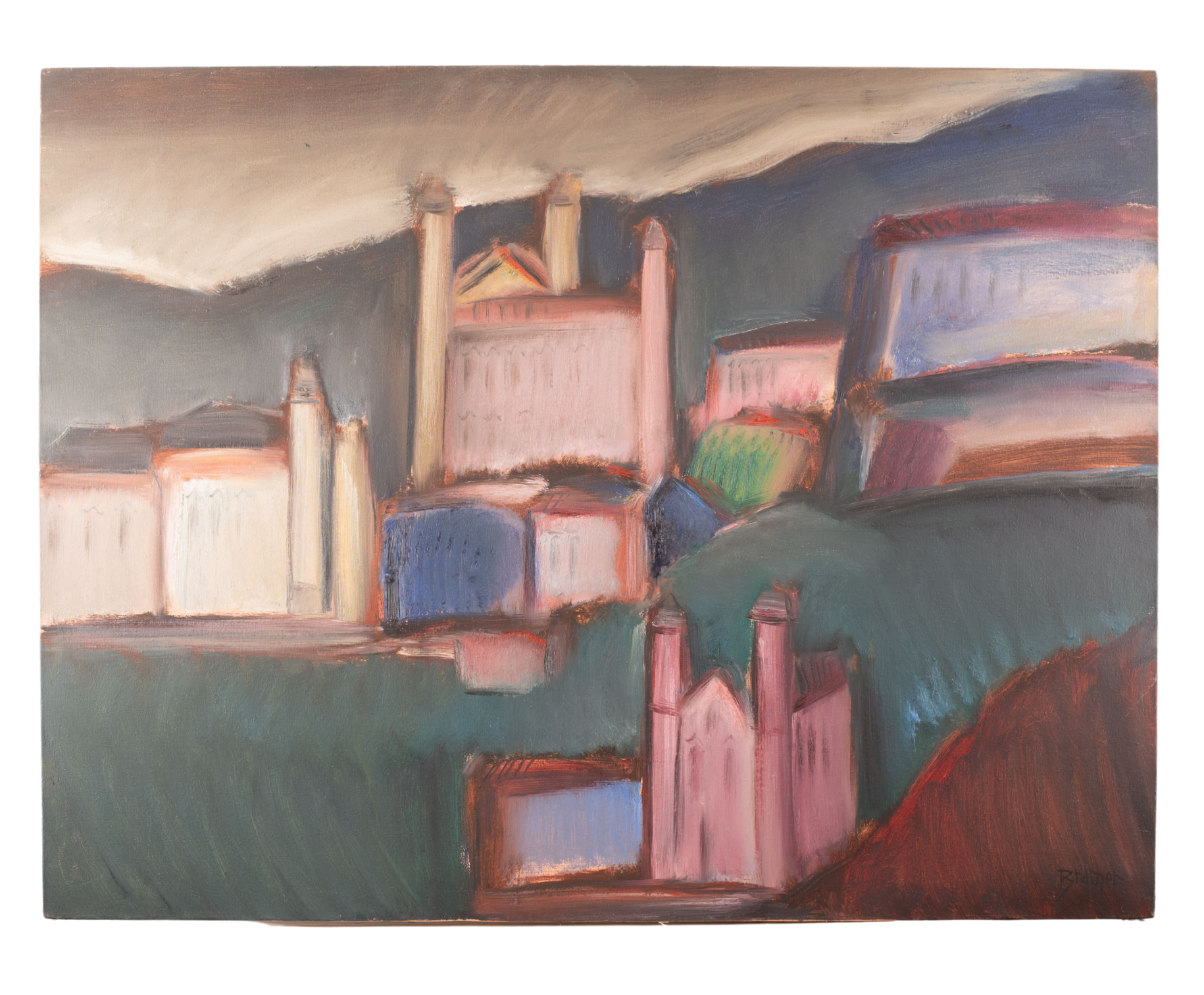 Carlos Bracher - Igreja do Senhor Bom Jesus do Matosinhos e Colégio Arquidiocesano - 54 x 73 cm - Óleo sobre tela - Assinatura verso e Data 1979