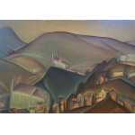 Carlos Bracher - Ladeira, casas e igrejas. Óleo sobre tela, 54x73 cm, 1982, A.C.I.E. e V. Com moldura