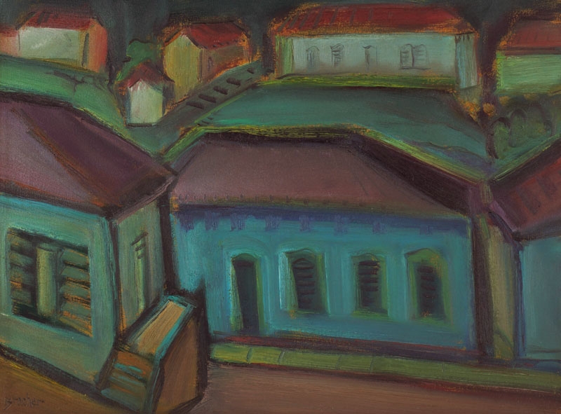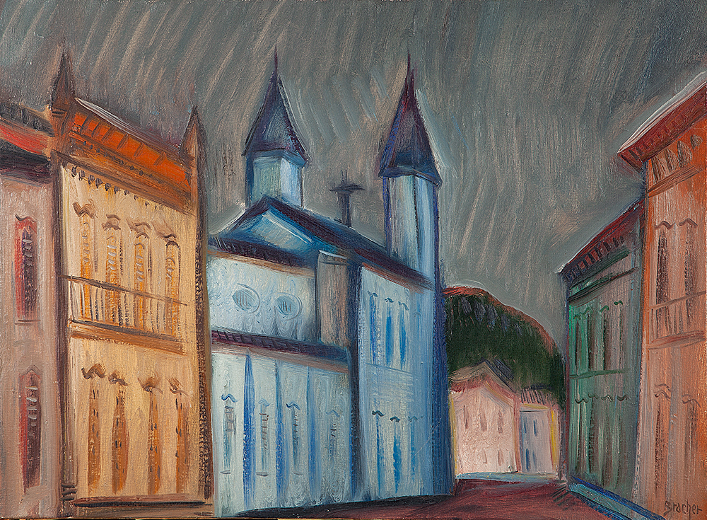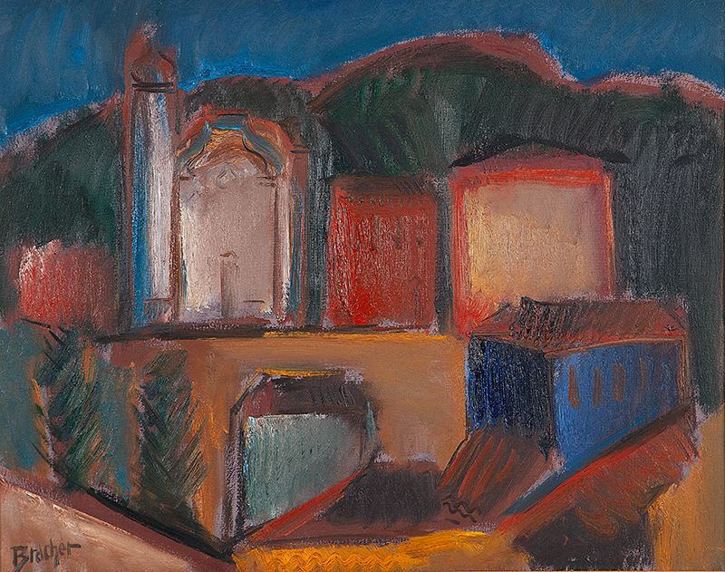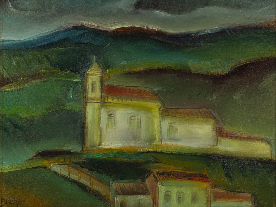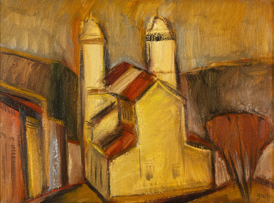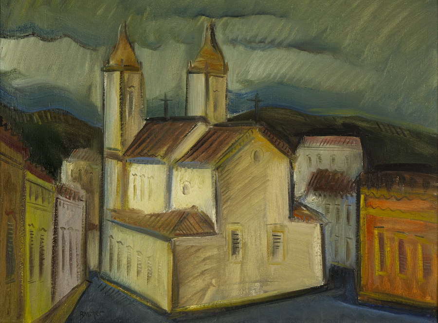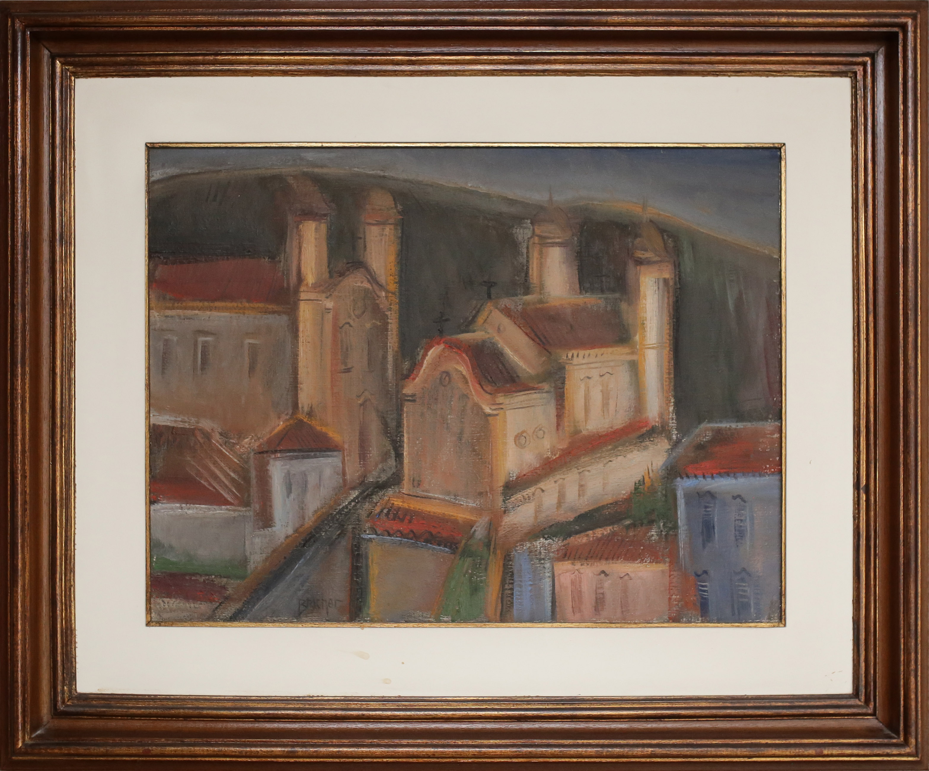 Carlos Bracher - Igreja do Senhor Bom Jesus do Matosinhos e Colégio Arquidiocesano - 54 x 73 cm - Óleo sobre tela - Assinatura verso e Data 1979