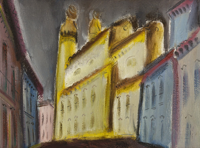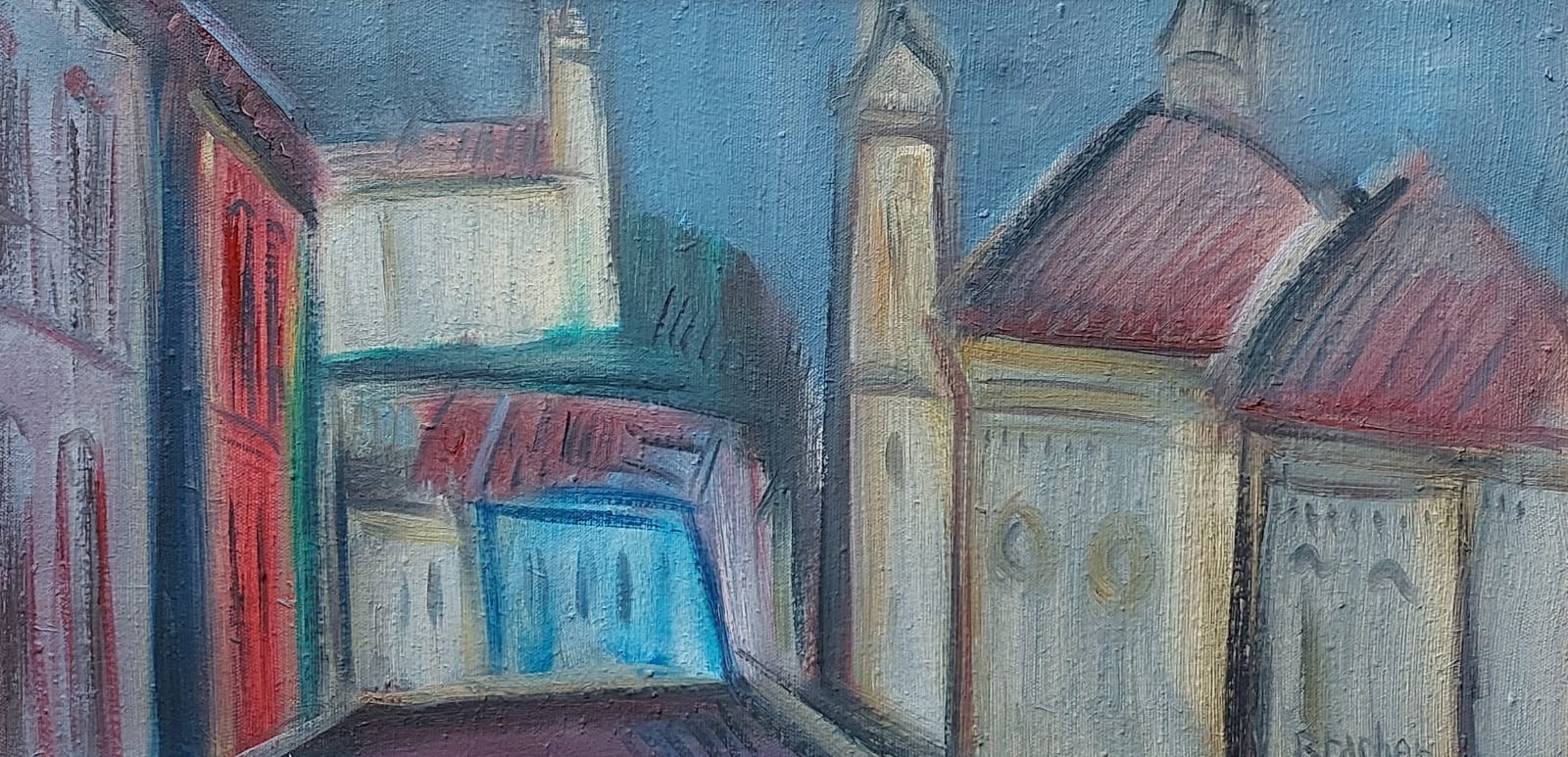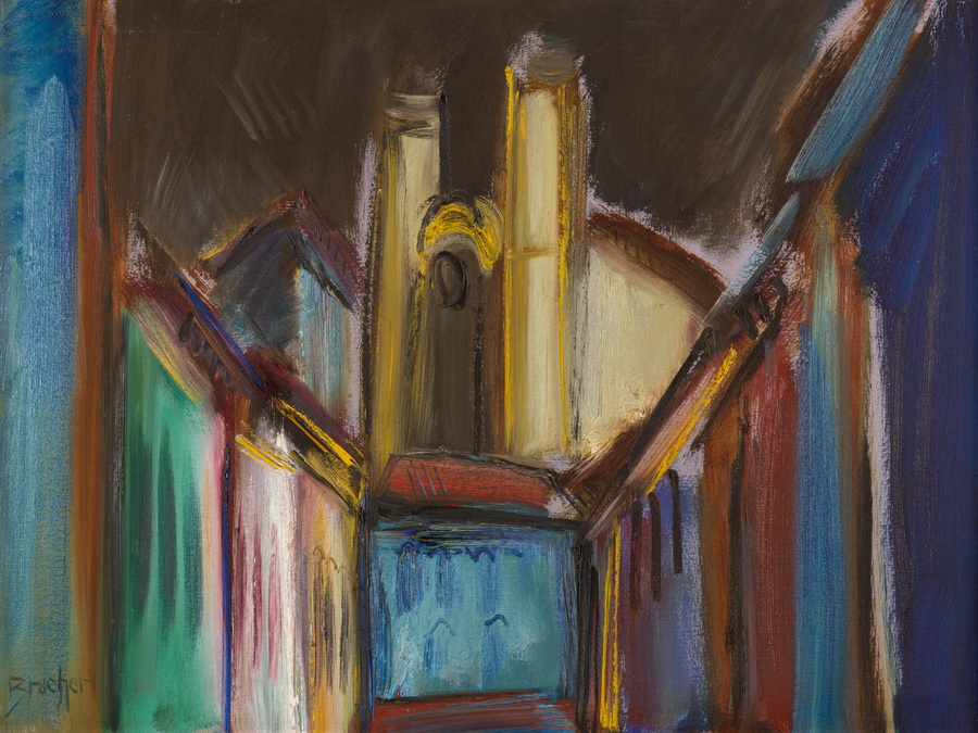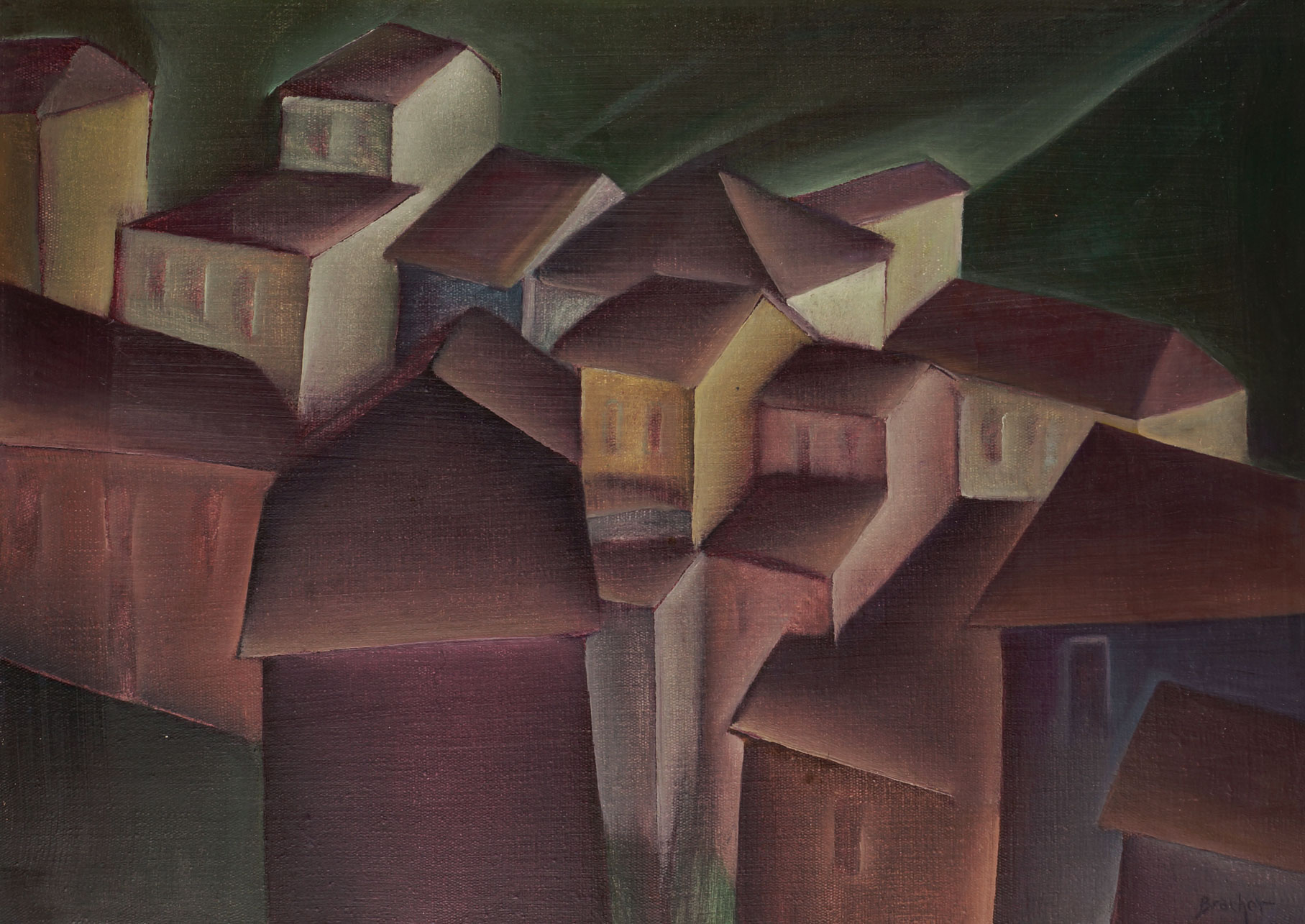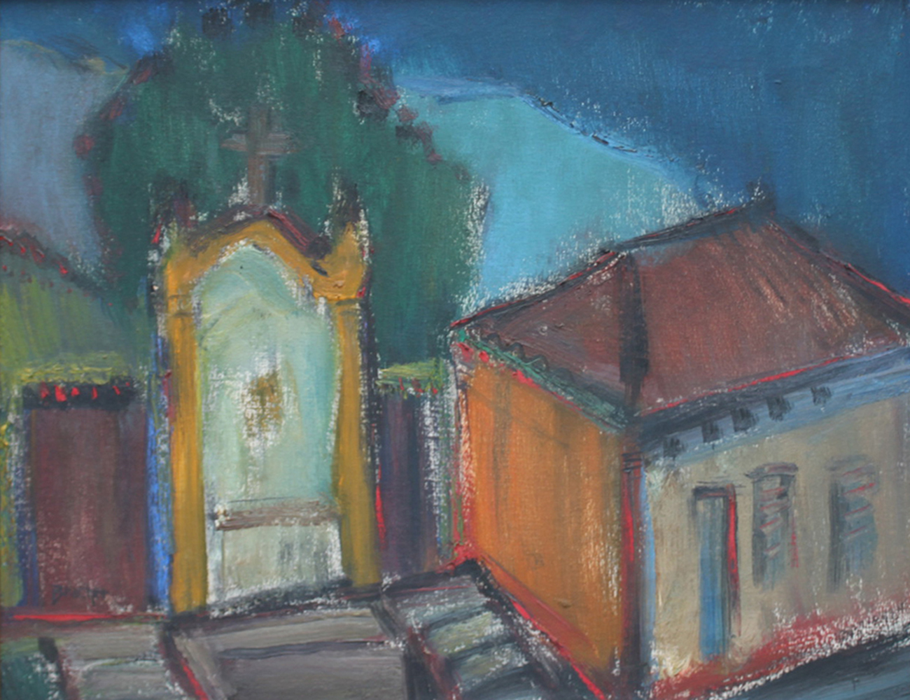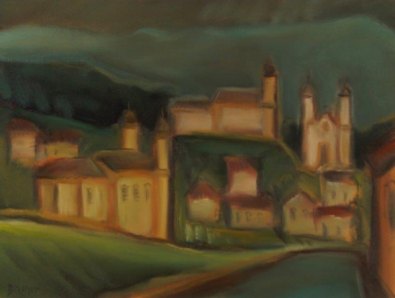 Carlos Bracher - Igreja do Senhor Bom Jesus do Matosinhos e Colégio Arquidiocesano - 54 x 73 cm - Óleo sobre tela - Assinatura verso e Data 1979