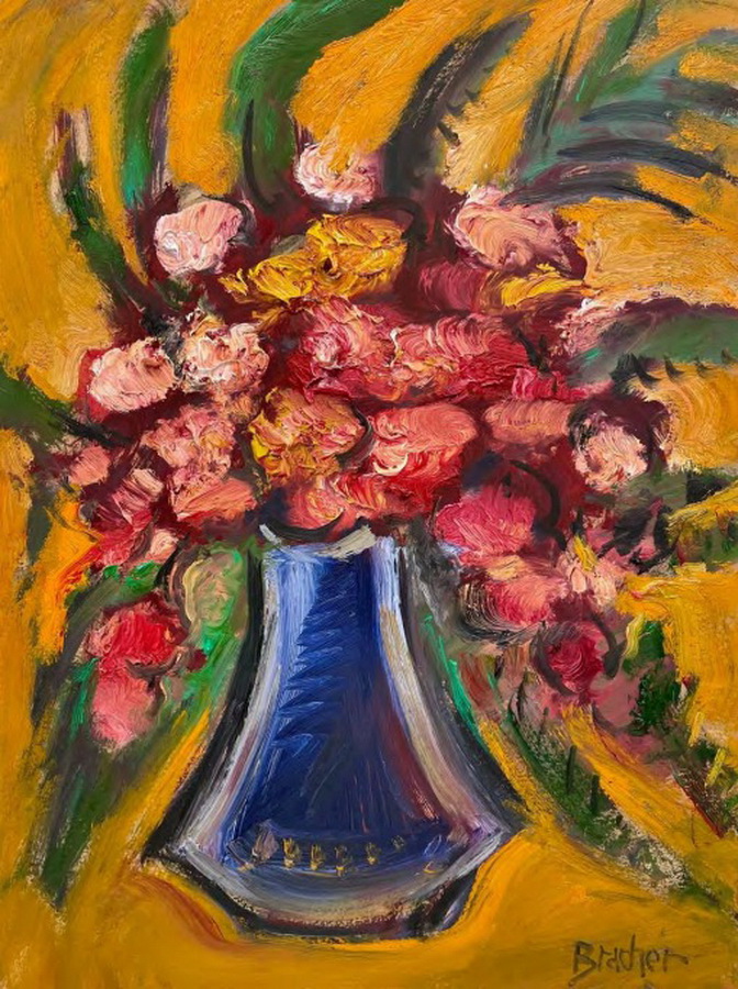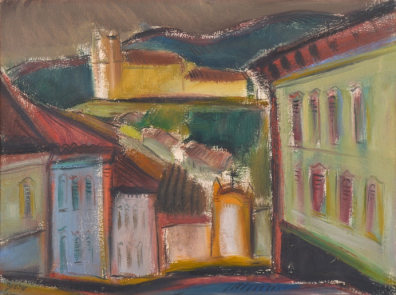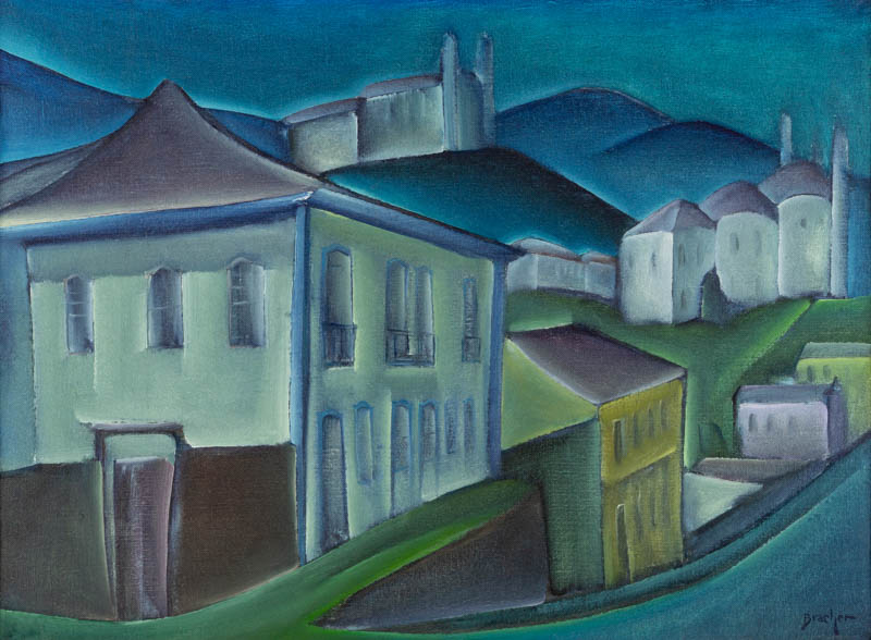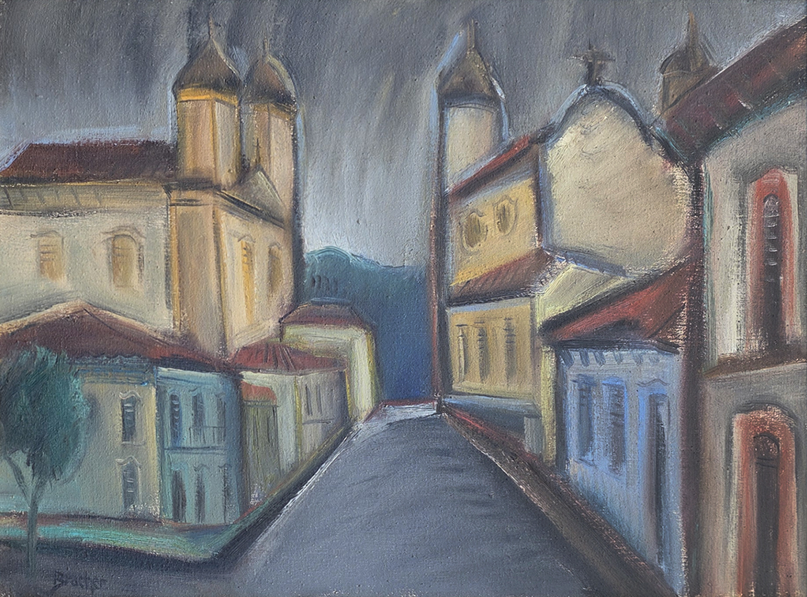 Carlos Bernardo Bracher (Juiz de Fora, Minas Gerais, 1940). Pintor, desenhista, escultor, gravador. Frequenta a Sociedade de Belas Artes Antônio Parreiras, em Juiz de Fora, Minas Gerais, por volta de 1959. Entre 1965 e 1966, em Belo Horizonte, é aluno de Fayga Ostrower (1920-2001) na Universidade Federal de Minas Gerais (UFMG). Estuda técnicas de mural e de mosaico com Inimá de Paula (1918-1999), na Escola Municipal de Belas Artes. Em 1967, recebe o prêmio de viagem ao exterior do Salão Nacional de Belas Artes (SNBA) do Rio de Janeiro. Vai para a Europa, fixa-se principalmente em Paris e Lisboa, estuda pintura e expõe em galerias locais. Retorna ao Brasil em meados de 1970 e reside em Ouro Preto, Minas Gerais. Em 1989, é realizada a exposição retrospectiva de seus 30 anos de trabalho, intitulada Pintura Sempre, em São Paulo, Curitiba, Rio de Janeiro, Brasília e Belo Horizonte. No ano seguinte, pinta uma série de quadros em homenagem ao centenário da morte do pintor holandês Vincent van Gogh (1853 - 1890), que é exposta em várias galerias e museus no Brasil e no exterior. São editados vários livros sobre sua obra, entre eles, Bracher, do crítico Olívio Tavares de Araújo, pela editora Métron, em 1989, e Bracher: Do Ouro ao Aço, pela editora Salamandra, em 1992.