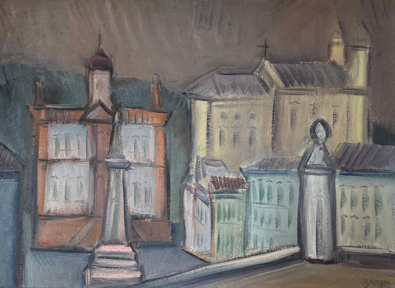 Carlos Bracher - Rua direita - Óleo sobre tela - 60 alt x 81 larg - acid e verso