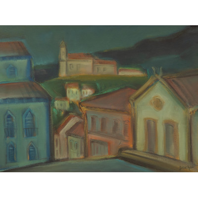 Carlos Bracher - Igreja do Senhor Bom Jesus do Matosinhos e Colégio Arquidiocesano - 54 x 73 cm - Óleo sobre tela - Assinatura verso e Data 1979