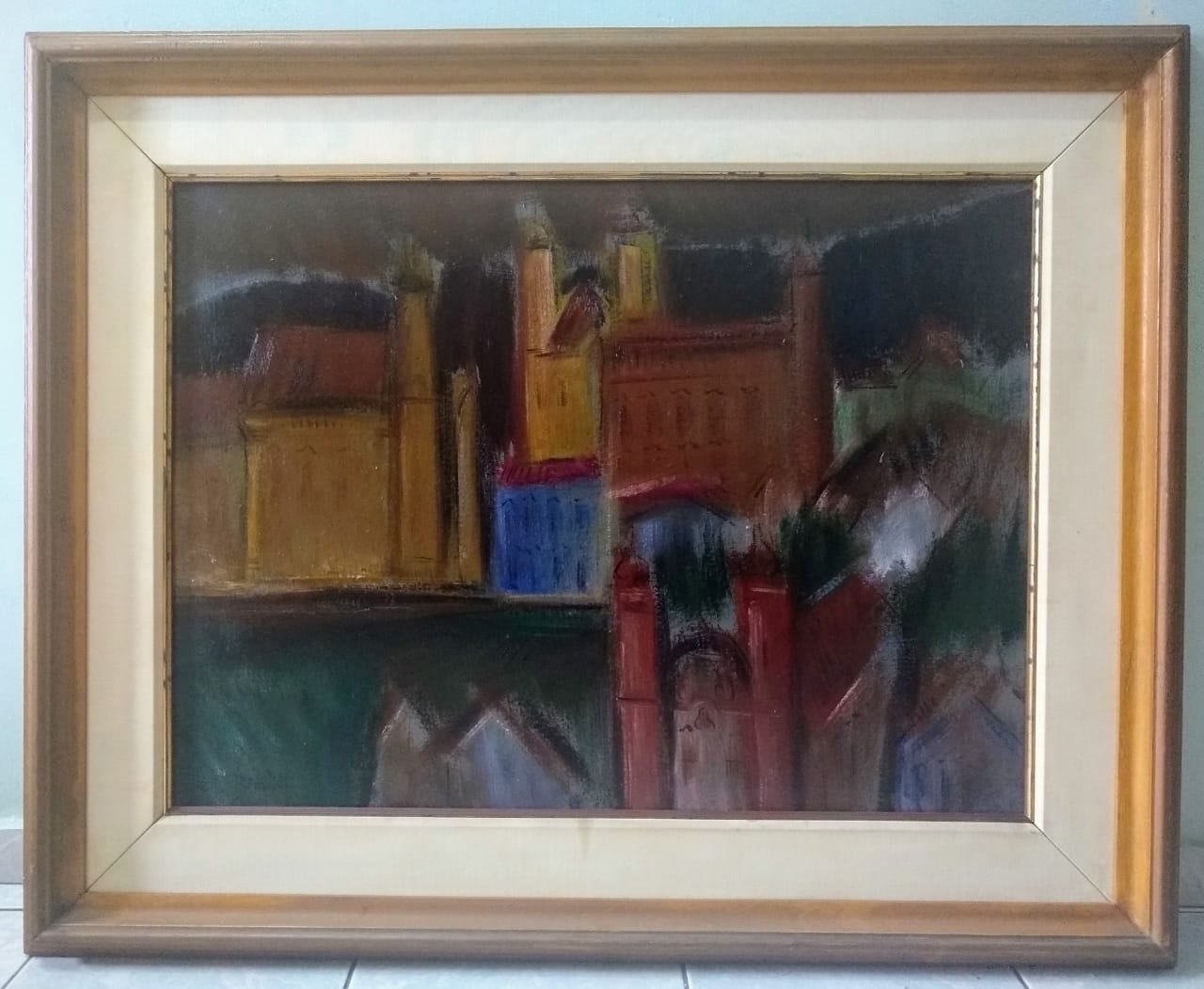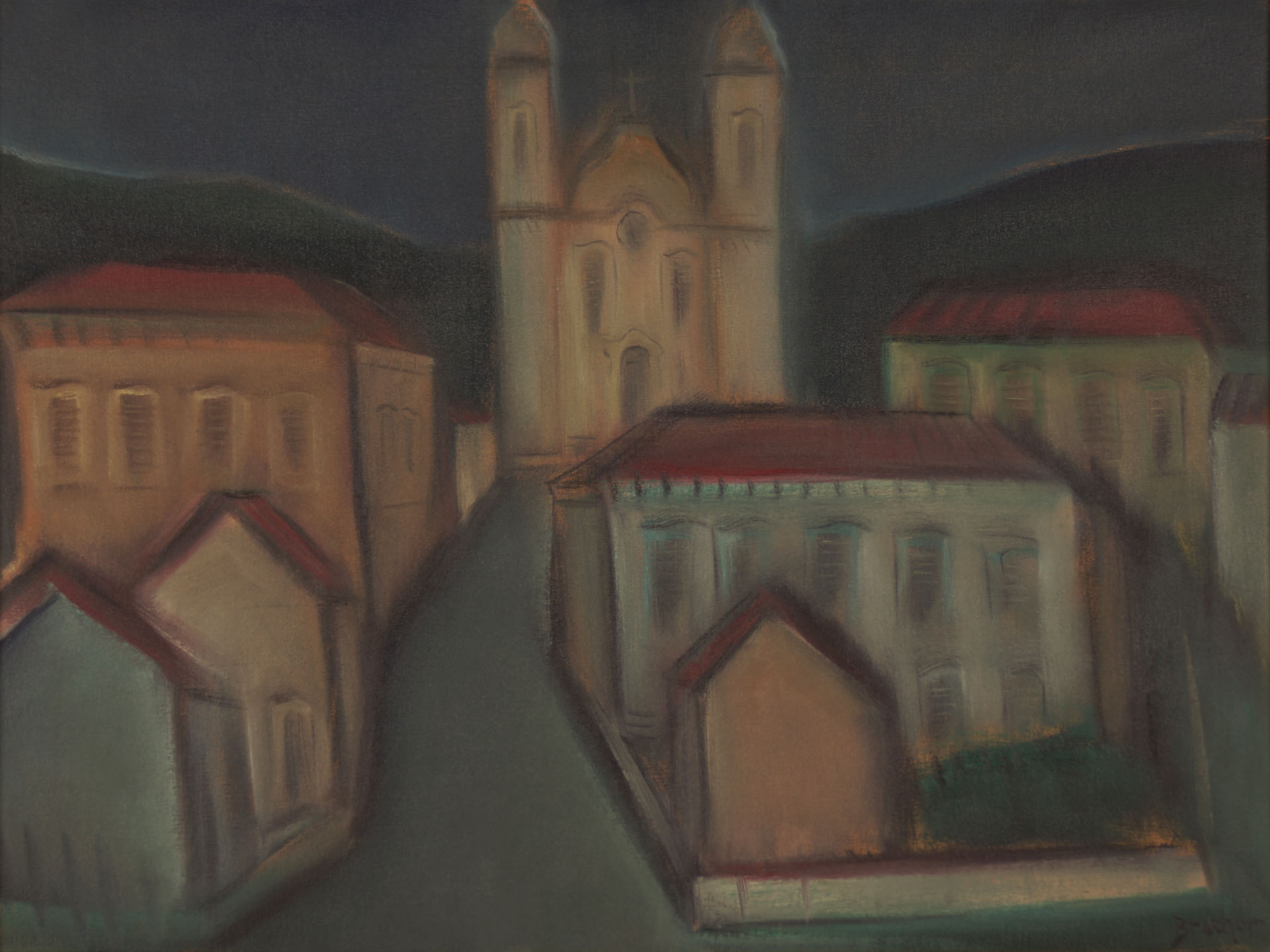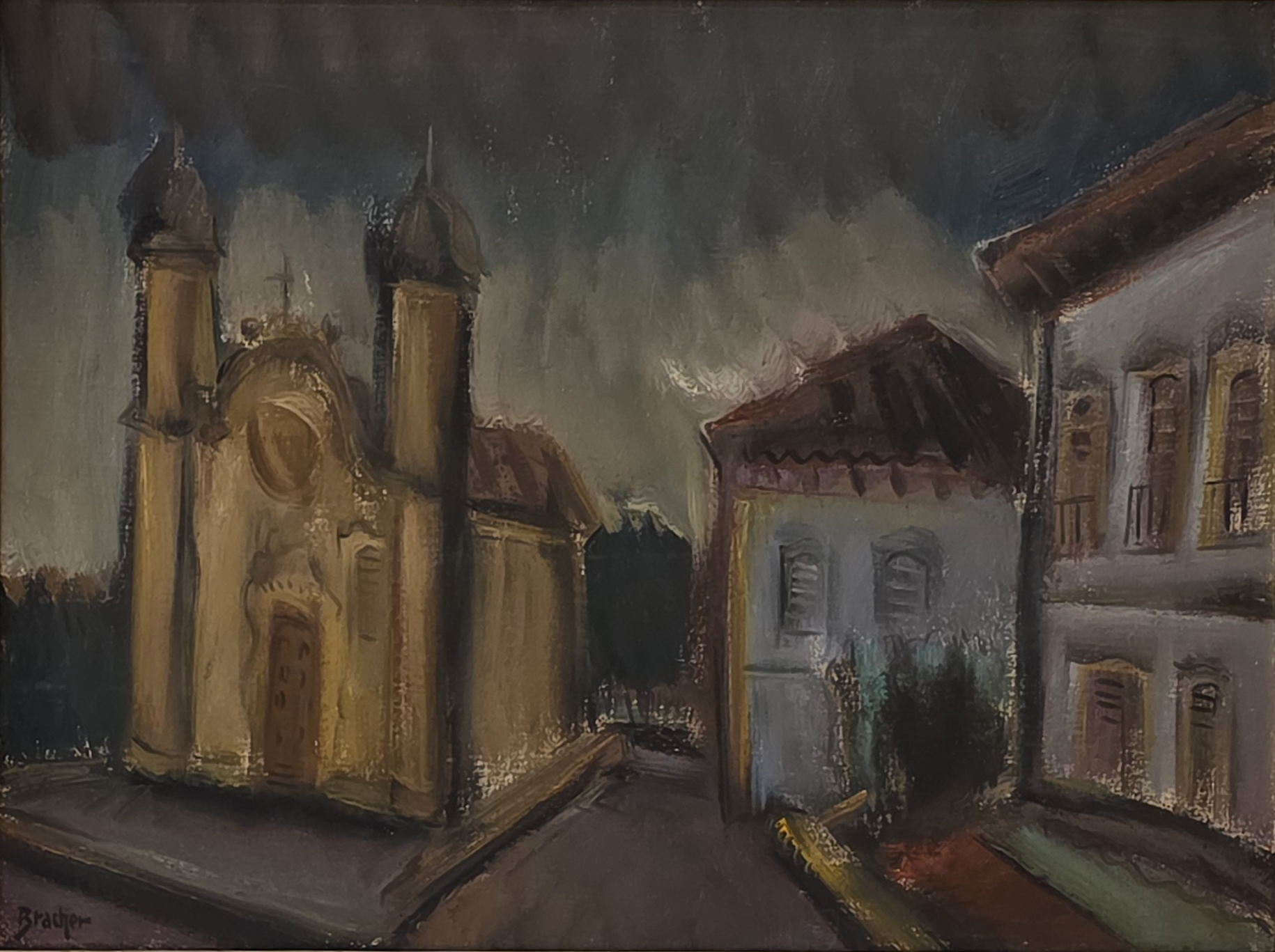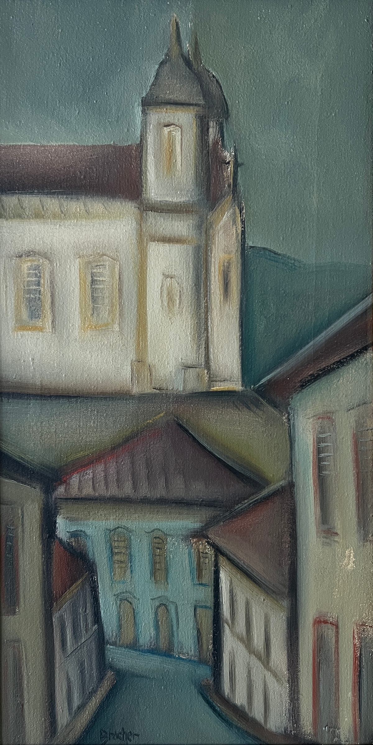 Carlos Bracher - Igreja do Senhor Bom Jesus do Matosinhos e Colégio Arquidiocesano - 54 x 73 cm - Óleo sobre tela - Assinatura verso e Data 1979