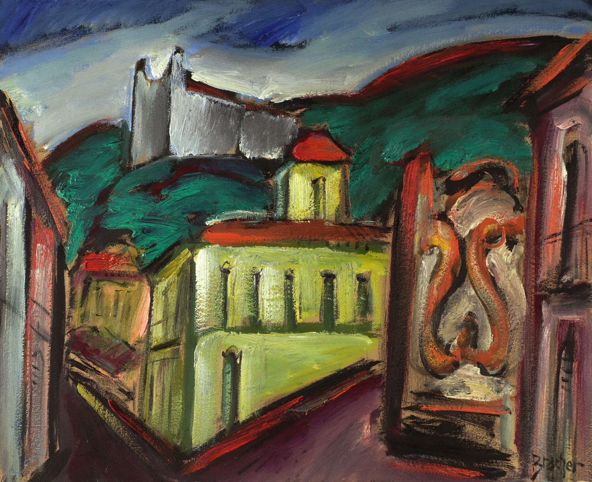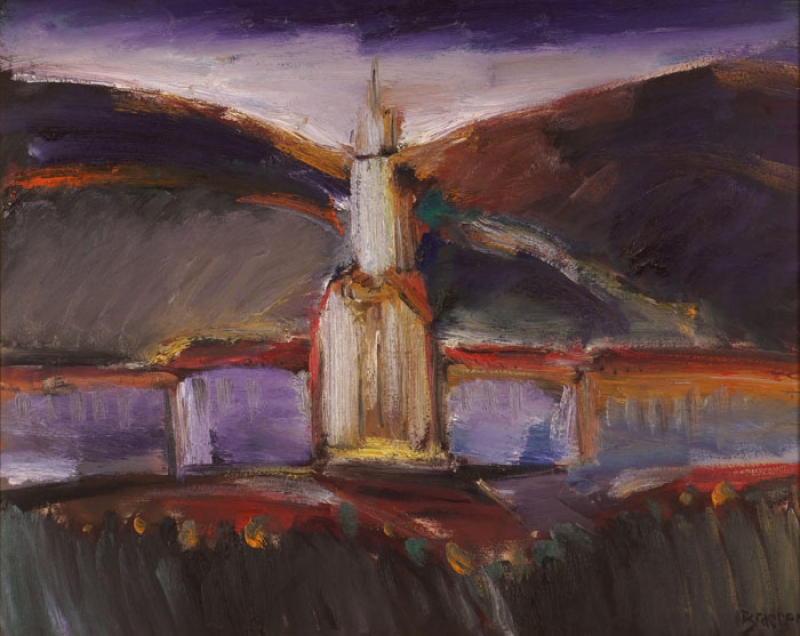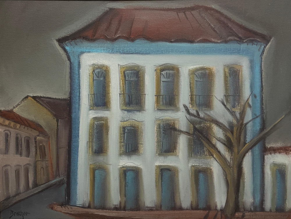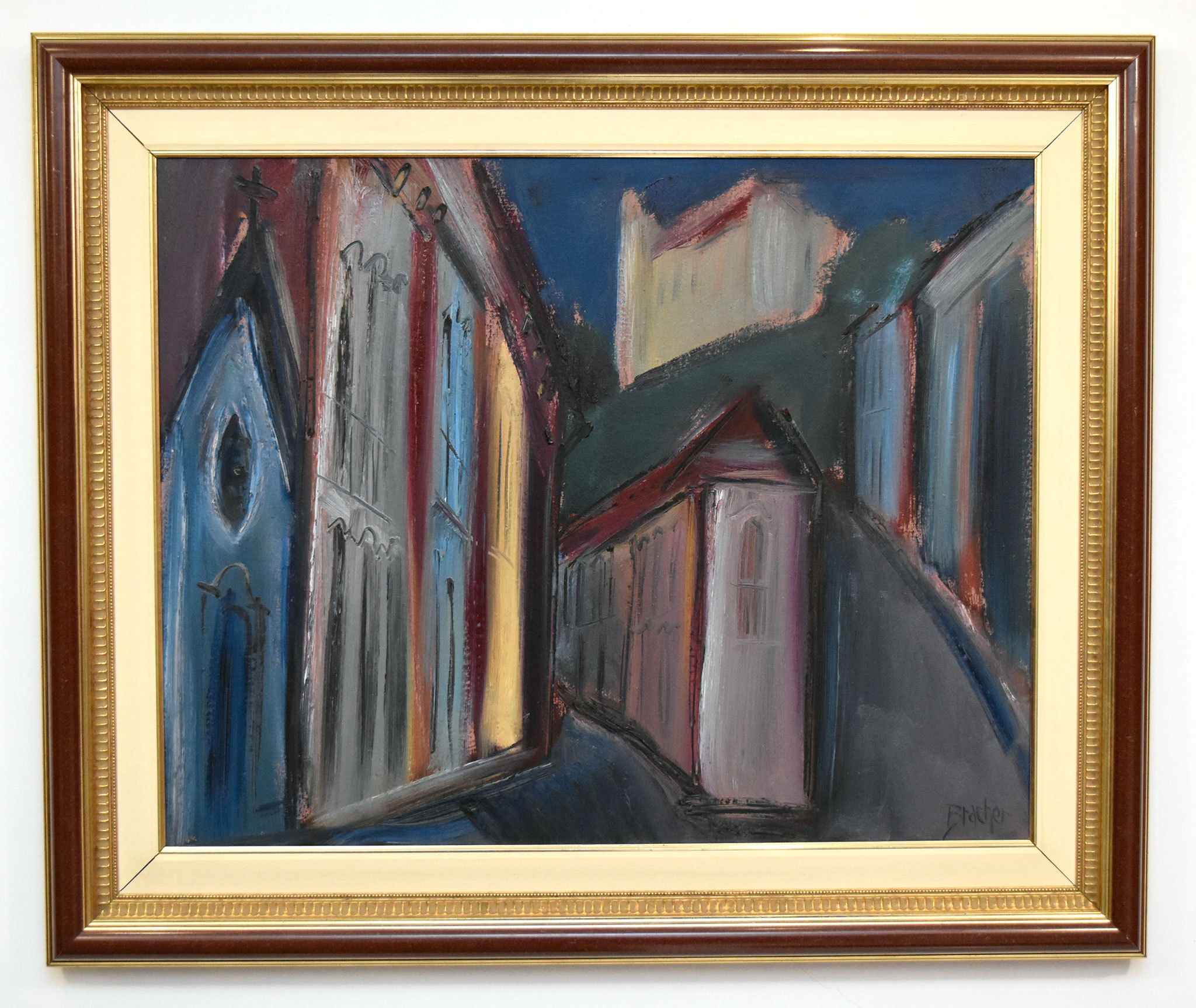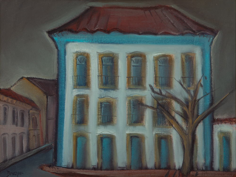 Carlos Bracher - Igreja do Senhor Bom Jesus do Matosinhos e Colégio Arquidiocesano - 54 x 73 cm - Óleo sobre tela - Assinatura verso e Data 1979