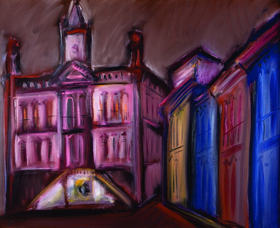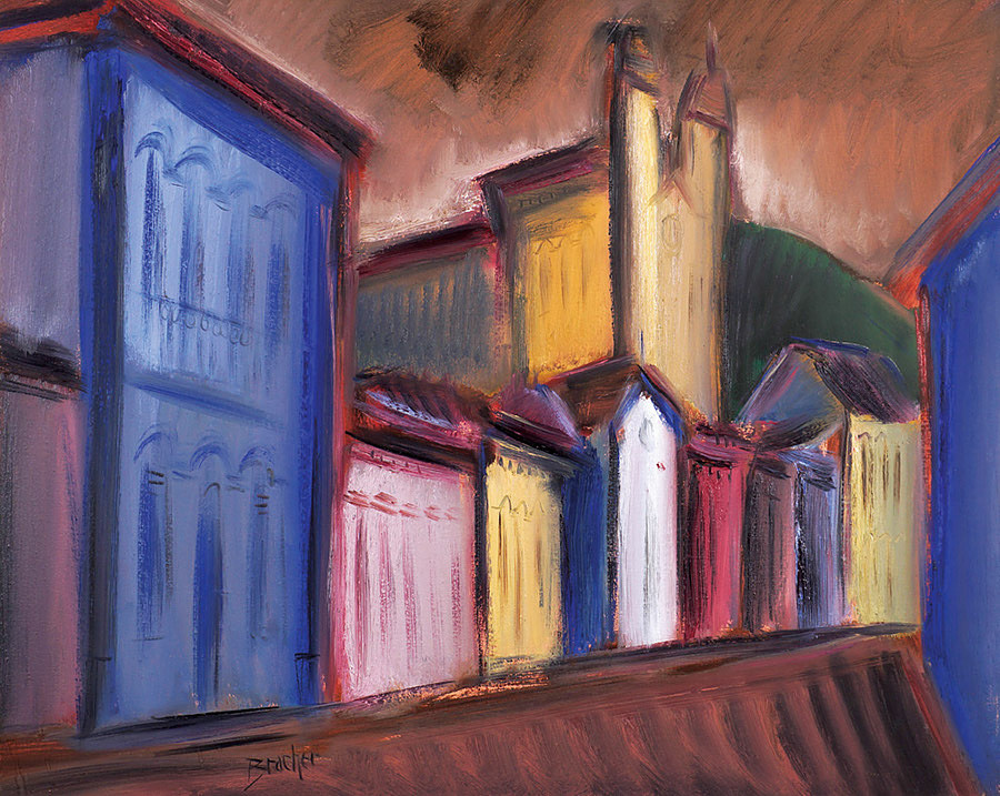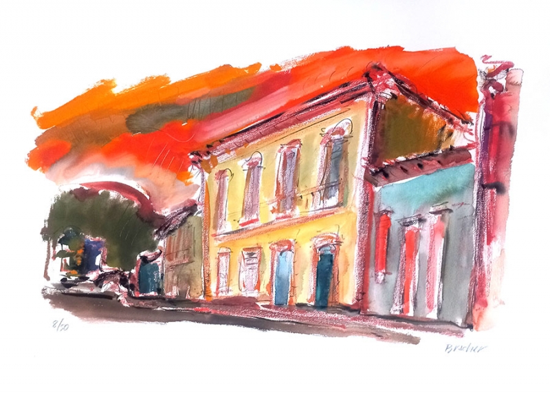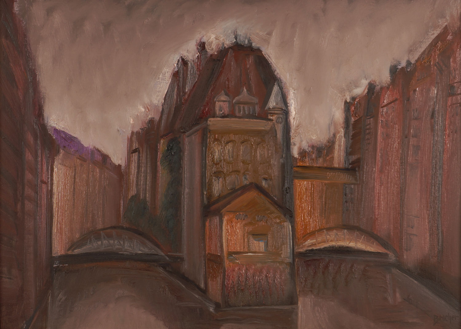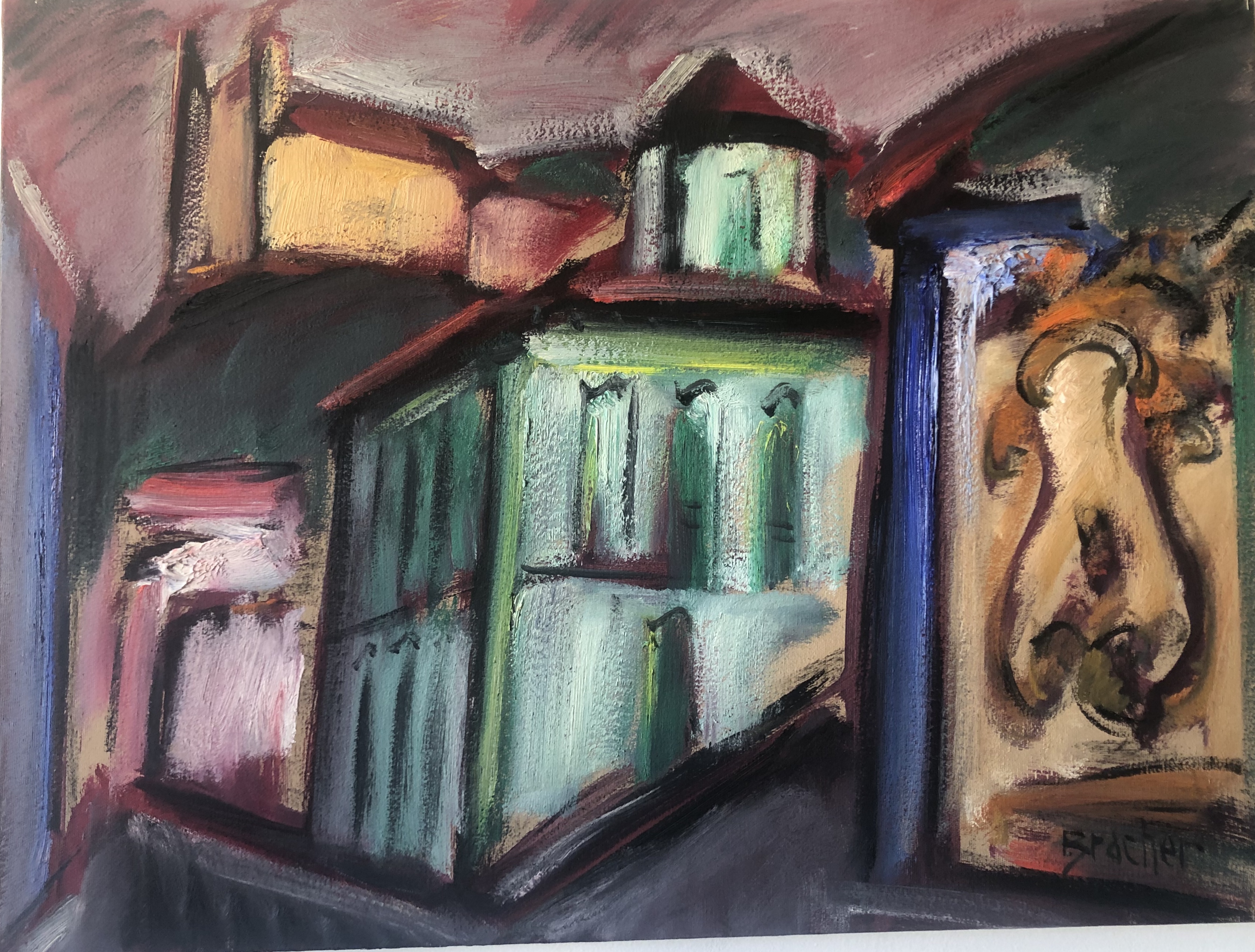 Carlos Bracher - Igreja do Senhor Bom Jesus do Matosinhos e Colégio Arquidiocesano - 54 x 73 cm - Óleo sobre tela - Assinatura verso e Data 1979