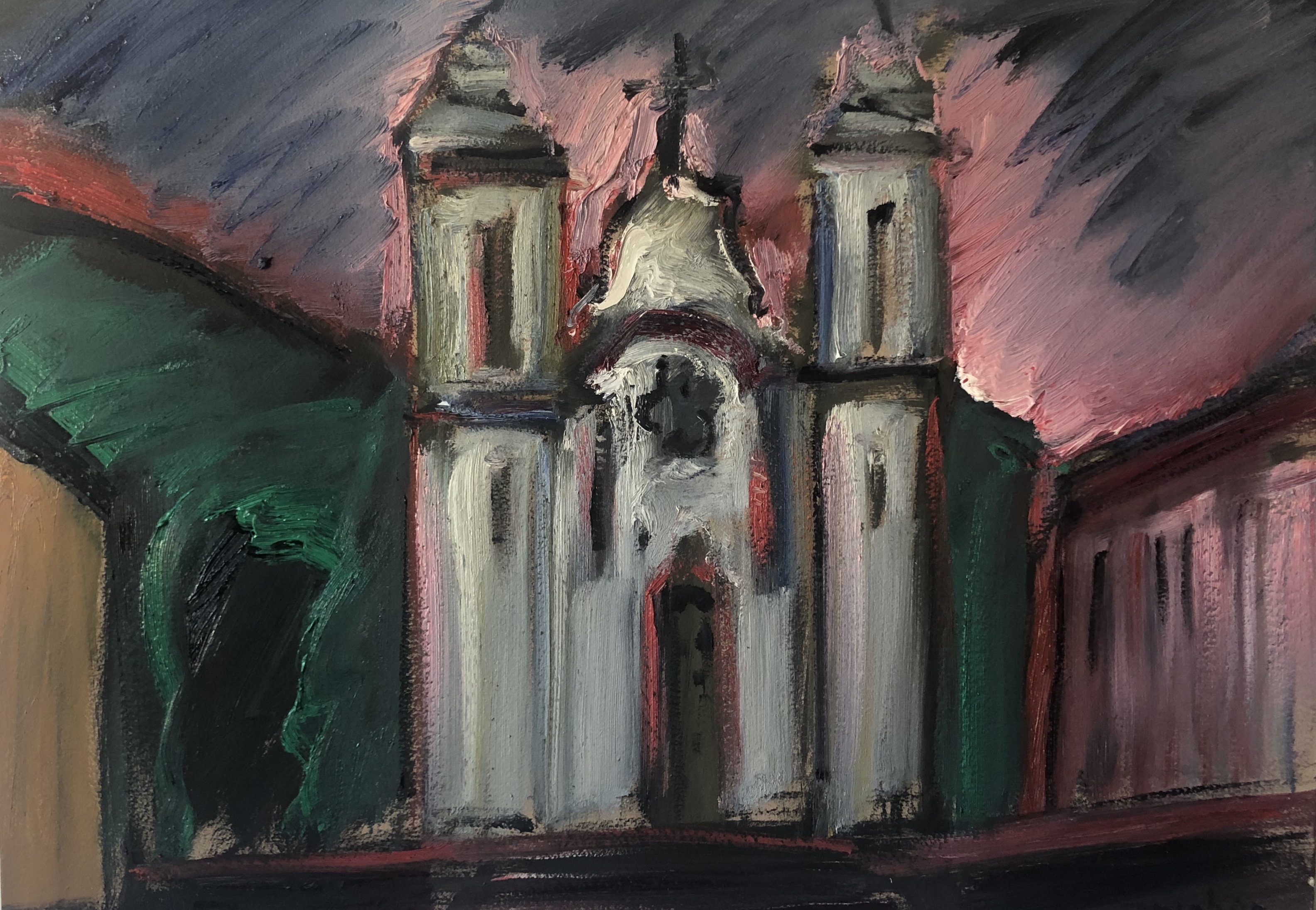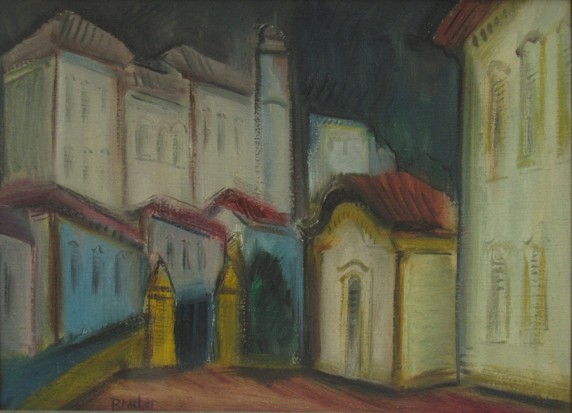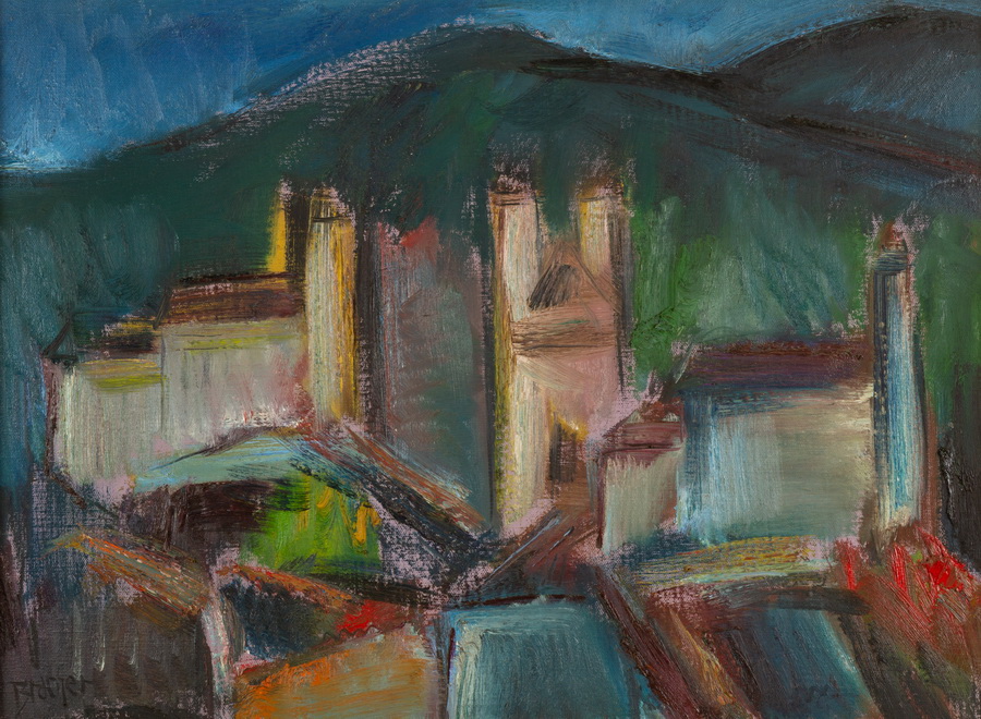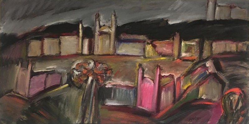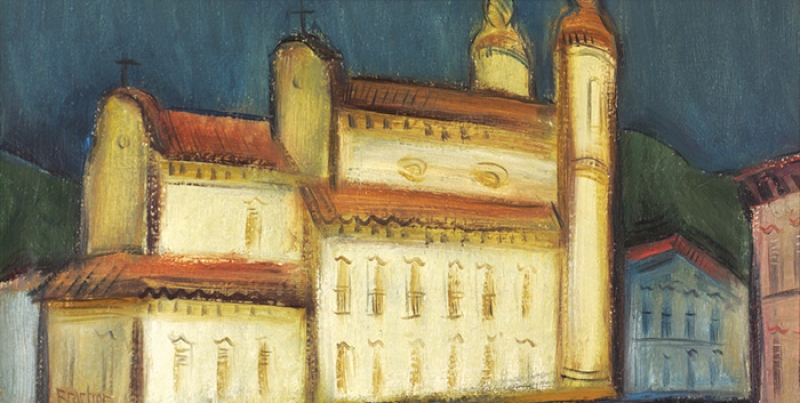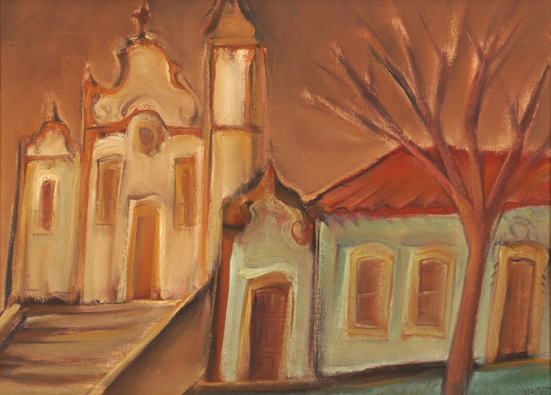 Carlos Bracher - Igreja do Senhor Bom Jesus do Matosinhos e Colégio Arquidiocesano - 54 x 73 cm - Óleo sobre tela - Assinatura verso e Data 1979