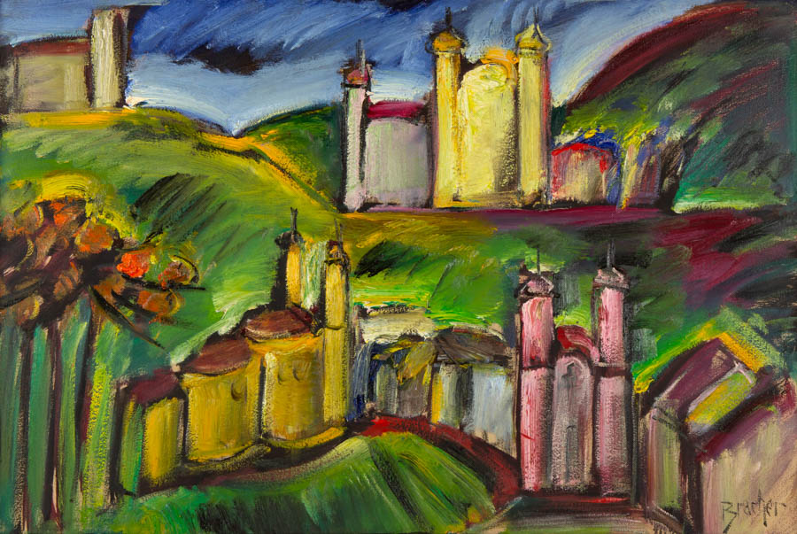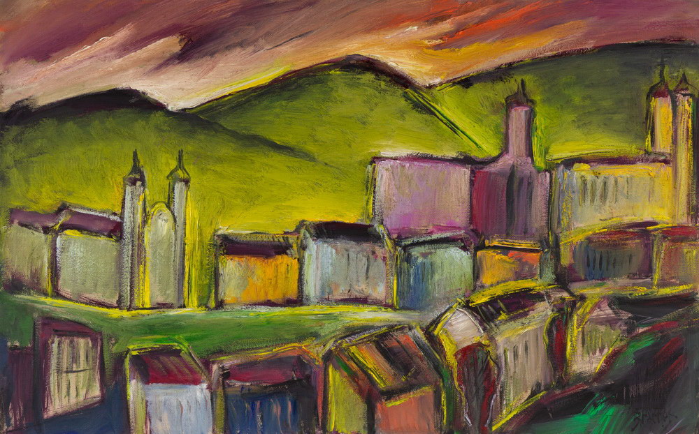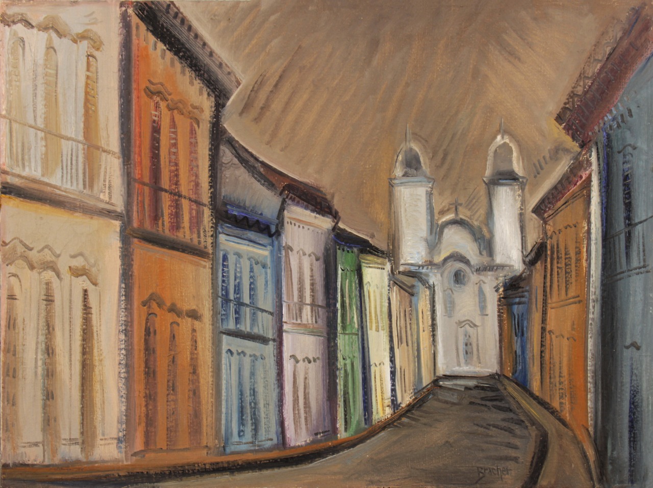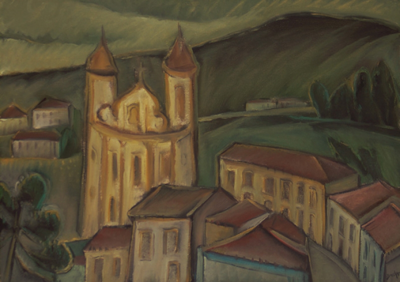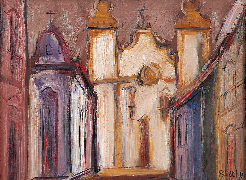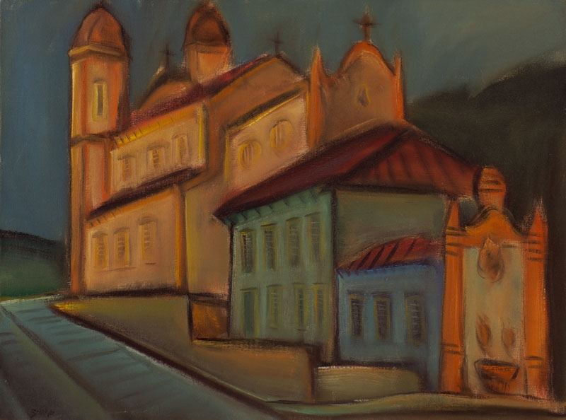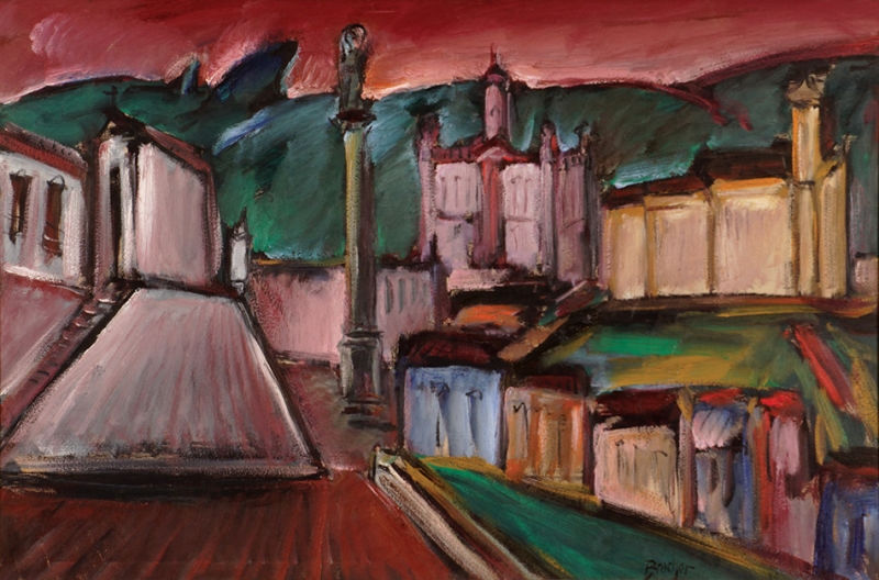 Carlos Bracher - Igreja do Senhor Bom Jesus do Matosinhos e Colégio Arquidiocesano - 54 x 73 cm - Óleo sobre tela - Assinatura verso e Data 1979