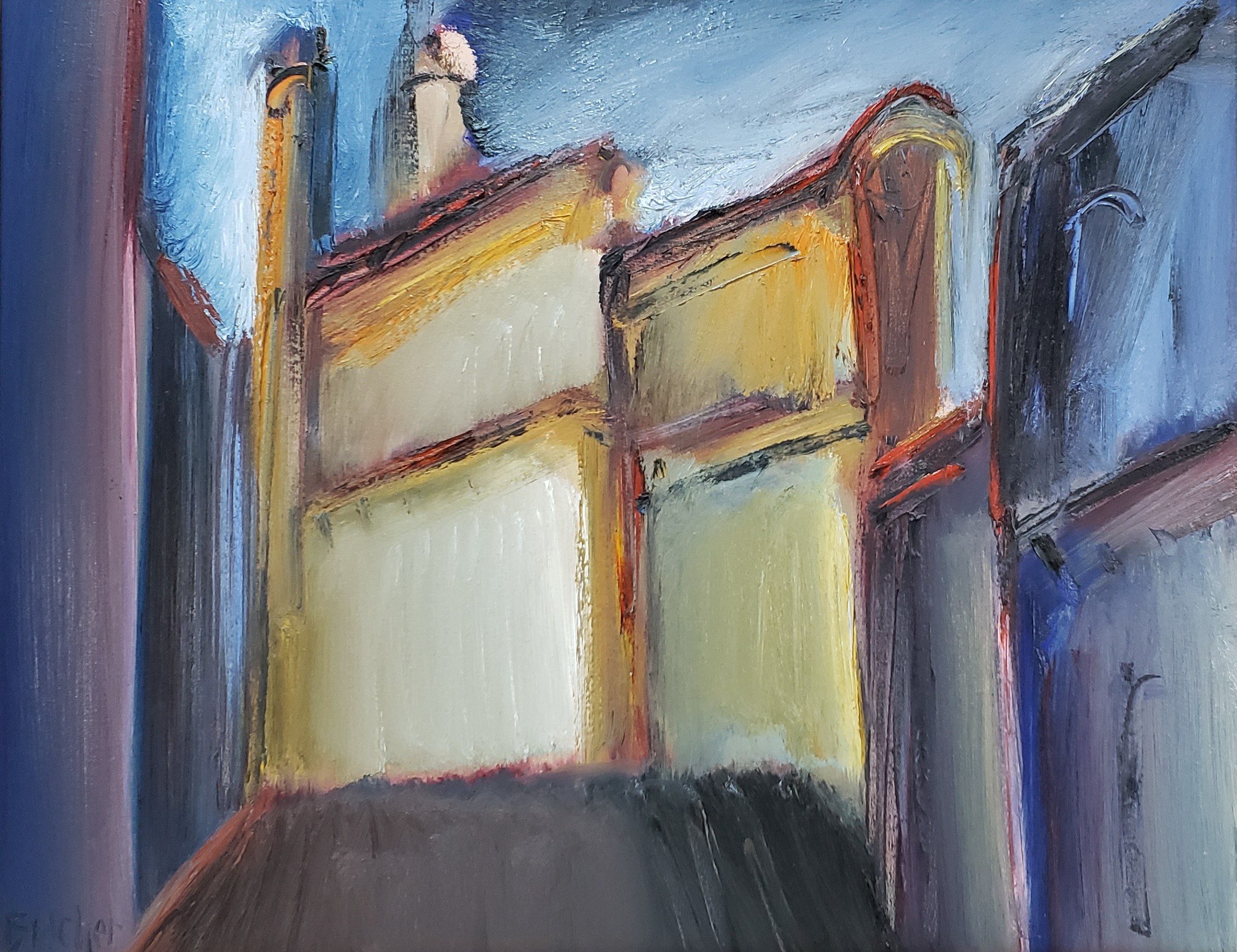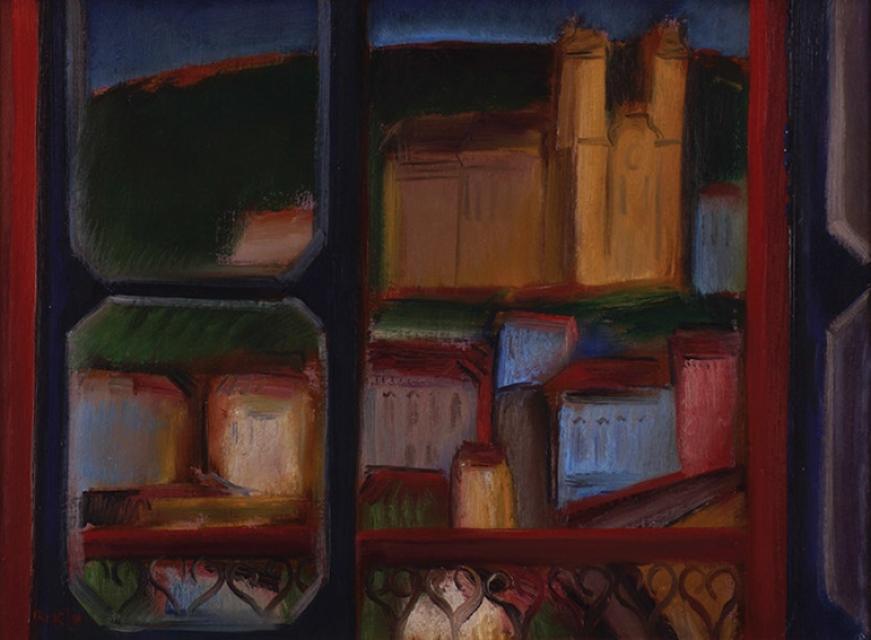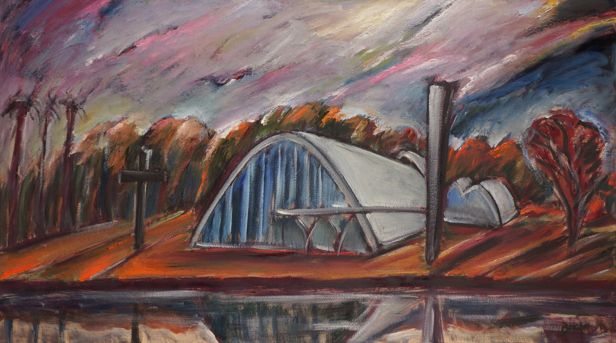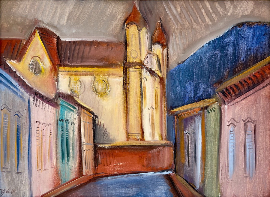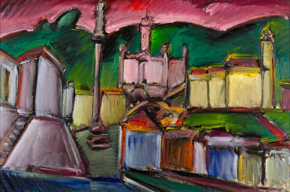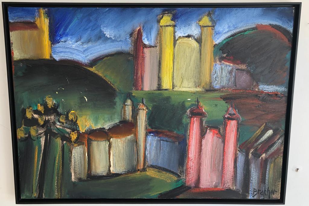 Carlos Bracher - Igreja do Senhor Bom Jesus do Matosinhos e Colégio Arquidiocesano - 54 x 73 cm - Óleo sobre tela - Assinatura verso e Data 1979