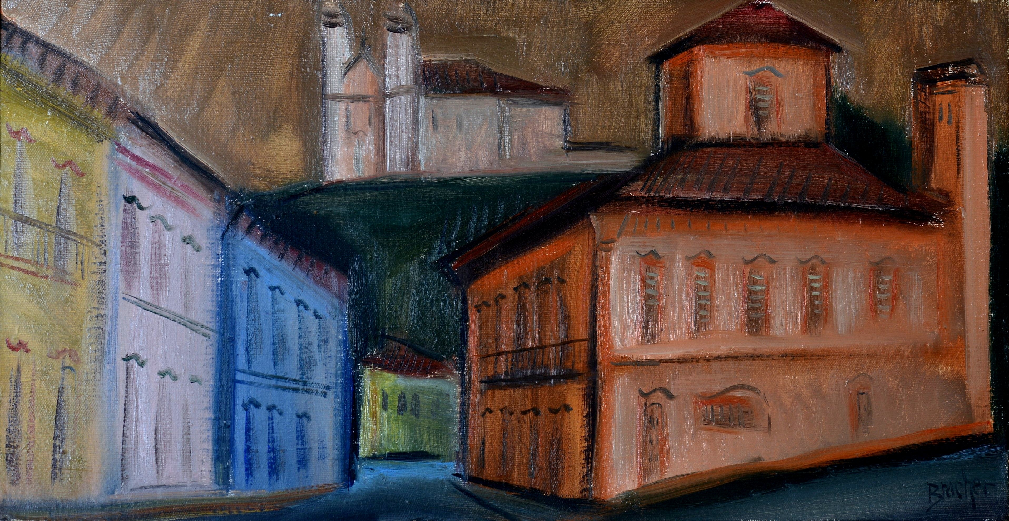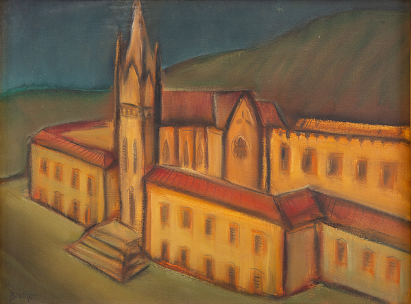 Carlos Bracher - Igreja do Senhor Bom Jesus do Matosinhos e Colégio Arquidiocesano - 54 x 73 cm - Óleo sobre tela - Assinatura verso e Data 1979
