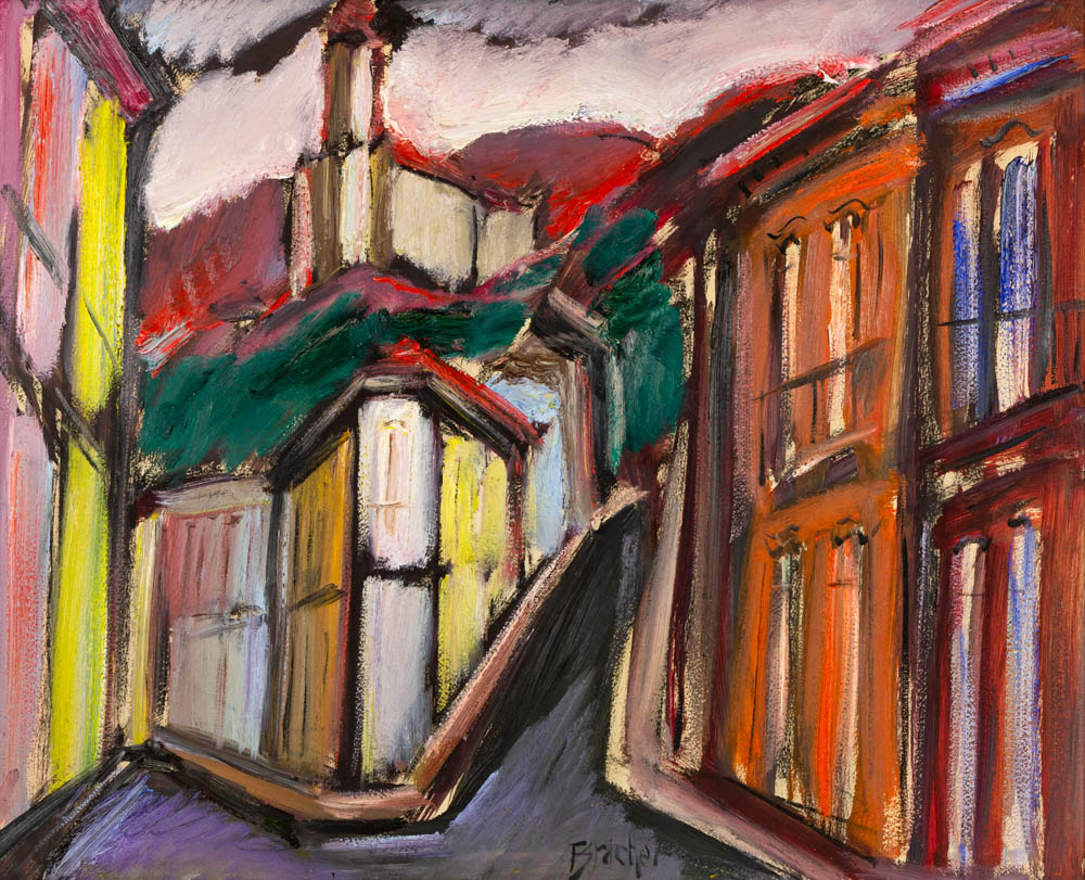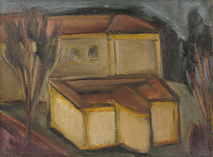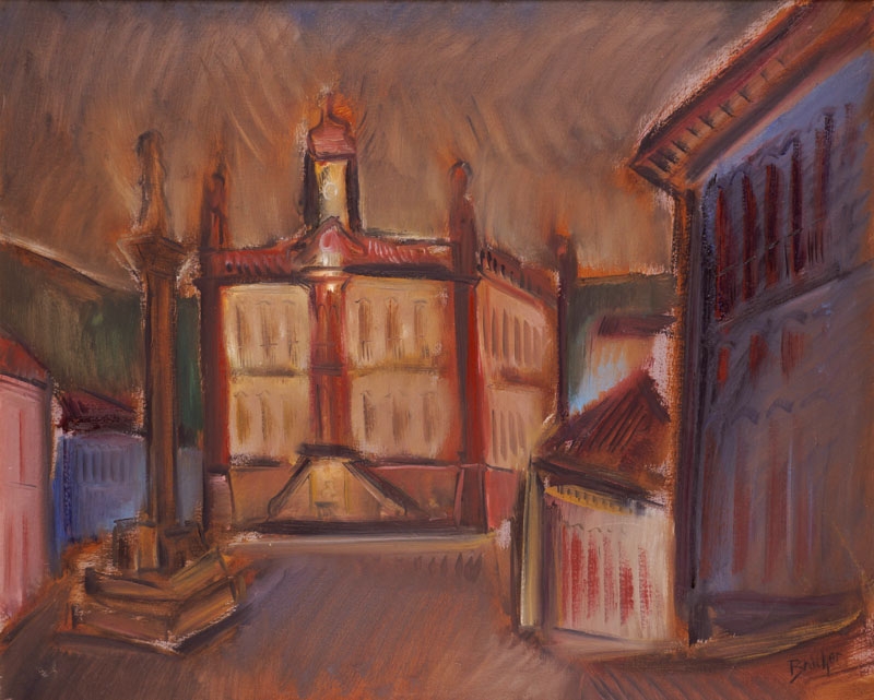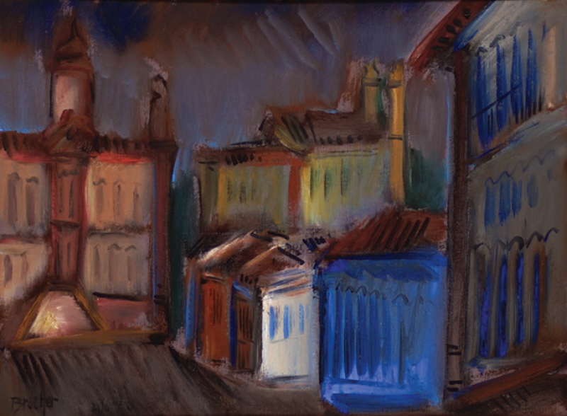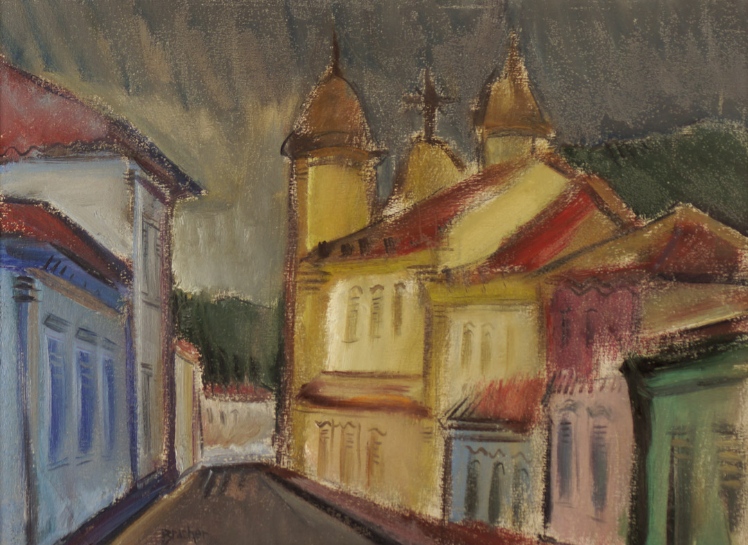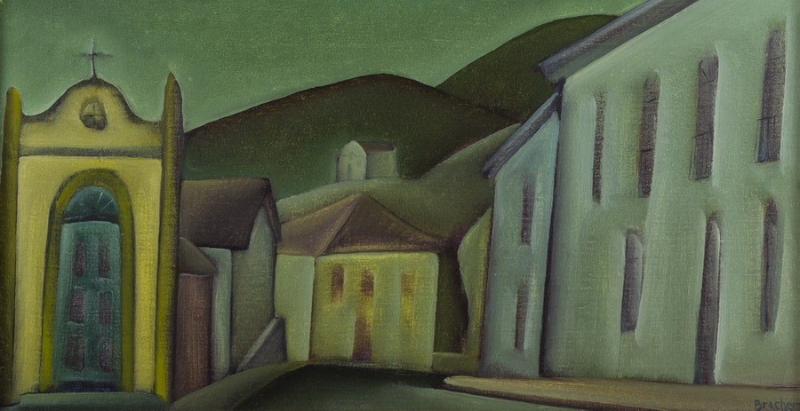Carlos Bracher - Igreja do Senhor Bom Jesus do Matosinhos e Colégio Arquidiocesano - 54 x 73 cm - Óleo sobre tela - Assinatura verso e Data 1979