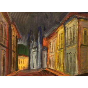 Carlos Bracher - Rua direita e Igreja São José – Ouro Preto/MG – 60 x 81 cm – Óieo sobre tela – Assinatura canto inferior direito e Data 1989