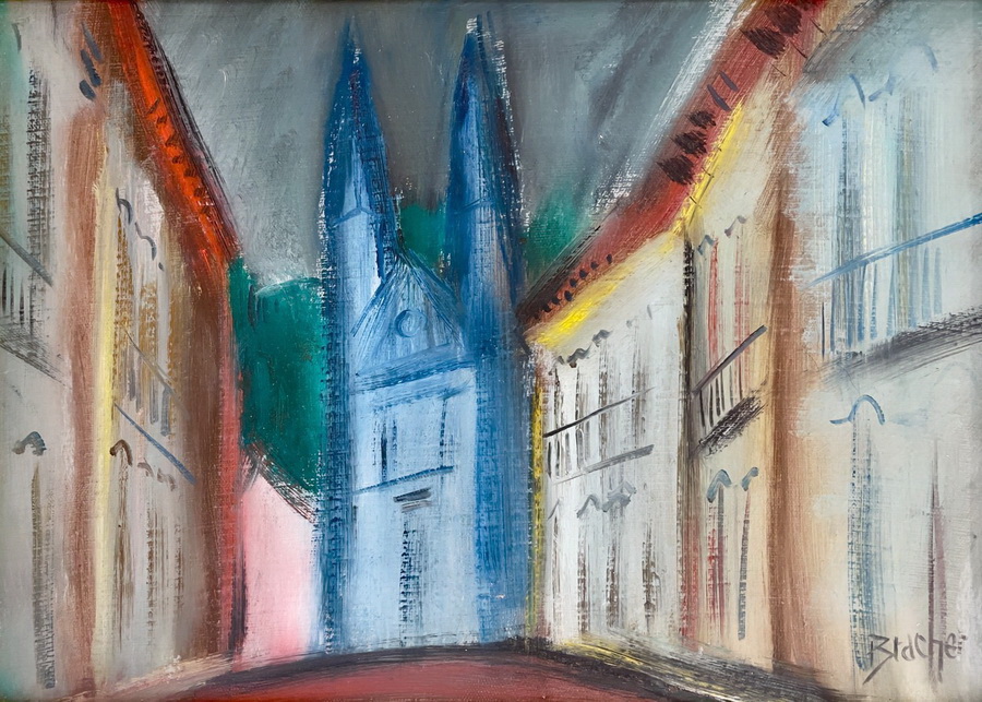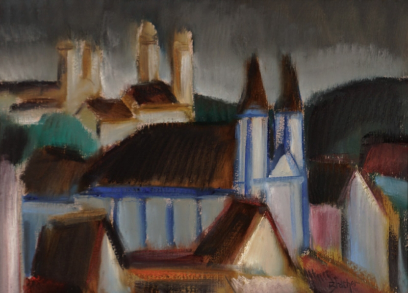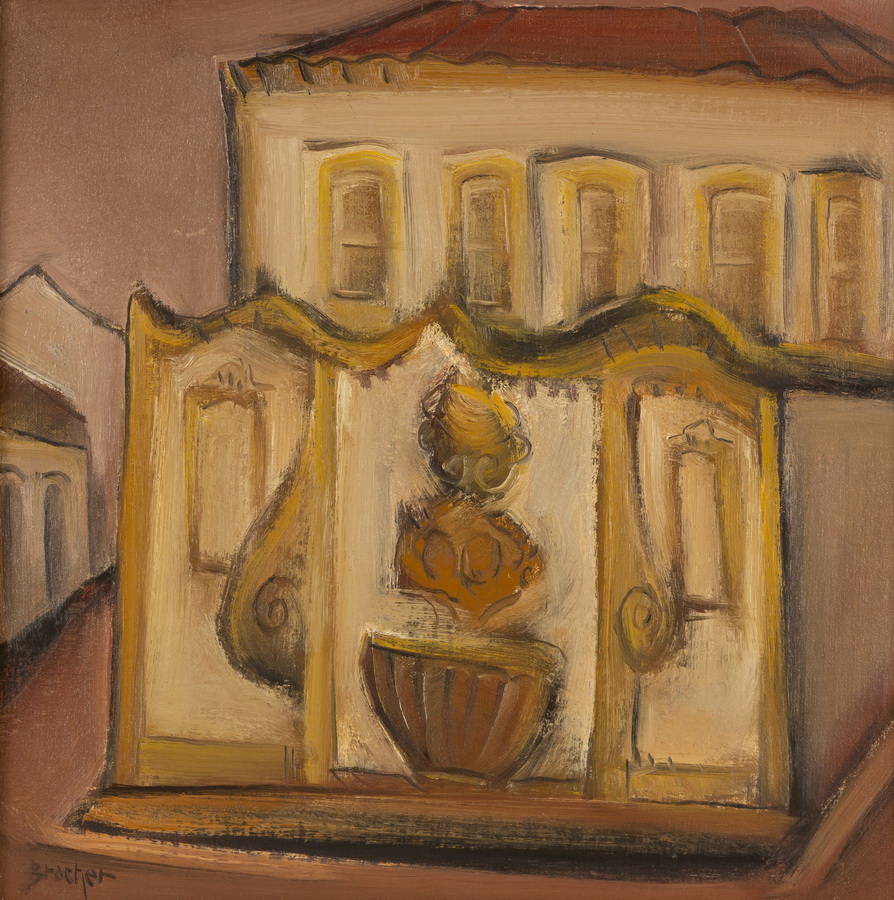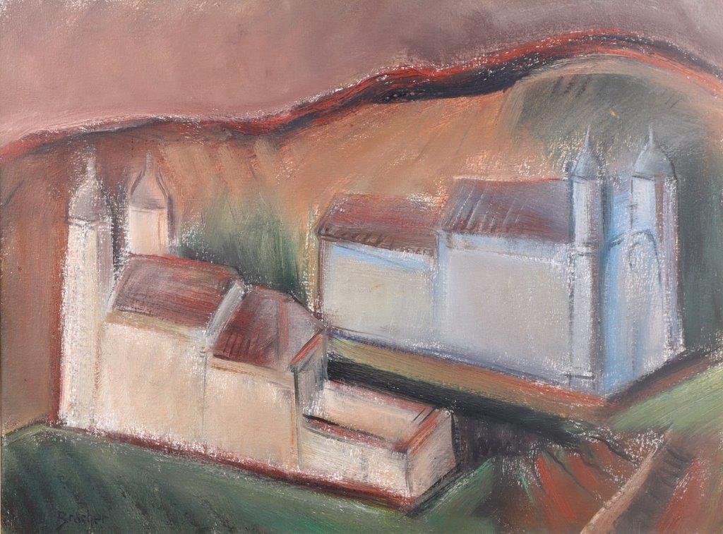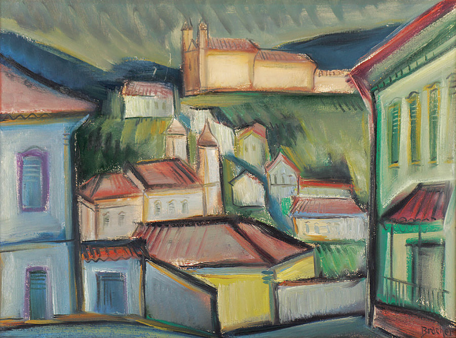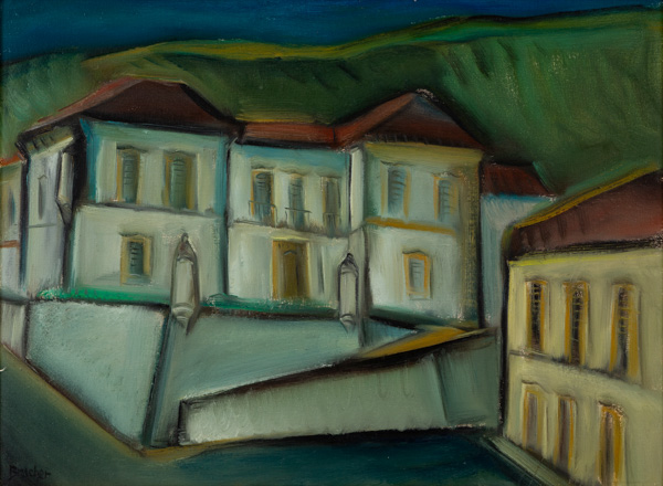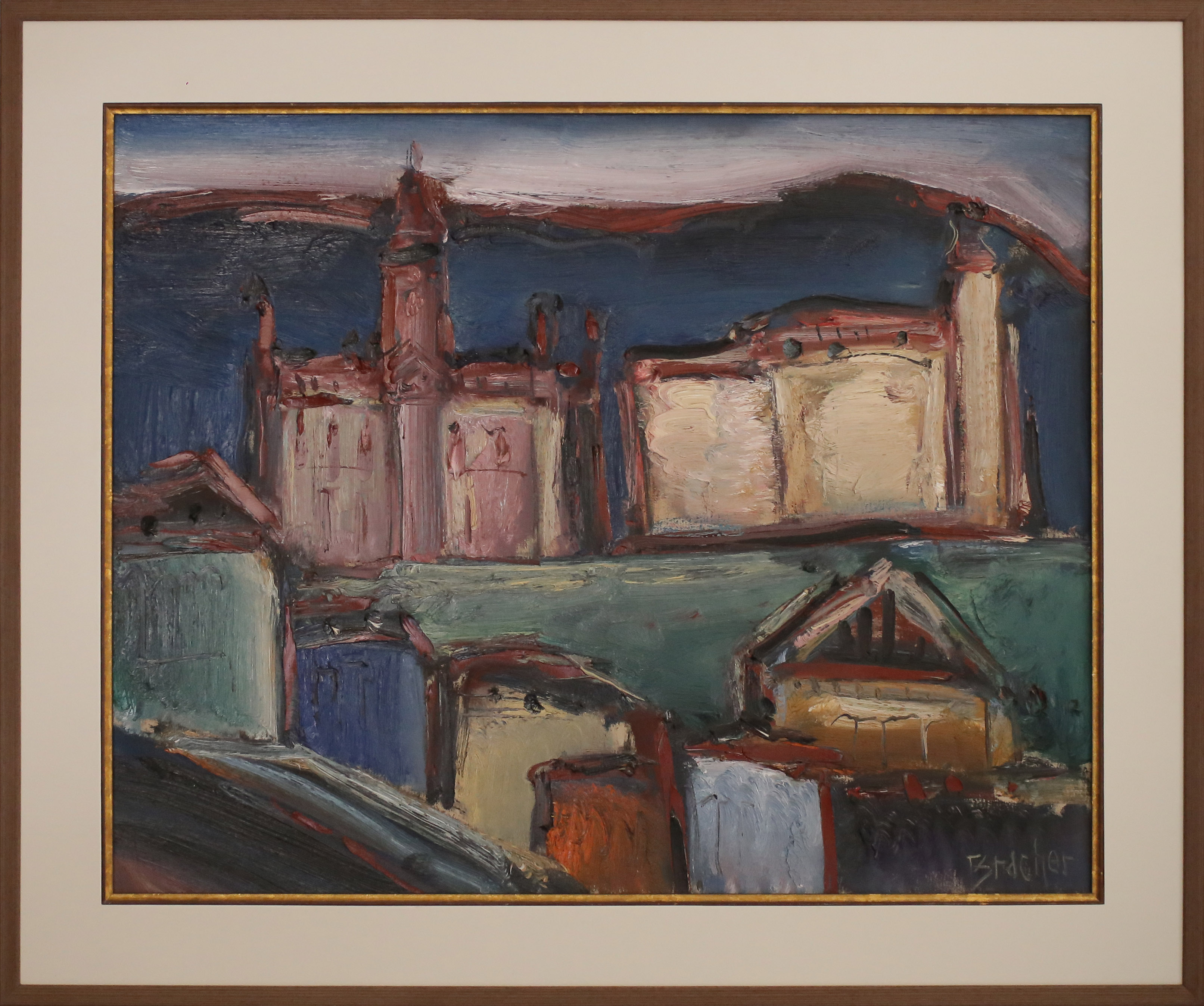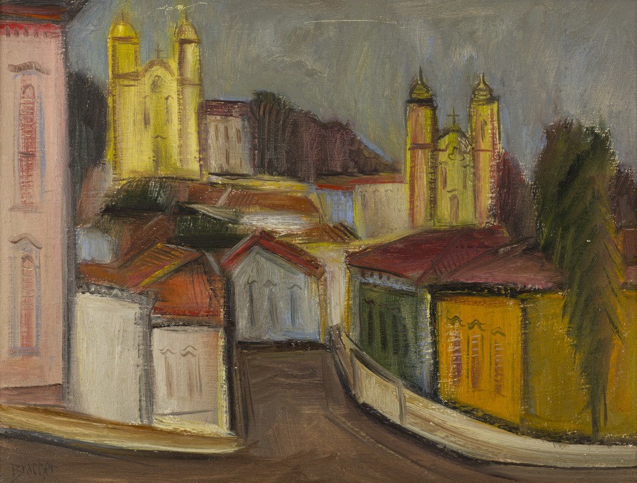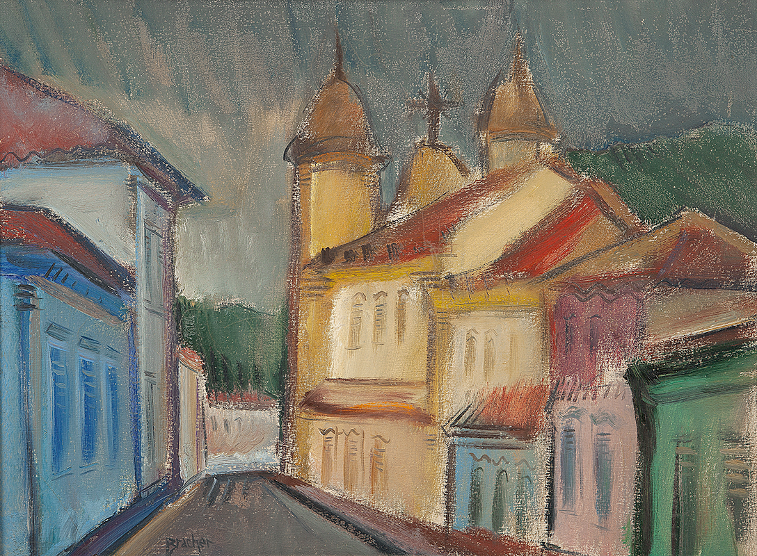 Carlos Bracher - Igreja do Senhor Bom Jesus do Matosinhos e Colégio Arquidiocesano - 54 x 73 cm - Óleo sobre tela - Assinatura verso e Data 1979