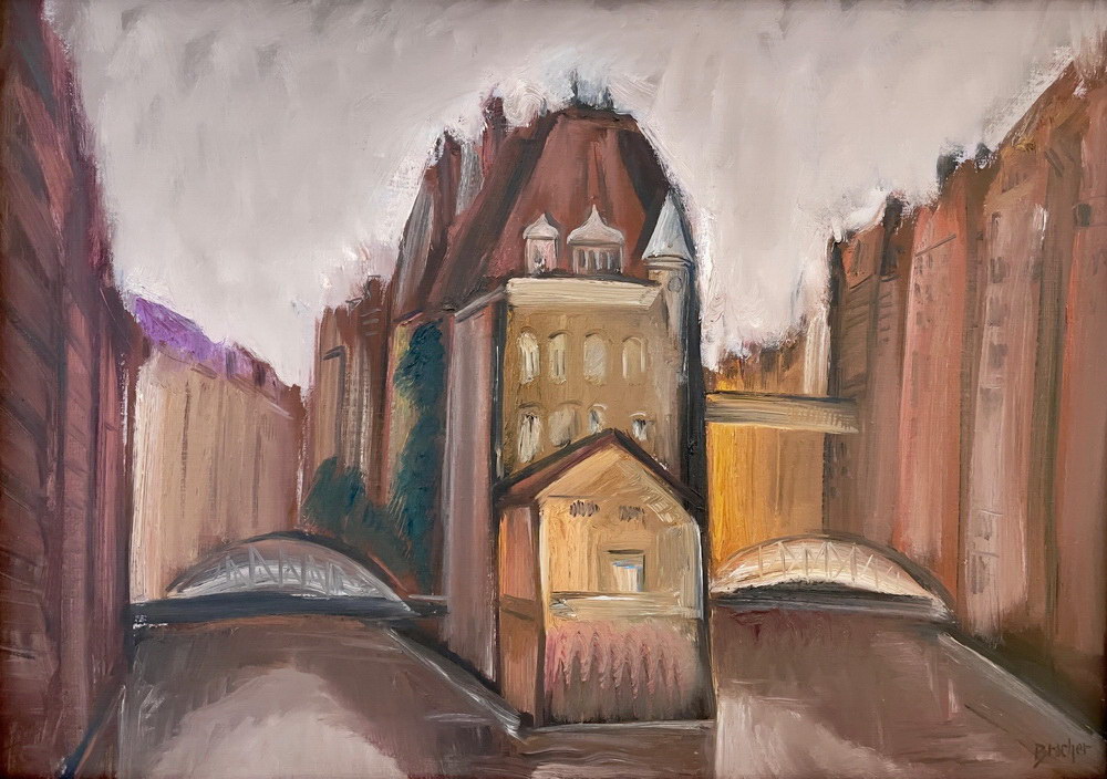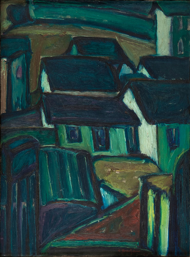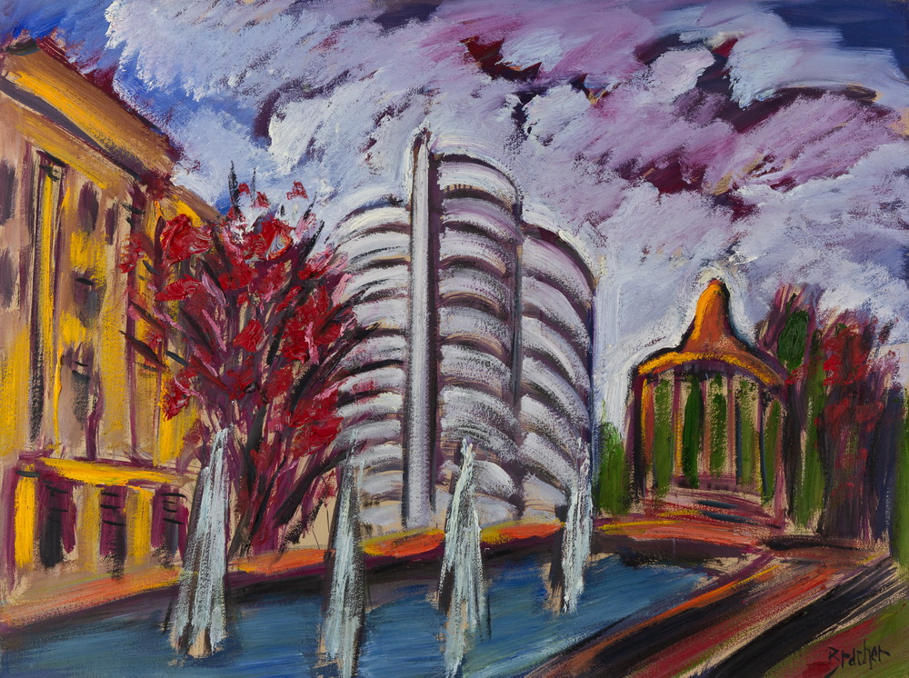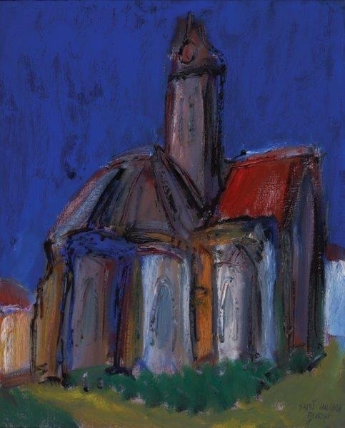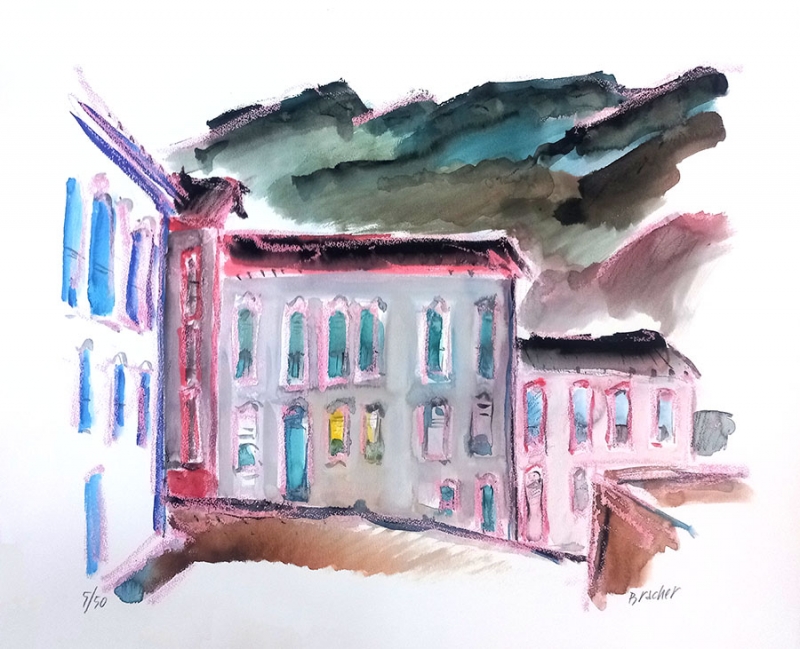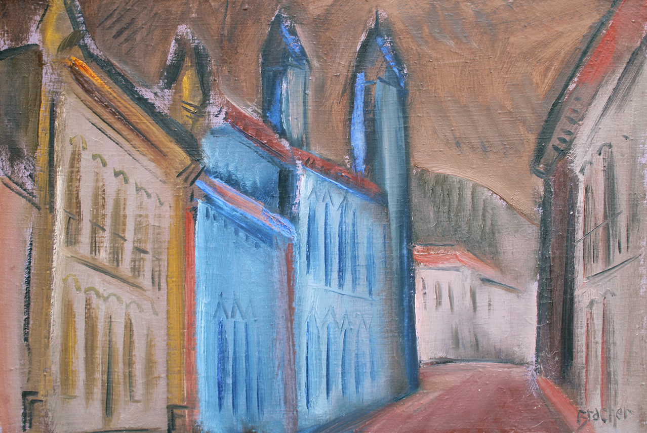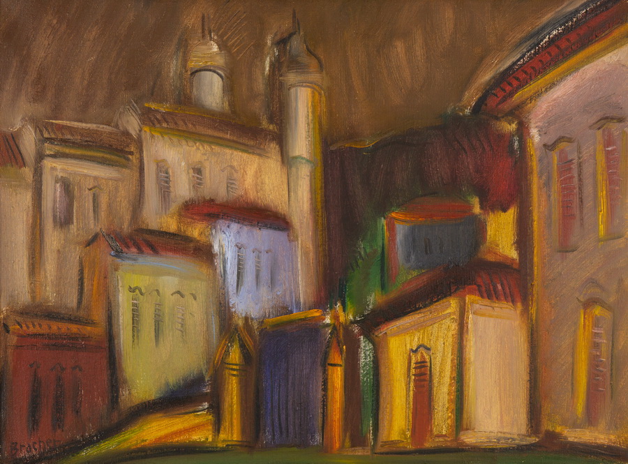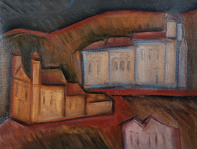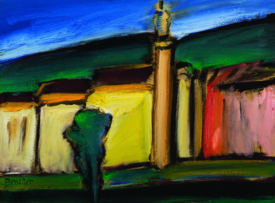 Carlos Bracher - Igreja do Senhor Bom Jesus do Matosinhos e Colégio Arquidiocesano - 54 x 73 cm - Óleo sobre tela - Assinatura verso e Data 1979