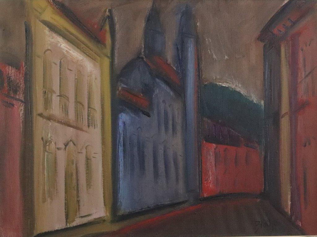 Carlos Bracher - Igreja do Senhor Bom Jesus do Matosinhos e Colégio Arquidiocesano - 54 x 73 cm - Óleo sobre tela - Assinatura verso e Data 1979