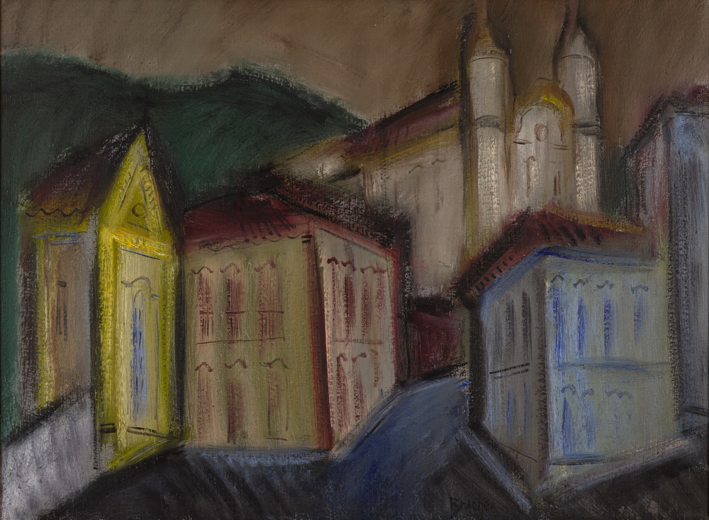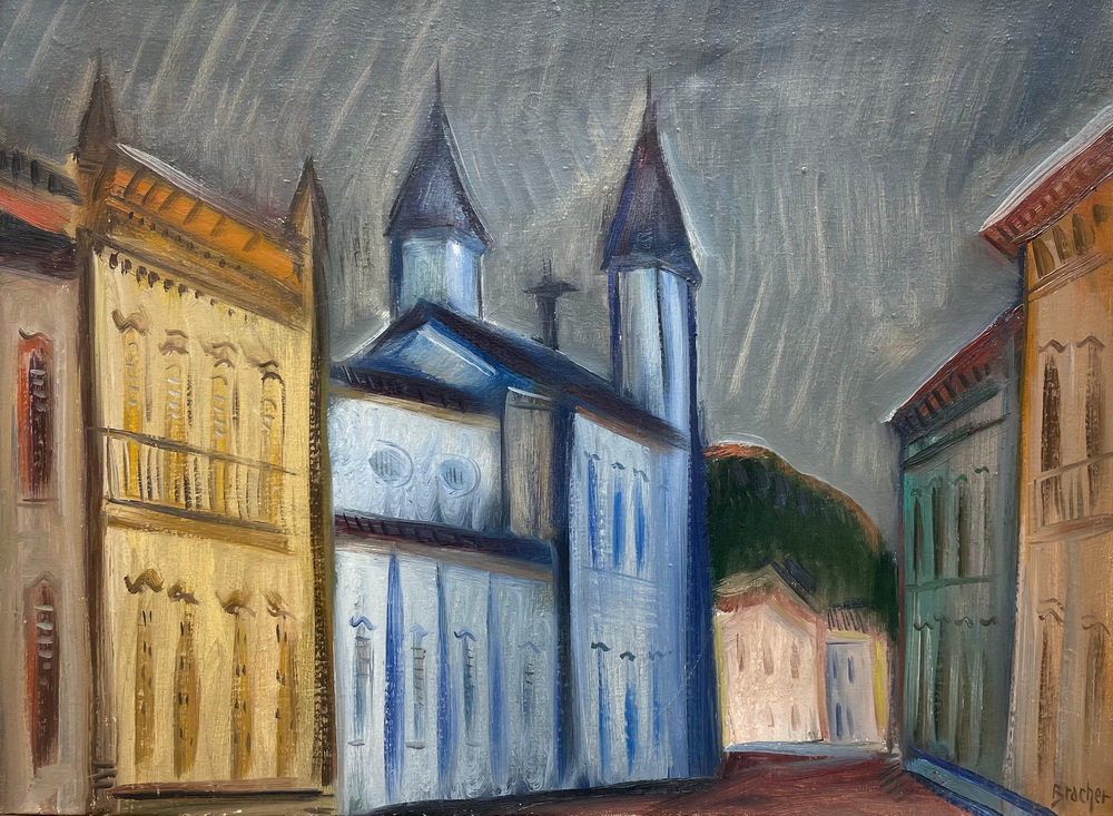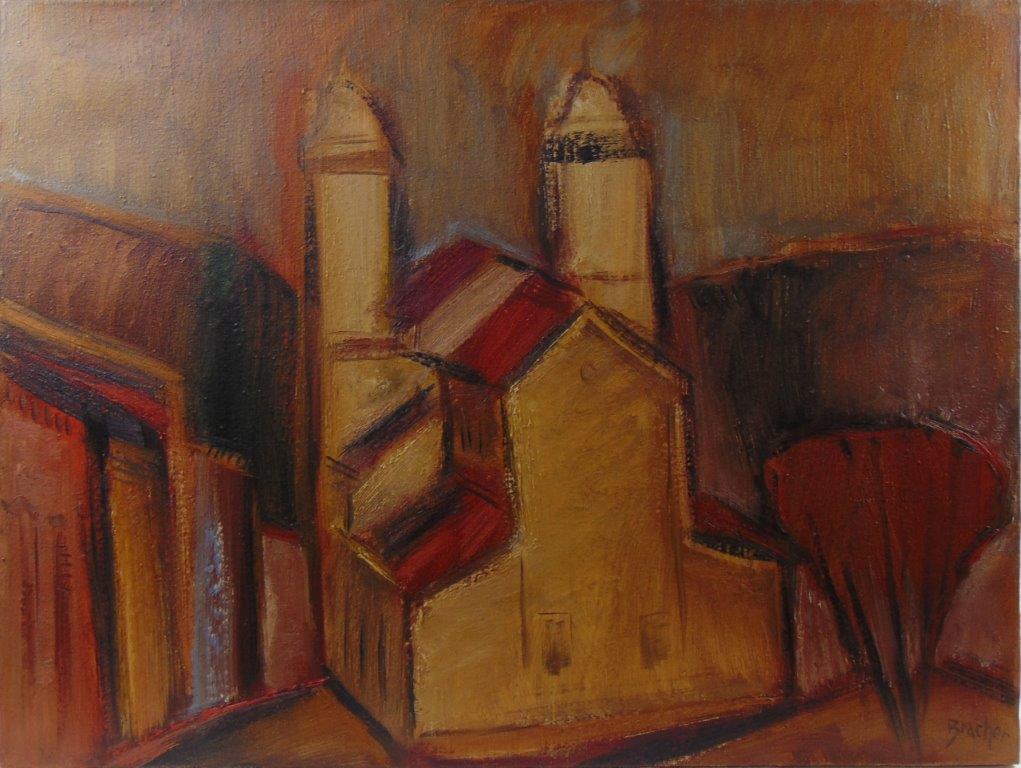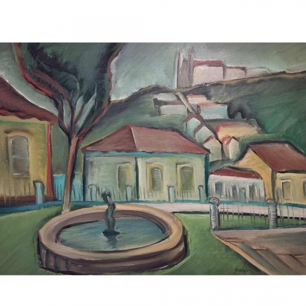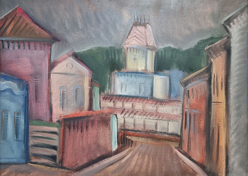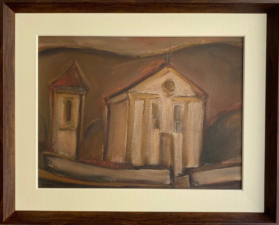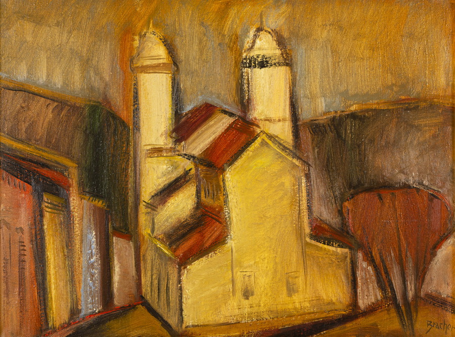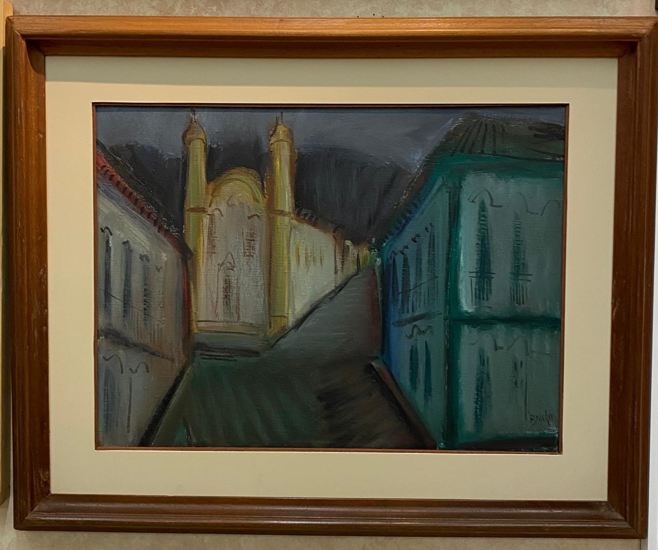 Carlos Bracher - Igreja do Senhor Bom Jesus do Matosinhos e Colégio Arquidiocesano - 54 x 73 cm - Óleo sobre tela - Assinatura verso e Data 1979