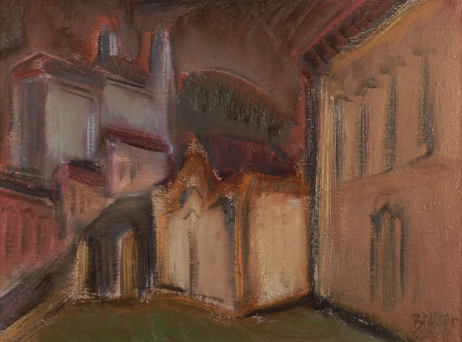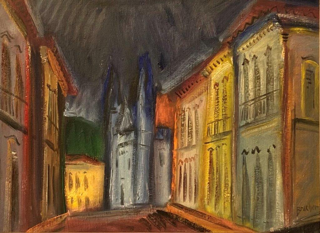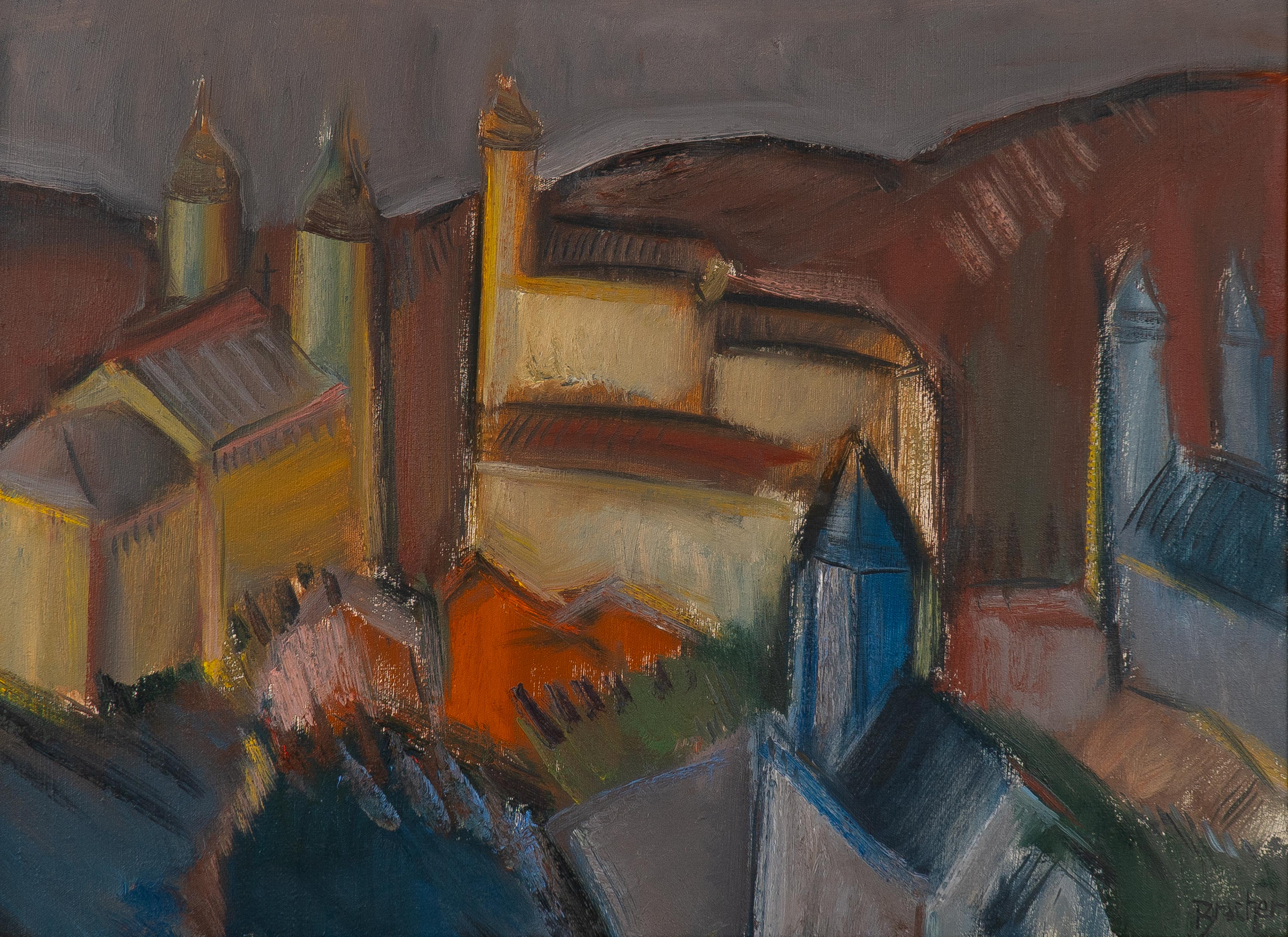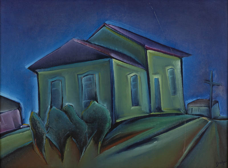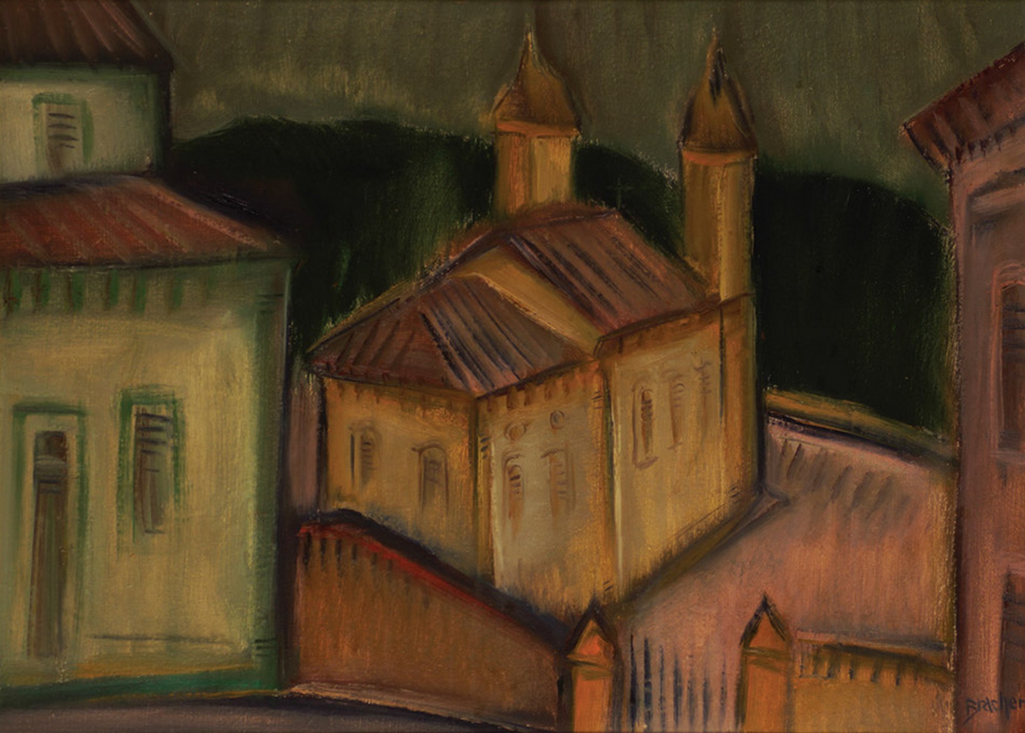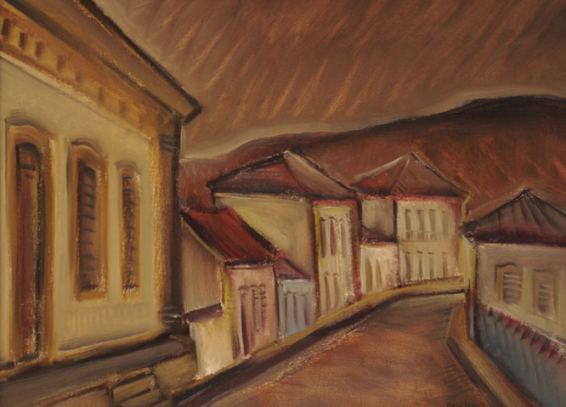 Carlos Bracher - Igreja do Senhor Bom Jesus do Matosinhos e Colégio Arquidiocesano - 54 x 73 cm - Óleo sobre tela - Assinatura verso e Data 1979
