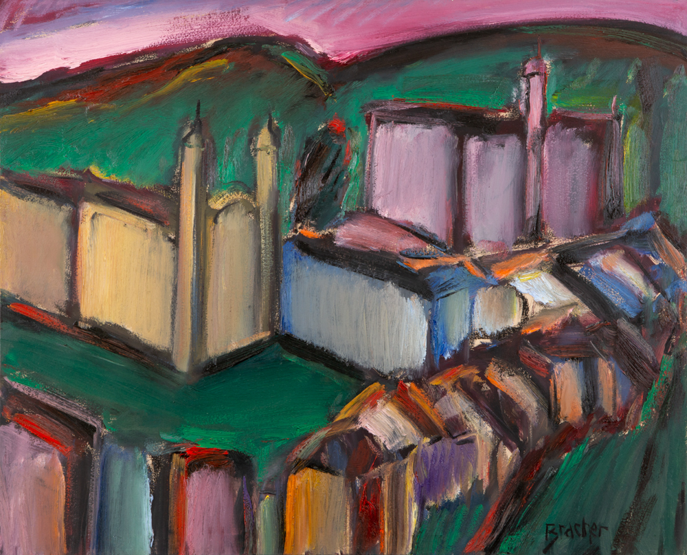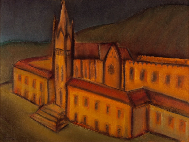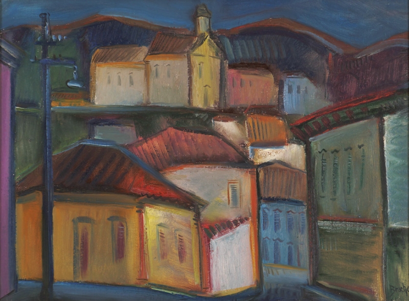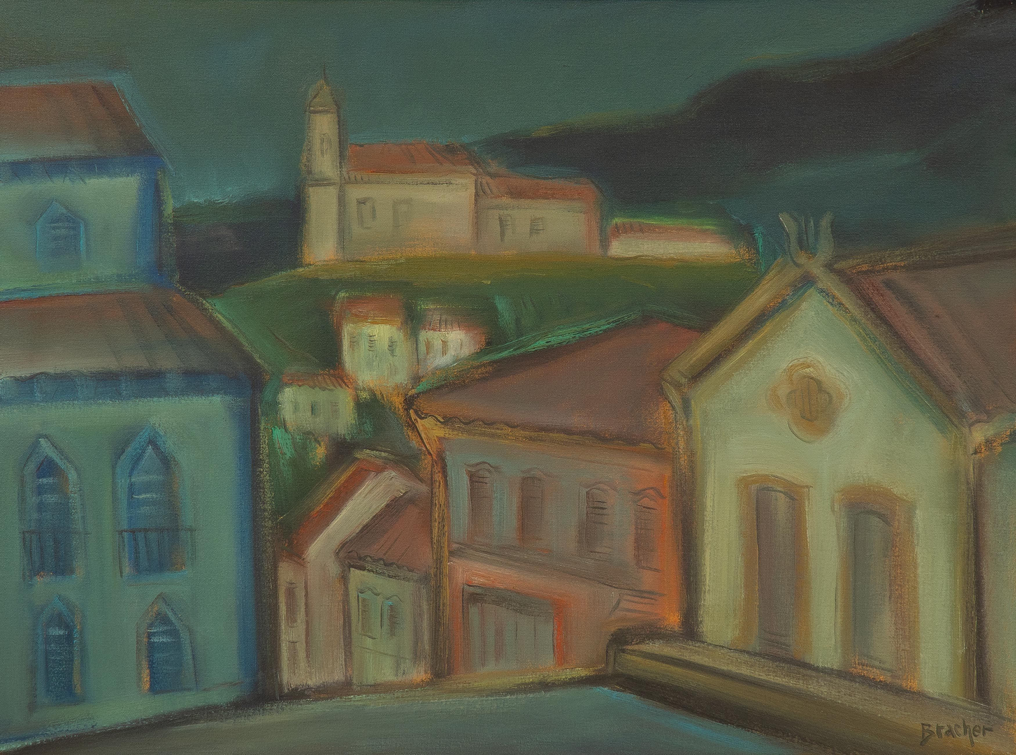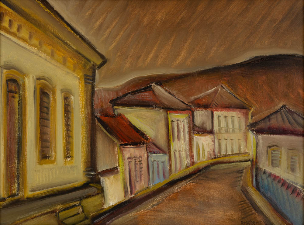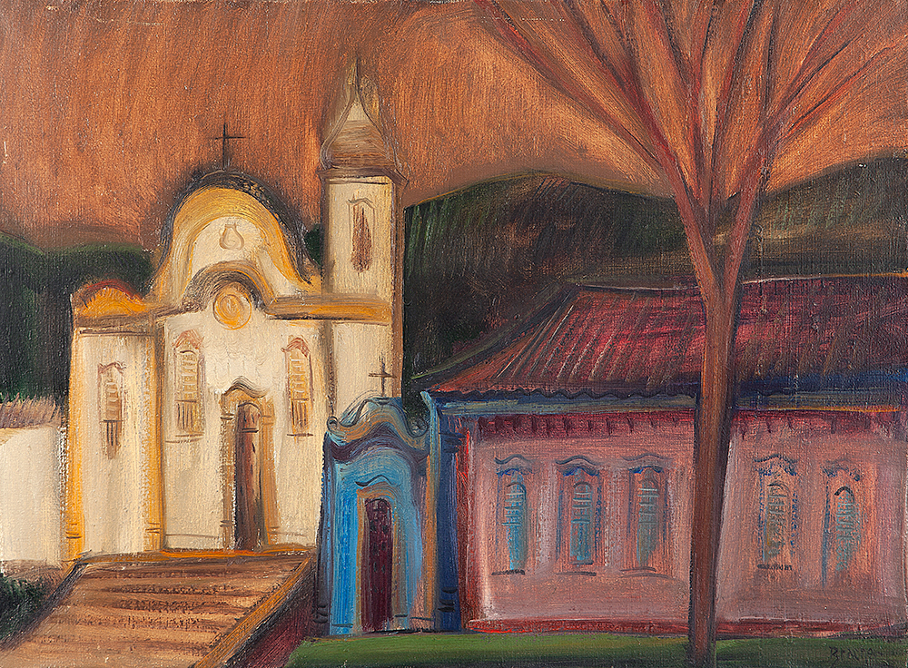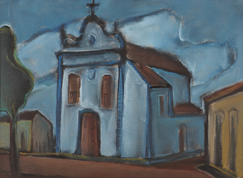 Carlos Bracher - Igreja do Senhor Bom Jesus do Matosinhos e Colégio Arquidiocesano - 54 x 73 cm - Óleo sobre tela - Assinatura verso e Data 1979