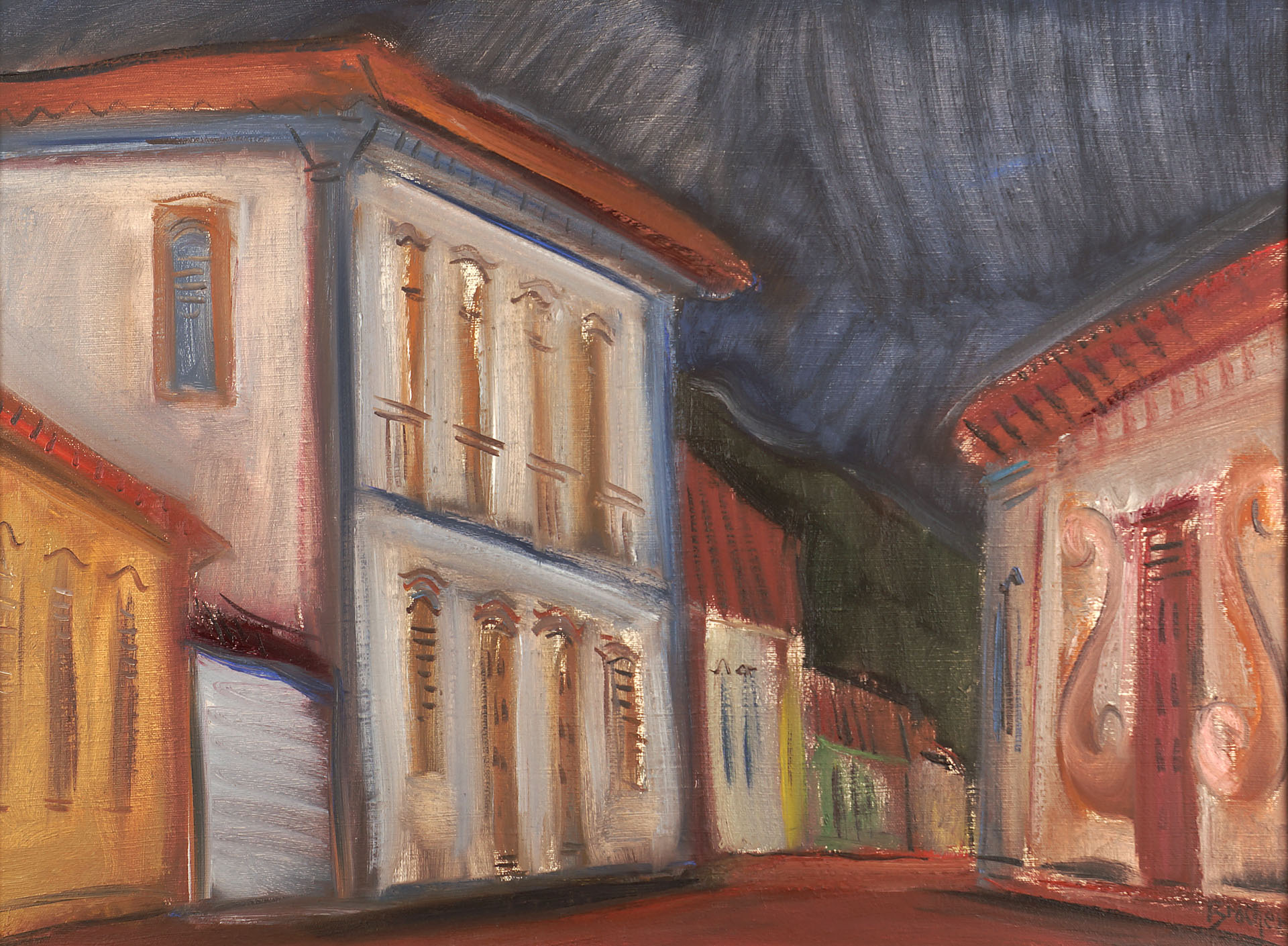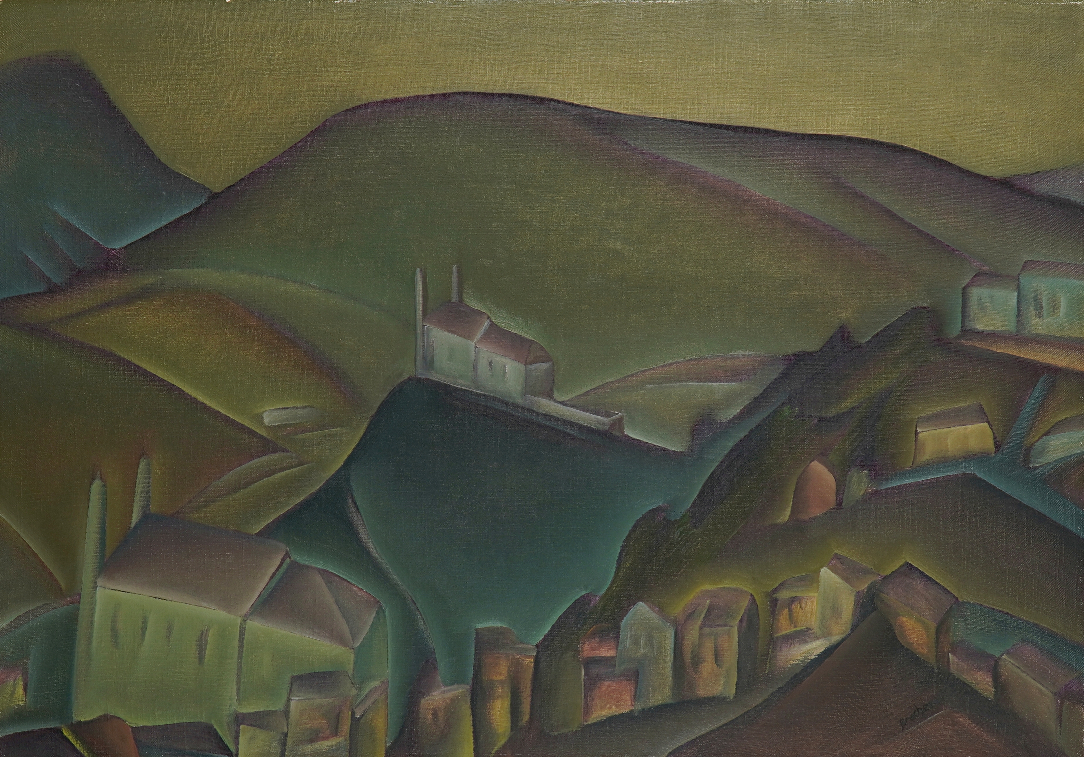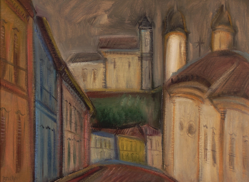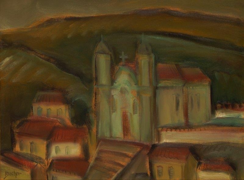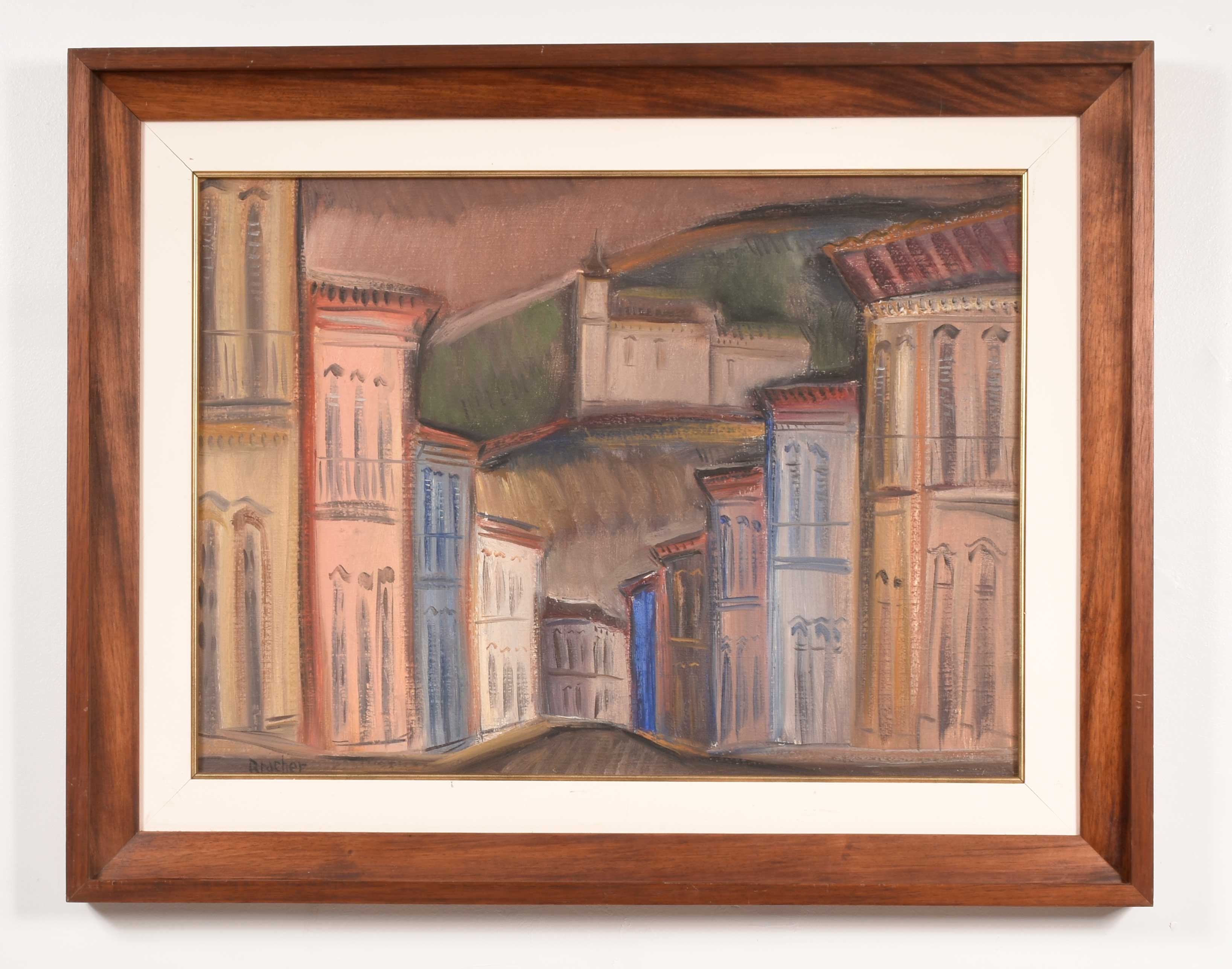 Carlos Bracher - Igreja do Senhor Bom Jesus do Matosinhos e Colégio Arquidiocesano - 54 x 73 cm - Óleo sobre tela - Assinatura verso e Data 1979