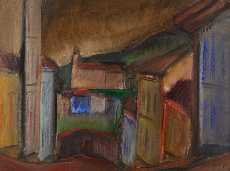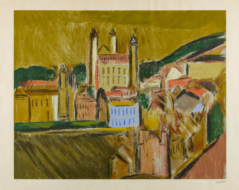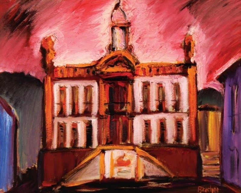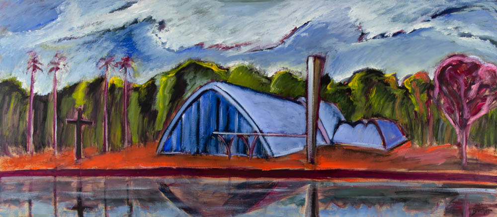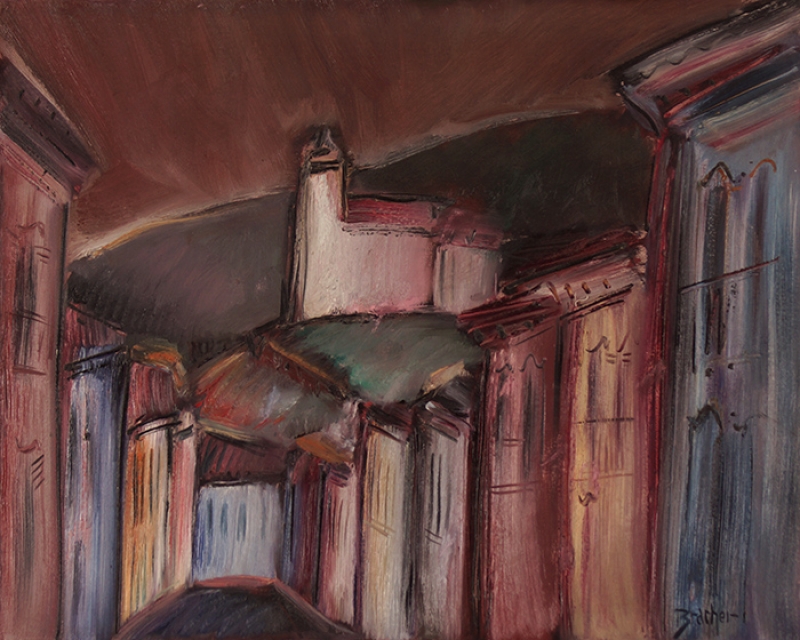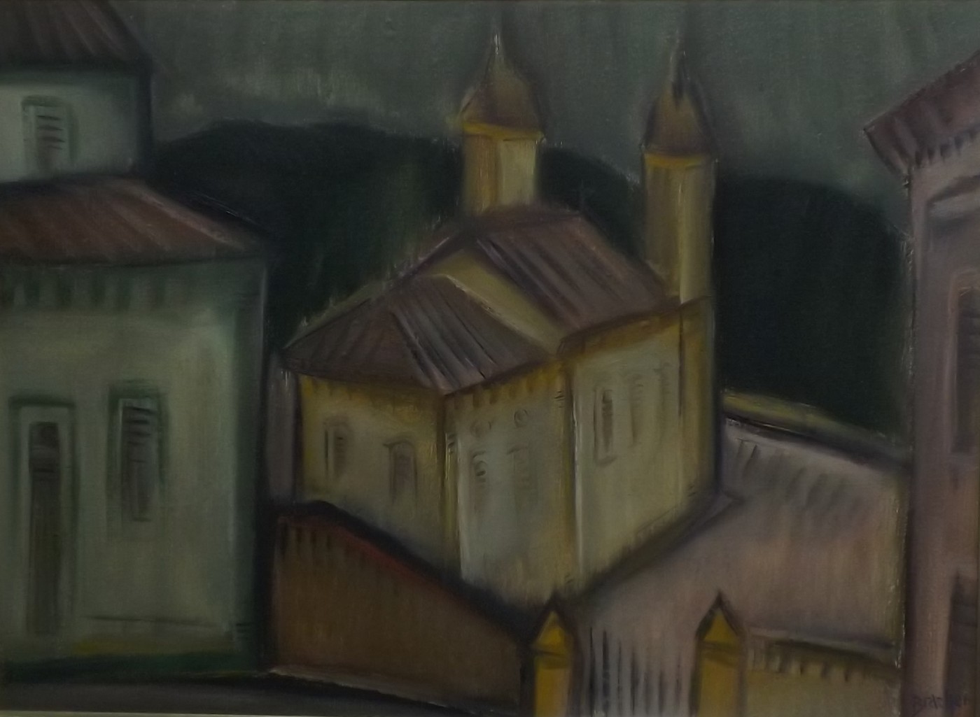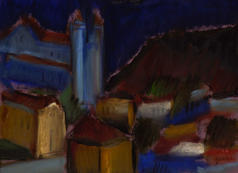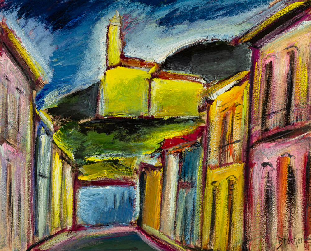 Carlos Bracher - Igreja do Senhor Bom Jesus do Matosinhos e Colégio Arquidiocesano - 54 x 73 cm - Óleo sobre tela - Assinatura verso e Data 1979