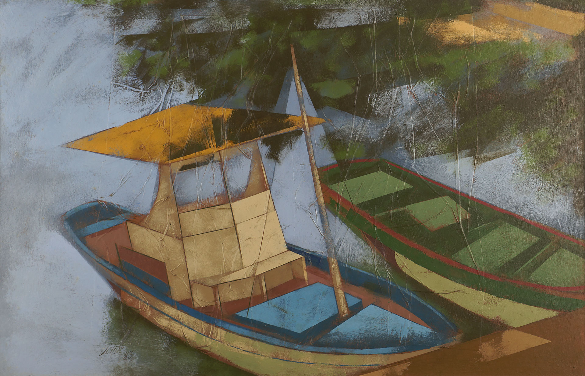 Carlos Scliar - Figuras diversas. Vinil e colagem encerados sobre tela, 37x56 cm, 1992, A.C.I. e V. Com moldura
