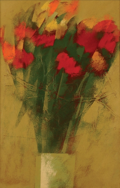 Carlos Scliar - Castiçal - 1972 - Vinil encerado e colagem sobre madeira - Assinado verso - 37 x 26 cm. Coleção Múcio Bandeira de Mello.