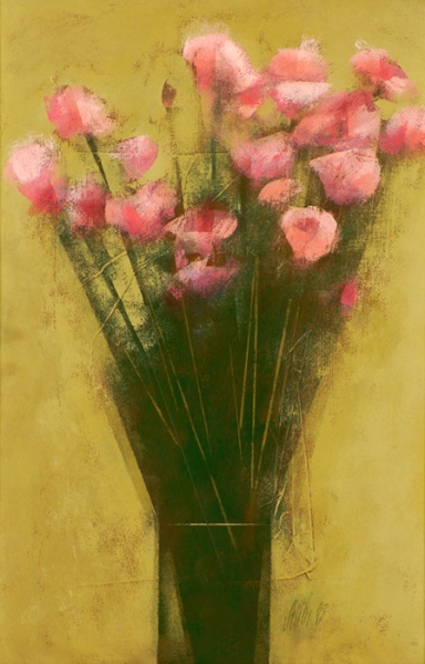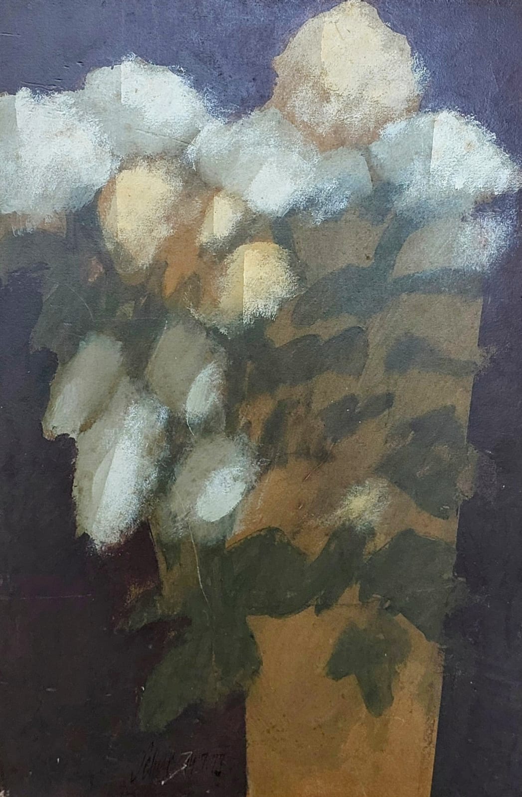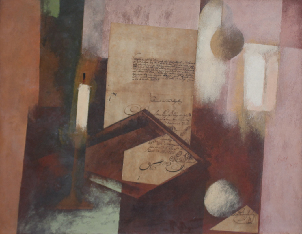 Carlos Scliar - Castiçal - 1972 - Vinil encerado e colagem sobre madeira - Assinado verso - 37 x 26 cm. Coleção Múcio Bandeira de Mello.