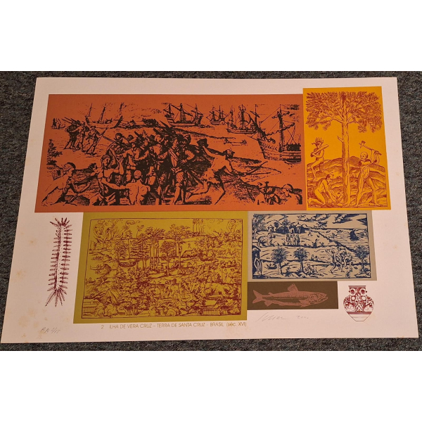 Carlos Scliar - Figuras diversas. Vinil e colagem encerados sobre tela, 37x56 cm, 1992, A.C.I. e V. Com moldura