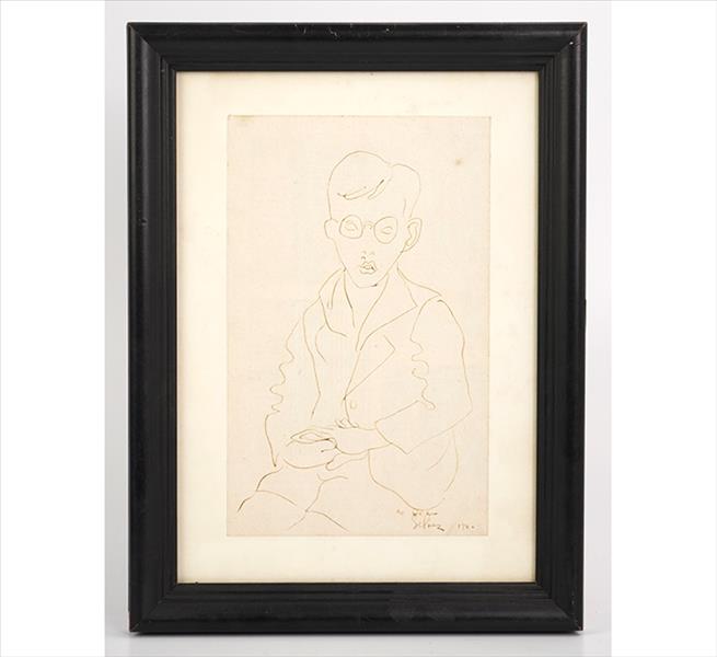 CARLOS SCLIAR, Retrato de Rudá de Andrade, Desenho à caneta esferográfica, 22 x 14cm (m.i). Datado 1940