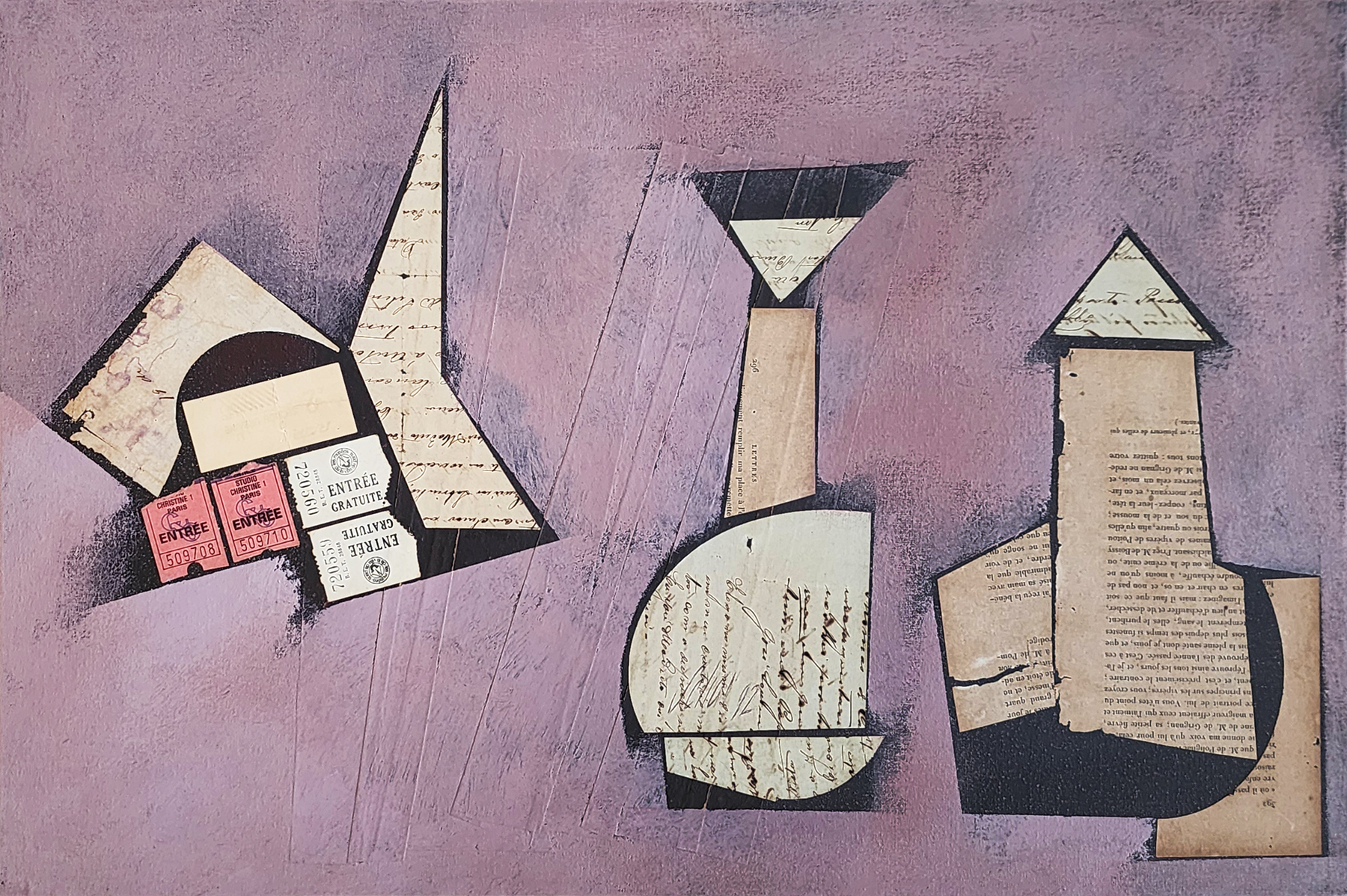 Carlos Scliar - Figuras diversas. Vinil e colagem encerados sobre tela, 37x56 cm, 1992, A.C.I. e V. Com moldura