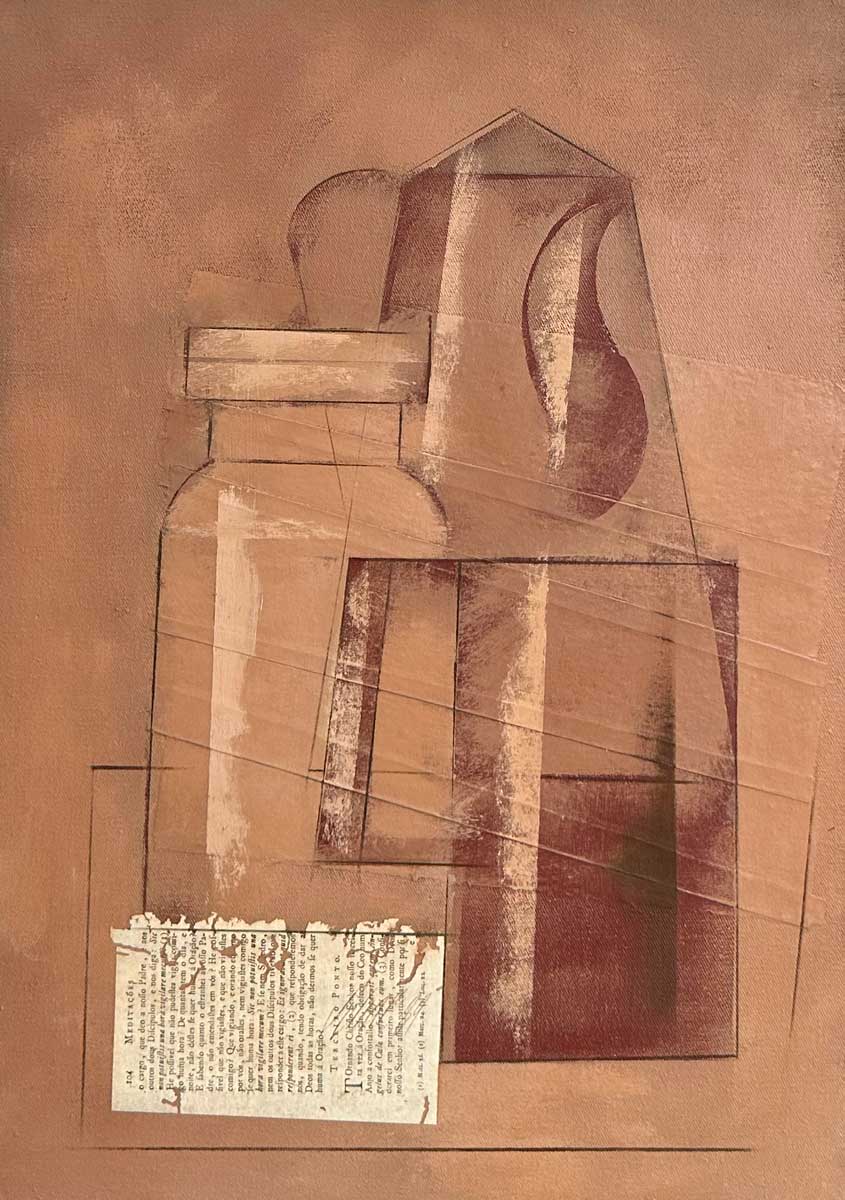 CARLOS SCLIAR - Objeto e Colagem - 1989 - vinil e colagem sobre tela, colado em eucatex - 56 x 37 cm.