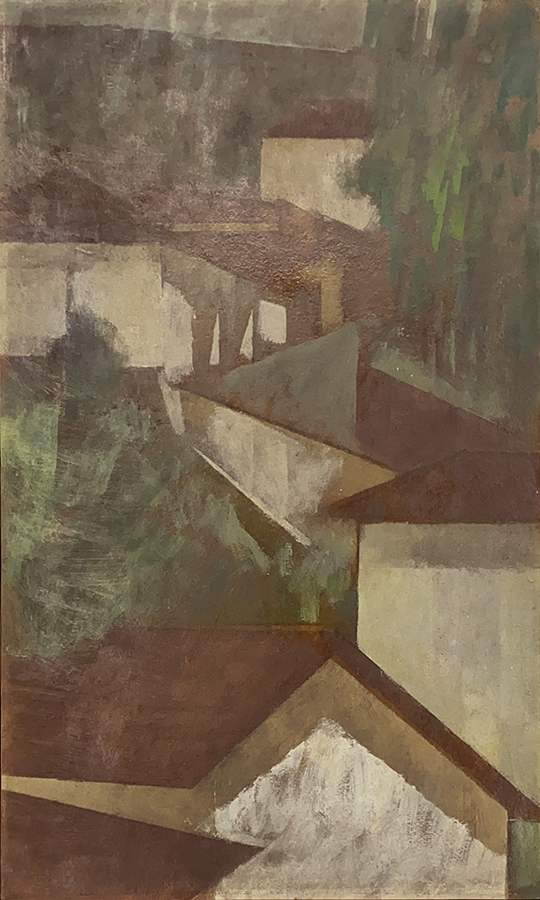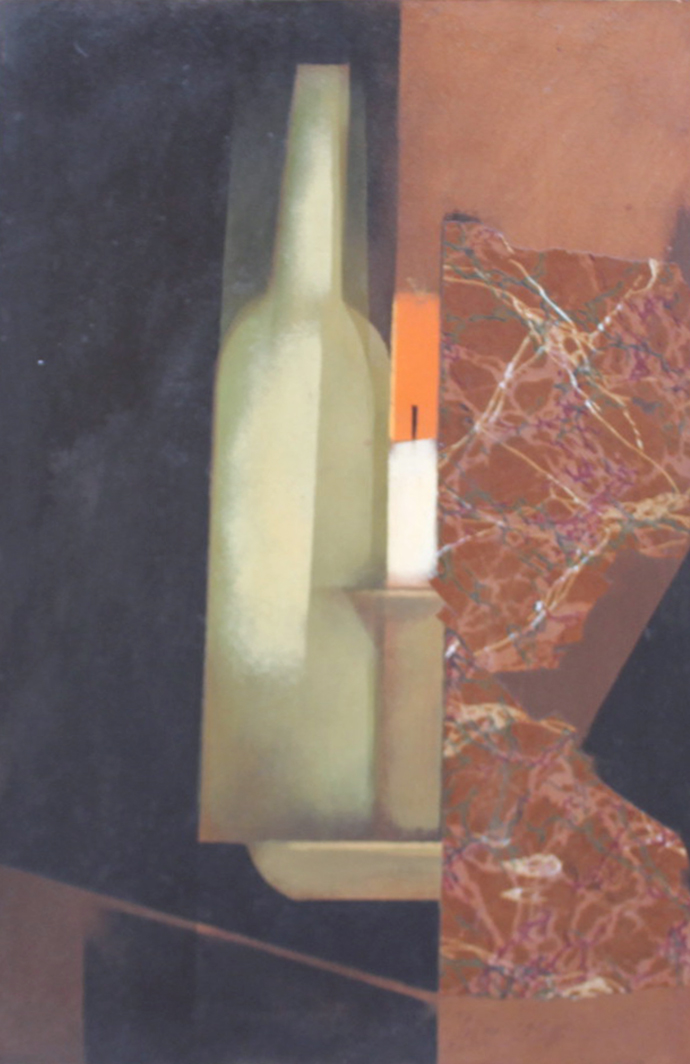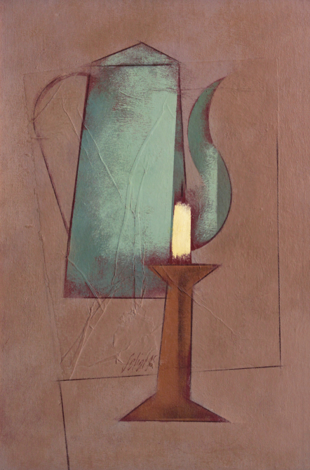 Carlos Scliar - Castiçal - 1972 - Vinil encerado e colagem sobre madeira - Assinado verso - 37 x 26 cm. Coleção Múcio Bandeira de Mello.
