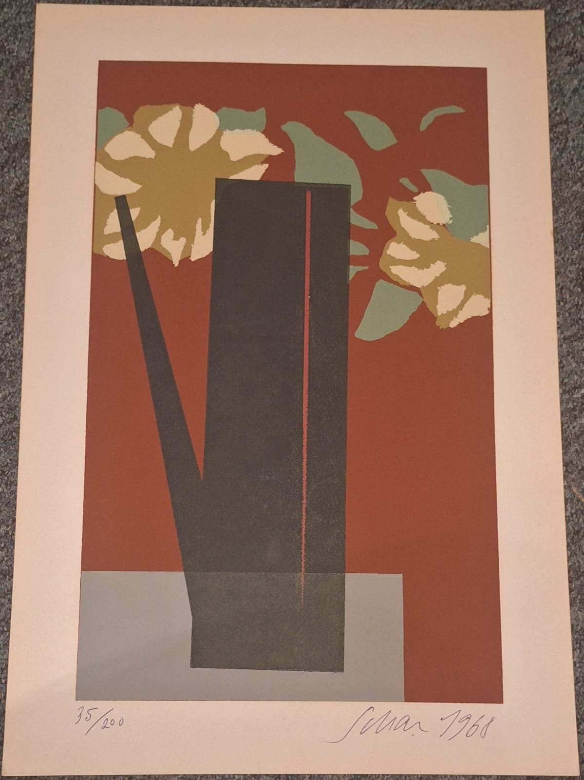 Carlos Scliar - Castiçal - 37 x 13 cm - Vinil encerado sobre tela colado em madeira - Assinatura canto inferior direito e Data 1977
