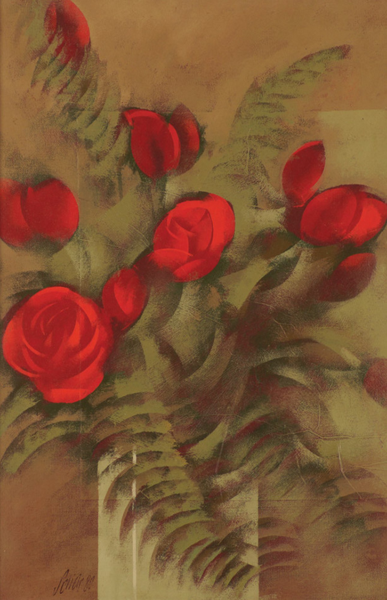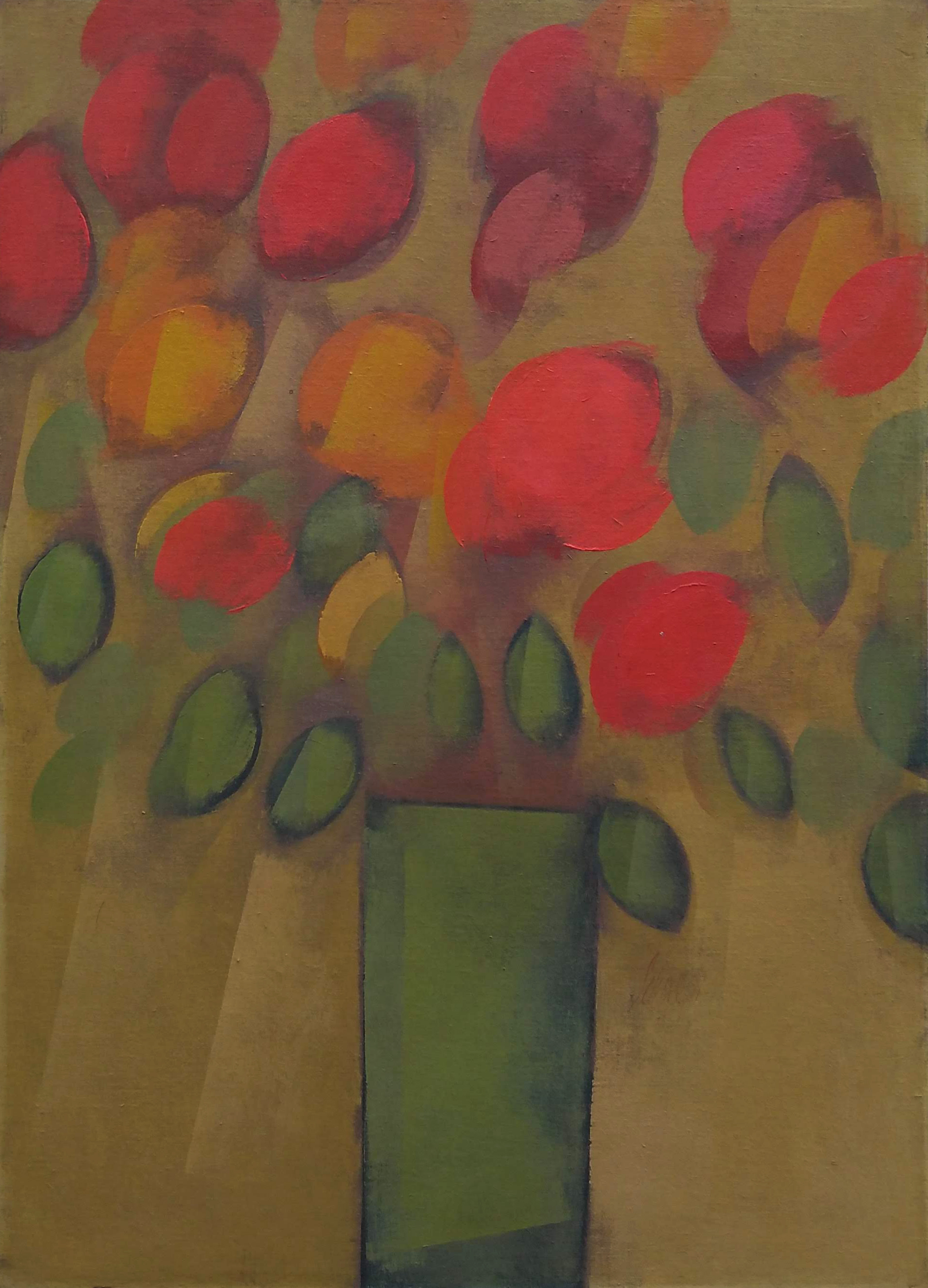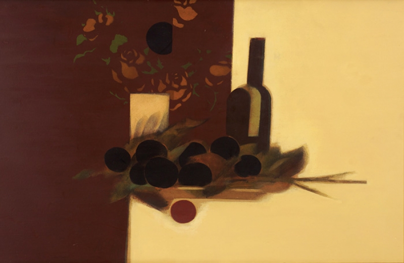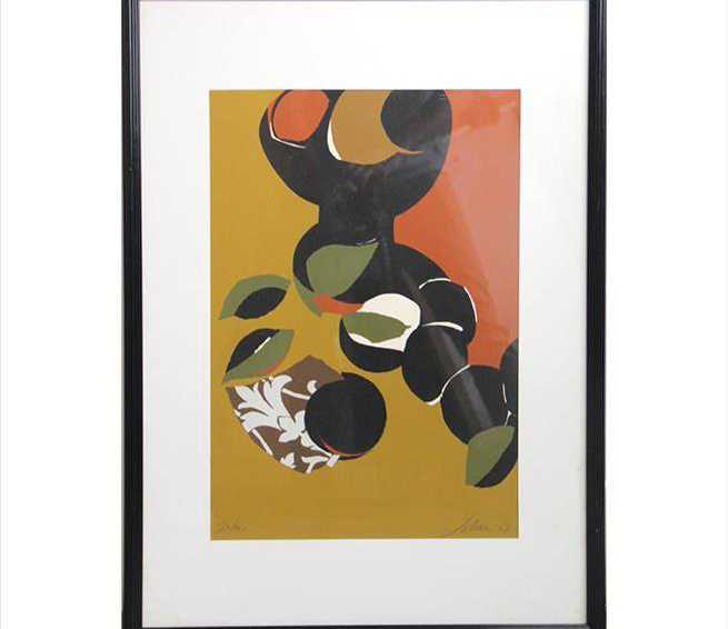 Carlos Scliar - Tomates japoneses no prato - 37 x 56 cm - Vinil e colagem sobre tela colada em eucatex - Assinatura canto inferior direito e Data 1982