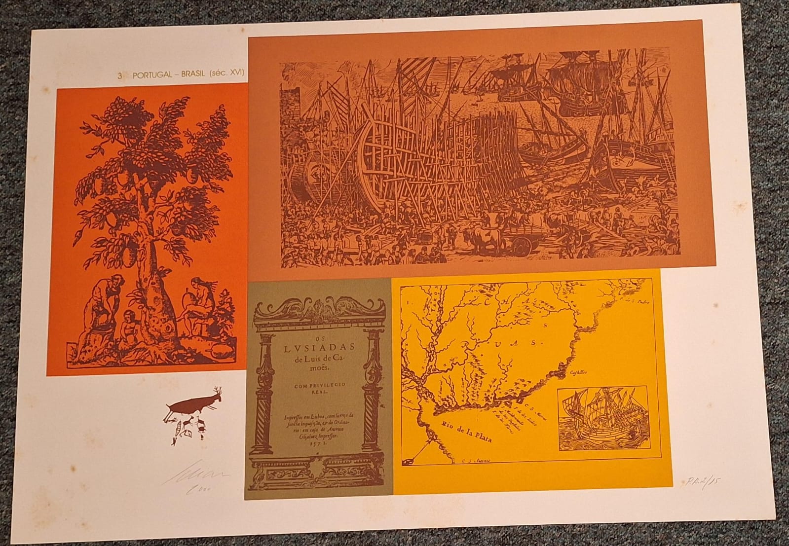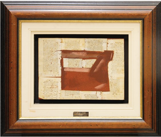 Carlos Scliar - Figuras diversas. Vinil e colagem encerados sobre tela, 37x56 cm, 1992, A.C.I. e V. Com moldura