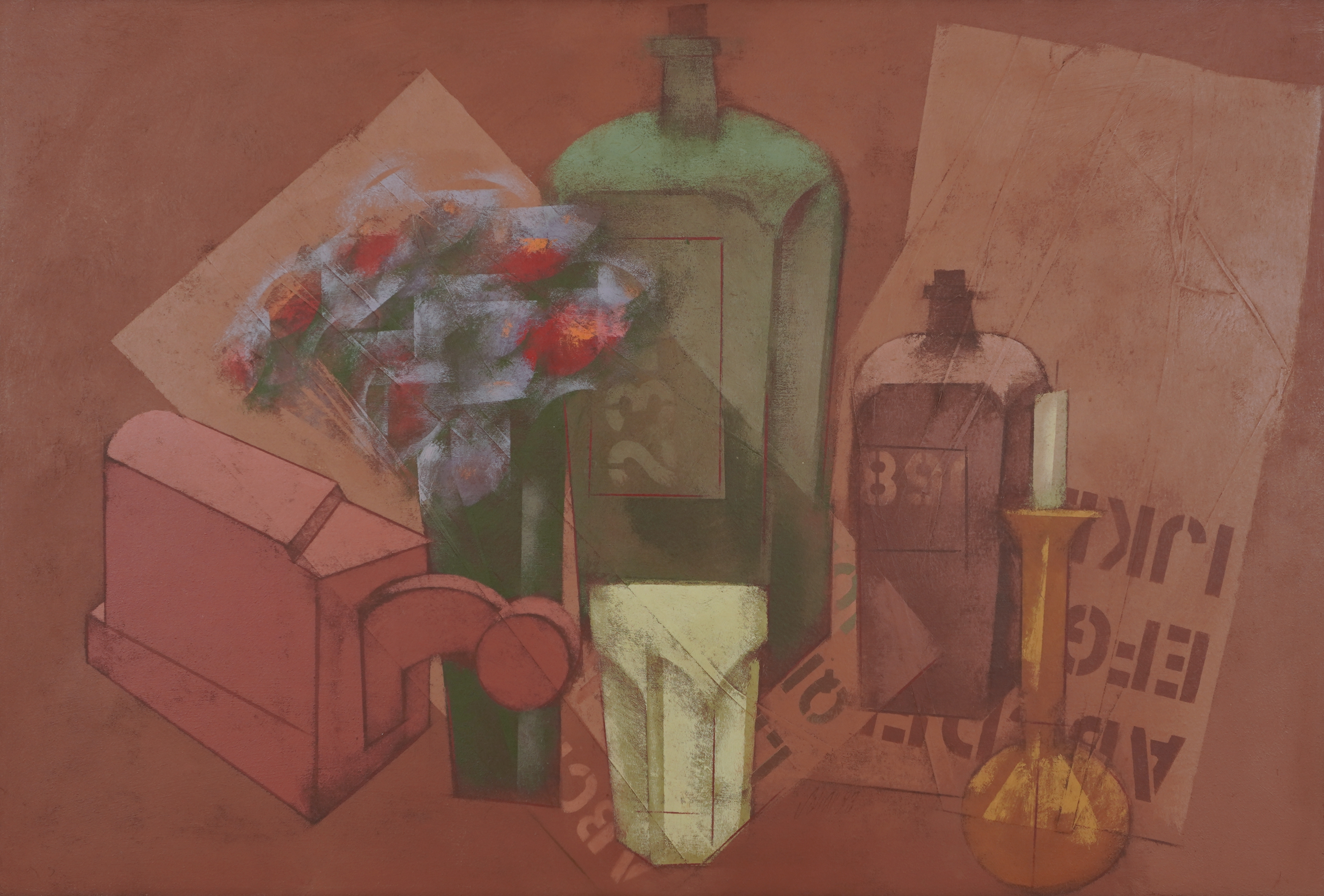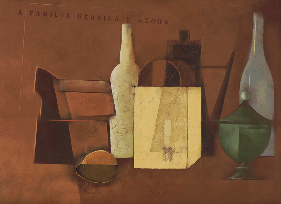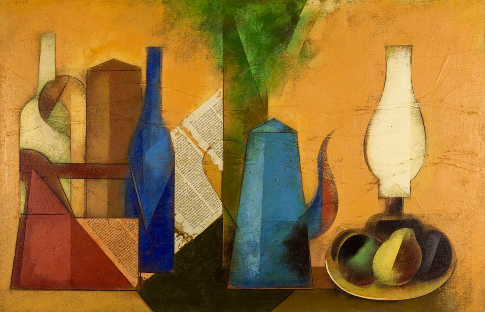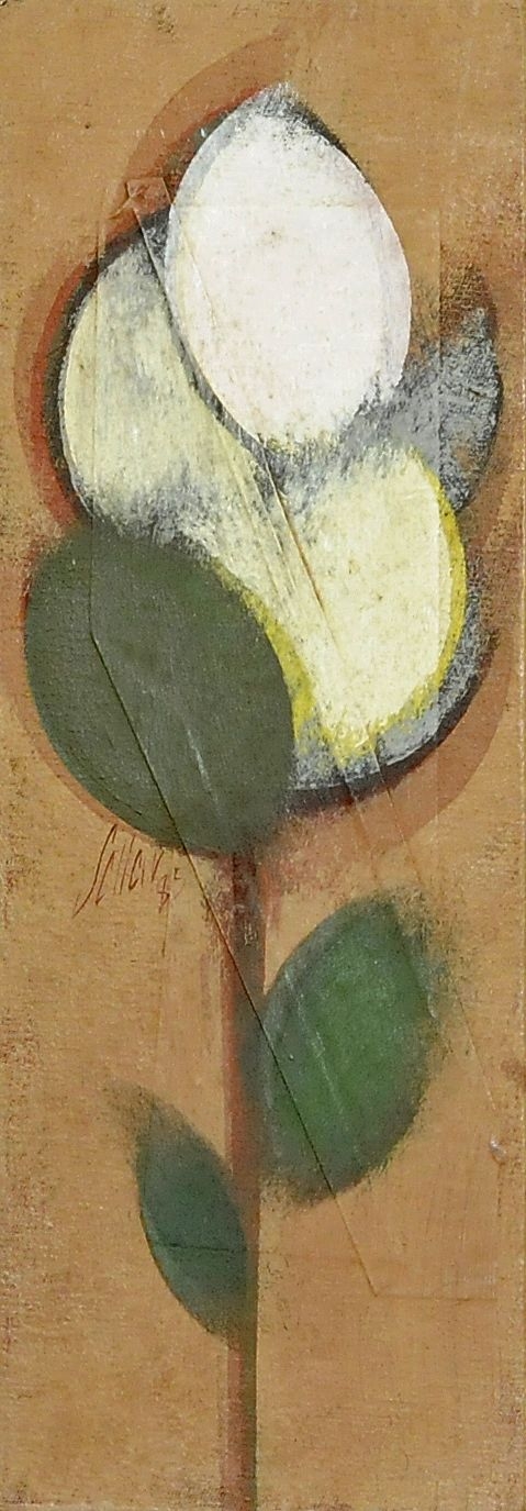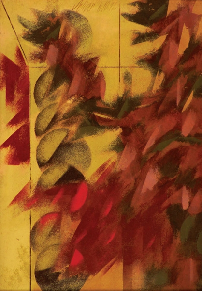 Carlos Scliar - Castiçal - 1972 - Vinil encerado e colagem sobre madeira - Assinado verso - 37 x 26 cm. Coleção Múcio Bandeira de Mello.