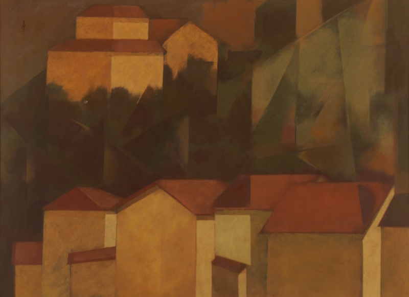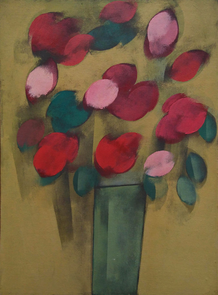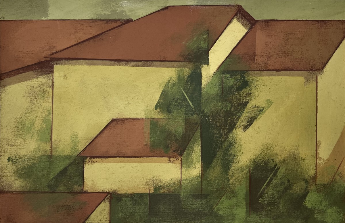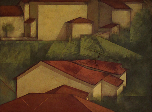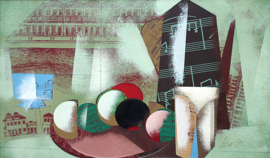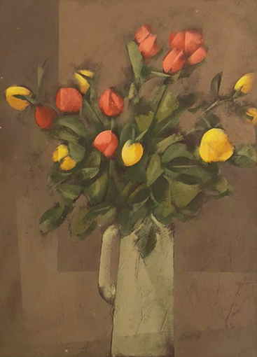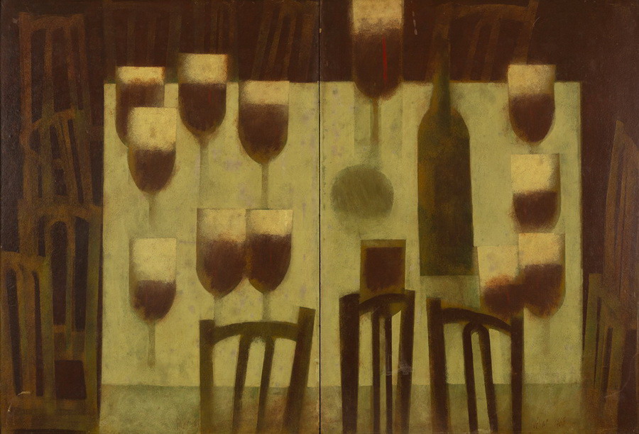 Carlos Scliar - Castiçal - 1972 - Vinil encerado e colagem sobre madeira - Assinado verso - 37 x 26 cm. Coleção Múcio Bandeira de Mello.