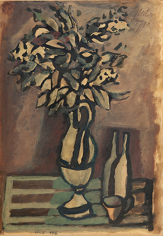 Carlos Scliar - Castiçal - 1972 - Vinil encerado e colagem sobre madeira - Assinado verso - 37 x 26 cm. Coleção Múcio Bandeira de Mello.