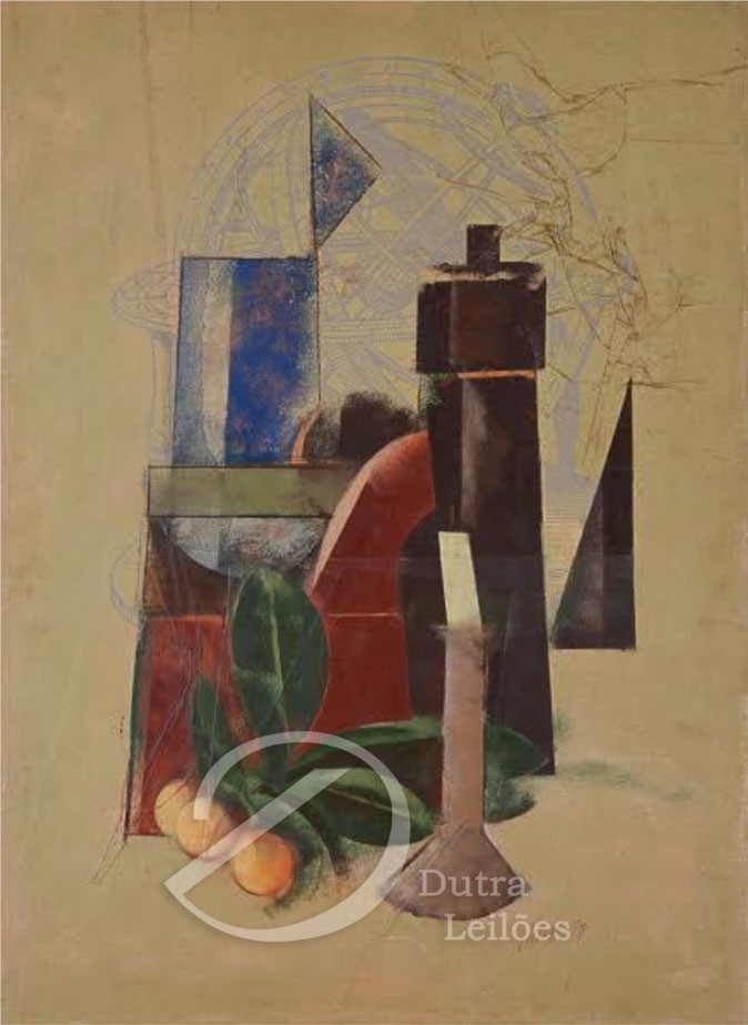 Carlos Scliar - Castiçal - 1972 - Vinil encerado e colagem sobre madeira - Assinado verso - 37 x 26 cm. Coleção Múcio Bandeira de Mello.