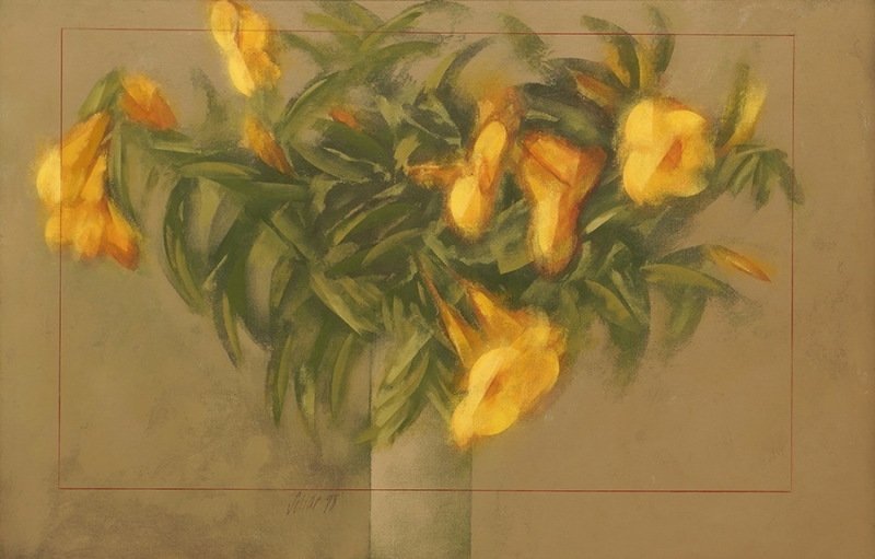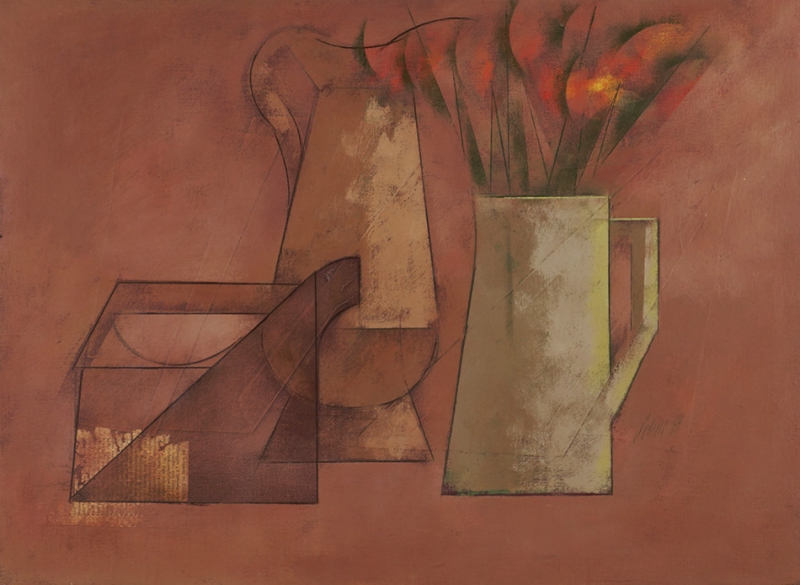 Carlos Scliar - Castiçal - 37 x 13 cm - Vinil encerado sobre tela colado em madeira - Assinatura canto inferior direito e Data 1978