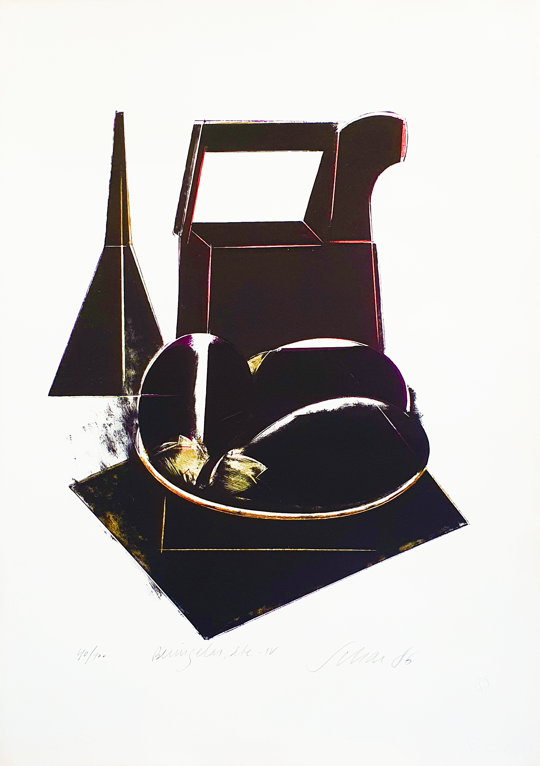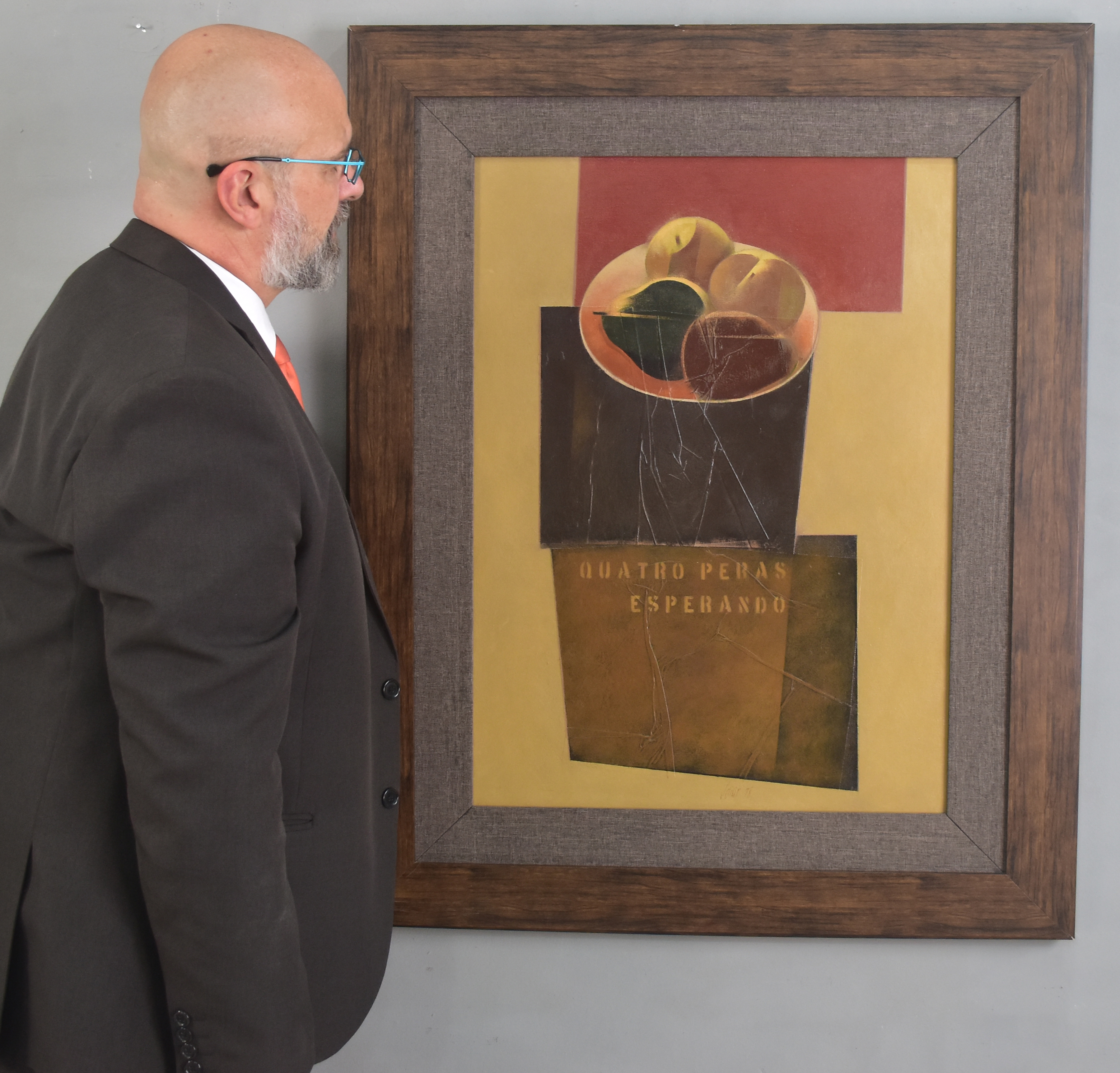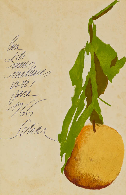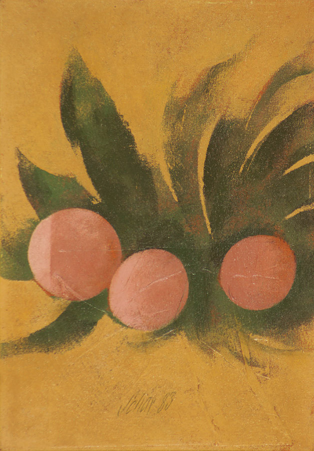 Carlos Scliar - Tomates japoneses no prato - 37 x 56 cm - Vinil e colagem sobre tela colada em eucatex - Assinatura canto inferior direito e Data 1982