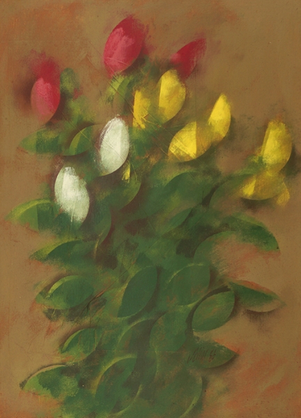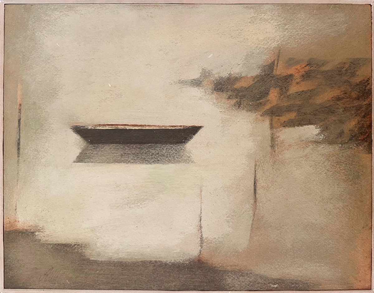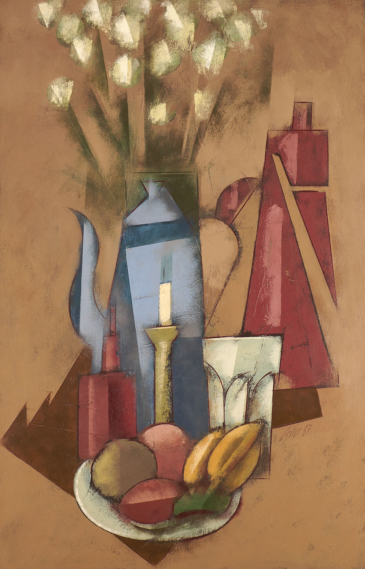 Carlos Scliar - Castiçal - 1972 - Vinil encerado e colagem sobre madeira - Assinado verso - 37 x 26 cm. Coleção Múcio Bandeira de Mello.
